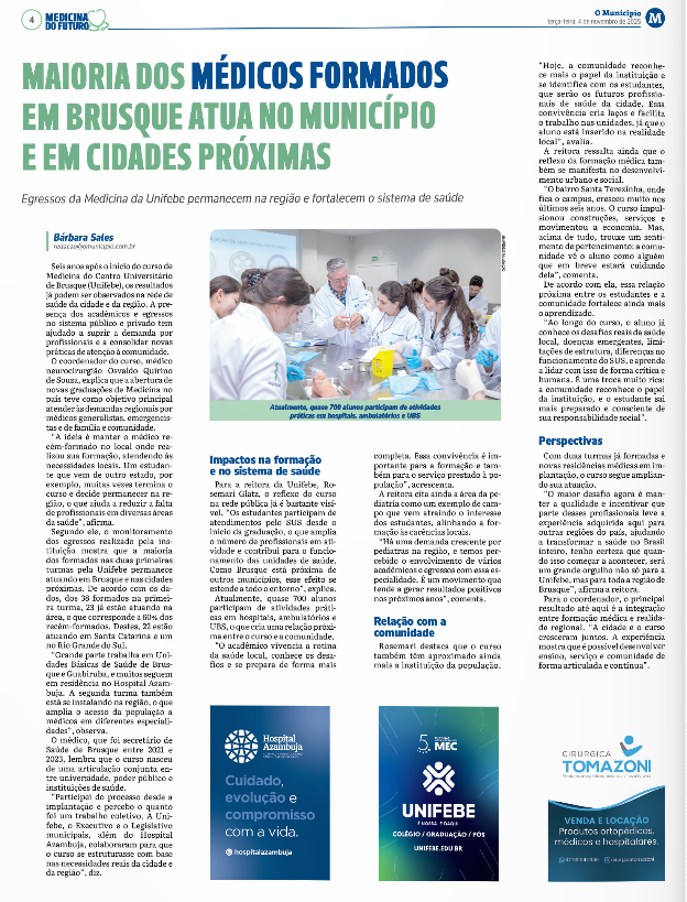 04 de Novembro 2025 – O Município Online – Egressos da Medicina da Unifebe permanecem na região e fortalecem o sistema de saúde