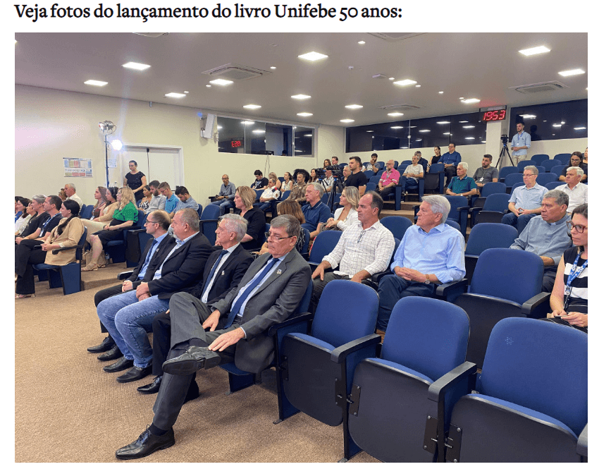 15 de dezembro de 2023 – Jornal O Município – “É nossa, é daqui”: livro que comemora os 50 anos da Unifebe é lançado em Brusque.