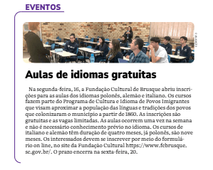 16 de Fevereiro de 2026 – O Município Online – Aulas de idiomas gratuitas