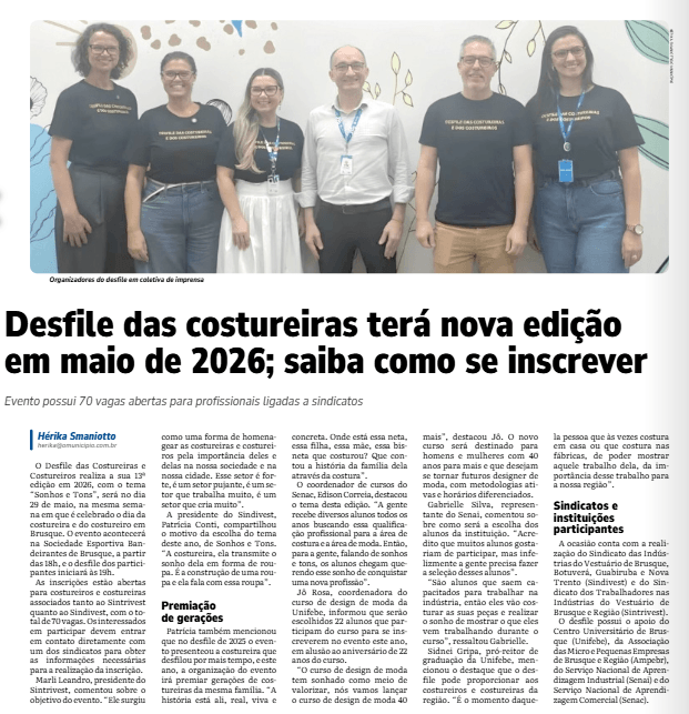 24 de Março de 2026 – O Município Online – Desfile das costureiras terá nova edição em maio de 2026; saiba como se inscrever