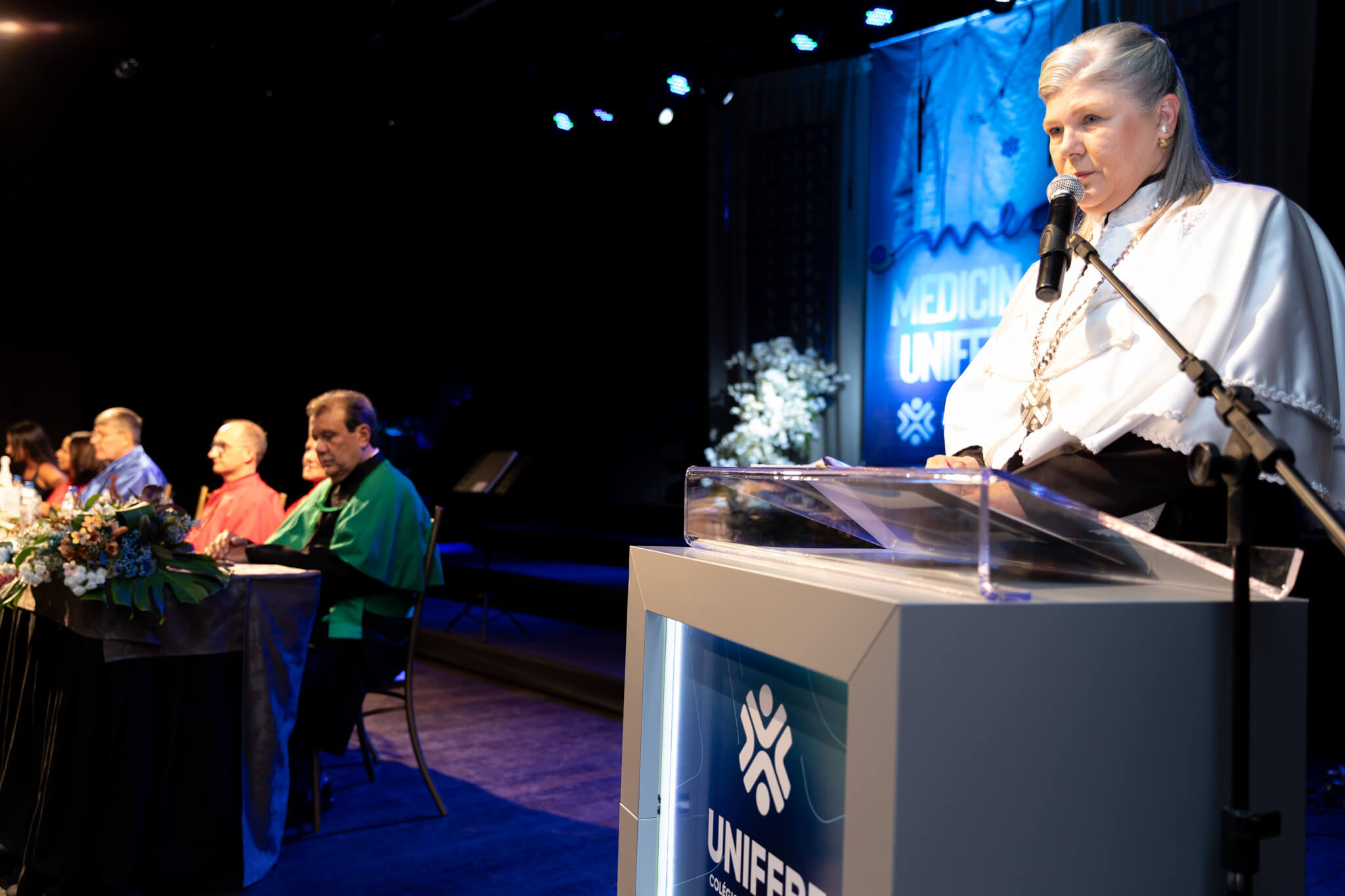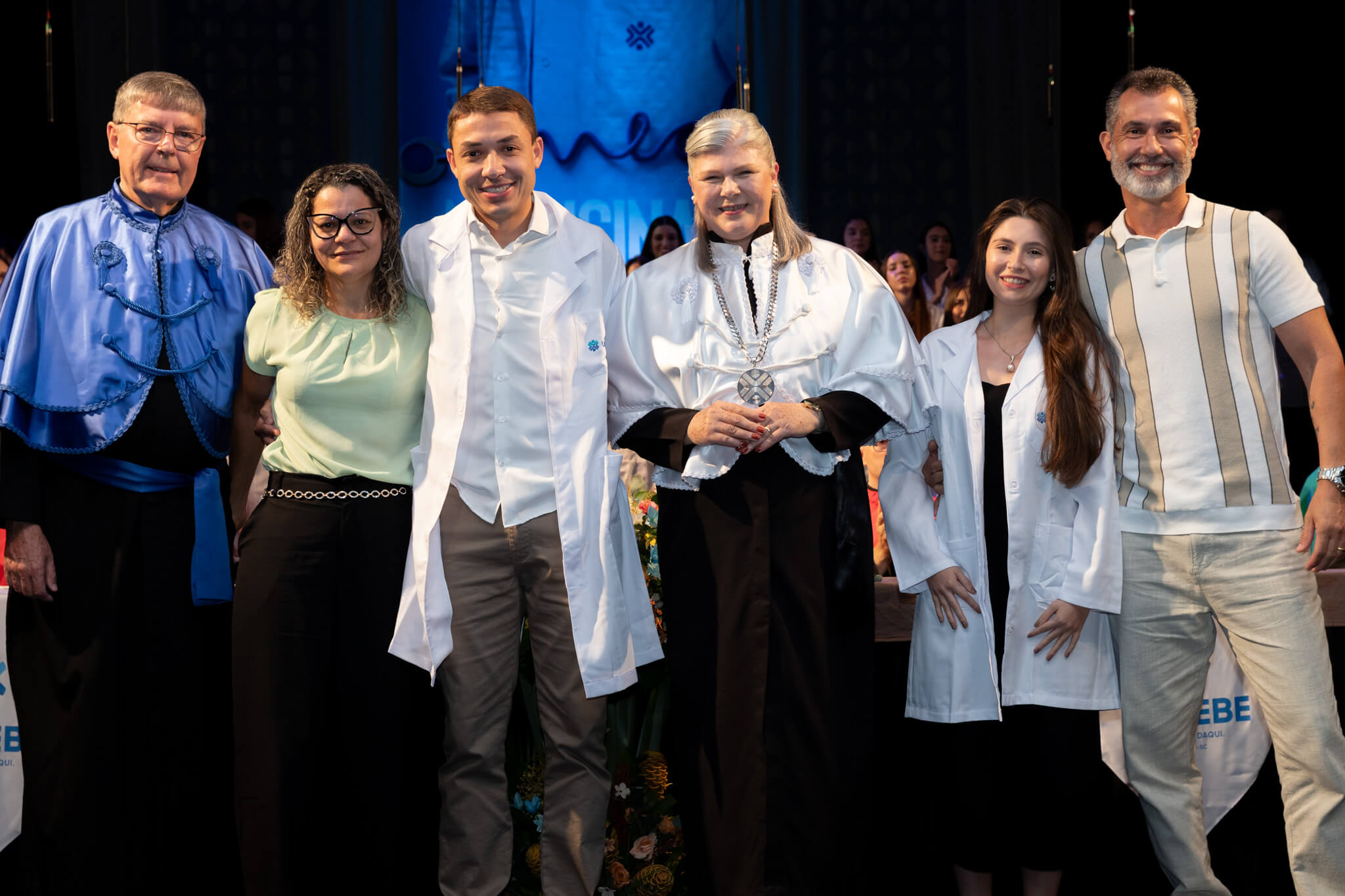 A tradicional Cerimônia de Jaleco e a Aula Magna do curso de Medicina da UNIFEBE foram marcados pela emoção e marcaram o início da jornada acadêmica da nova turma do curso. A Aula Magna foi ministrada pelo coordenador e médico neurologista, doutor Osvaldo Quirino de Souza. Confira os registros da noite :