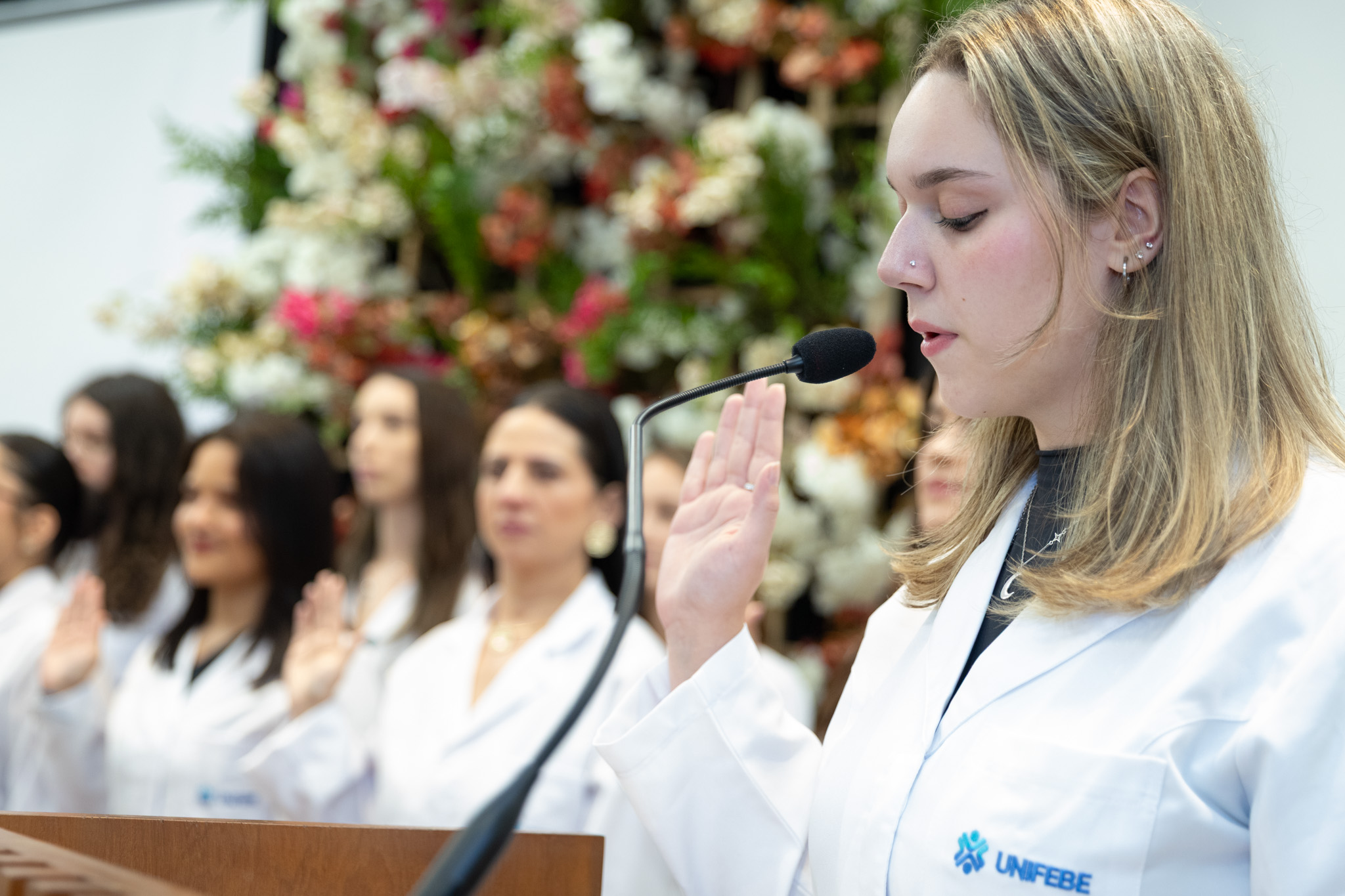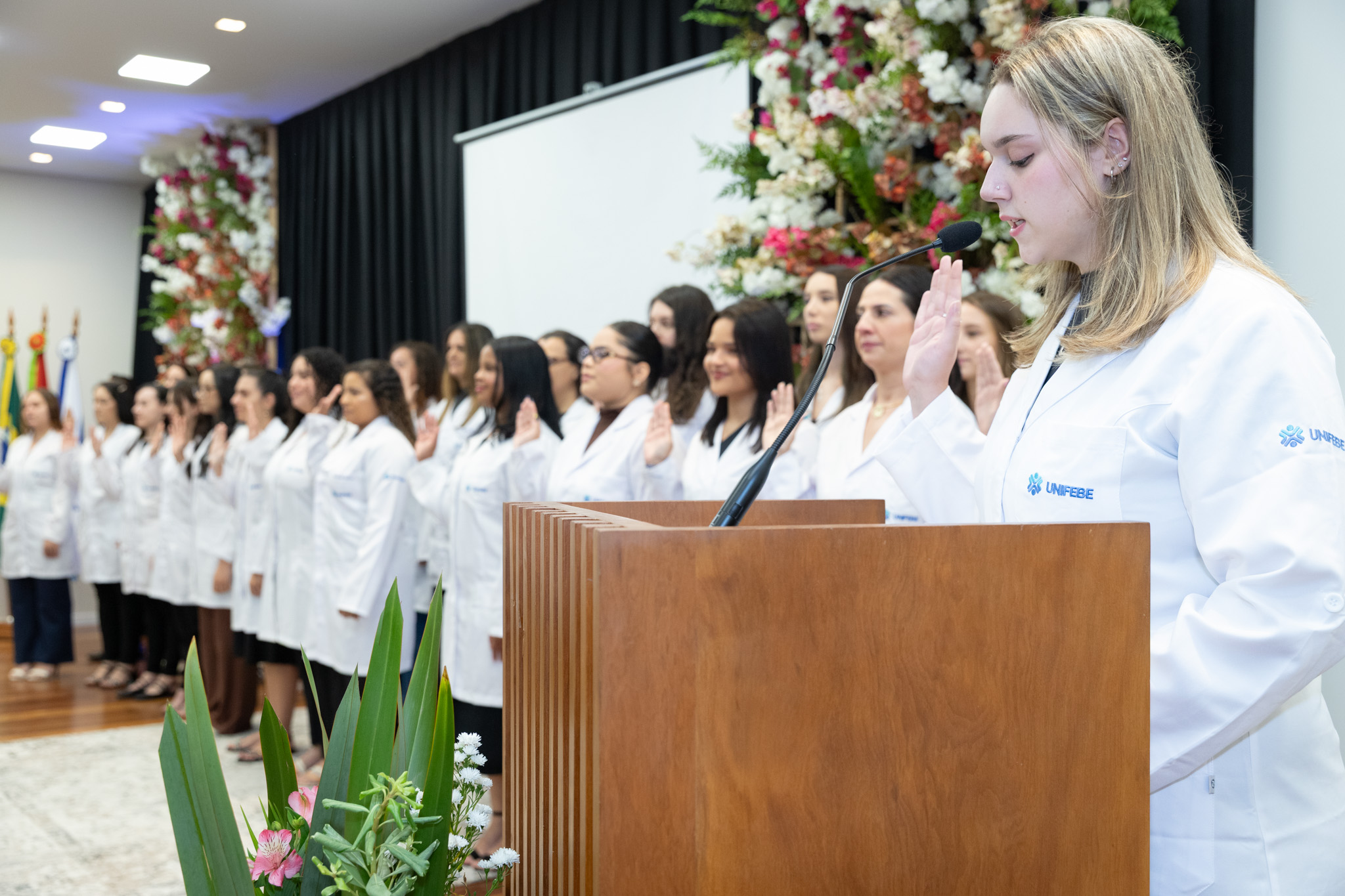 Calouros do curso de Enfermagem da UNIFEBE participaram da Cerimônia do Jaleco e da Aula Magna preparada para o 1.º Semestre de 2026. A programação marca o início da jornada acadêmica dos estudantes e contou com a presença de autoridades e familiares.