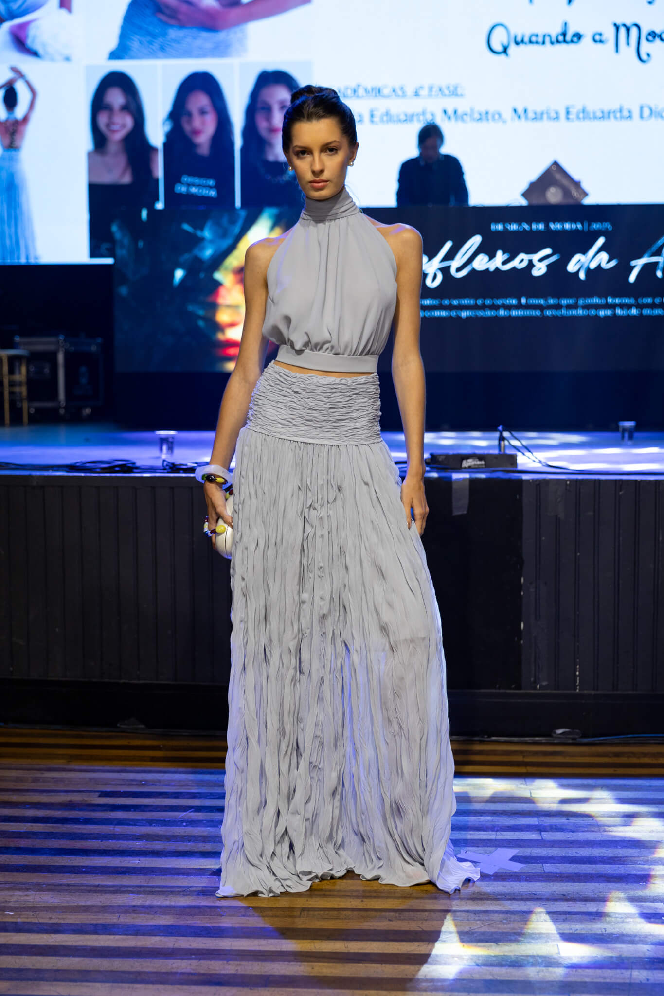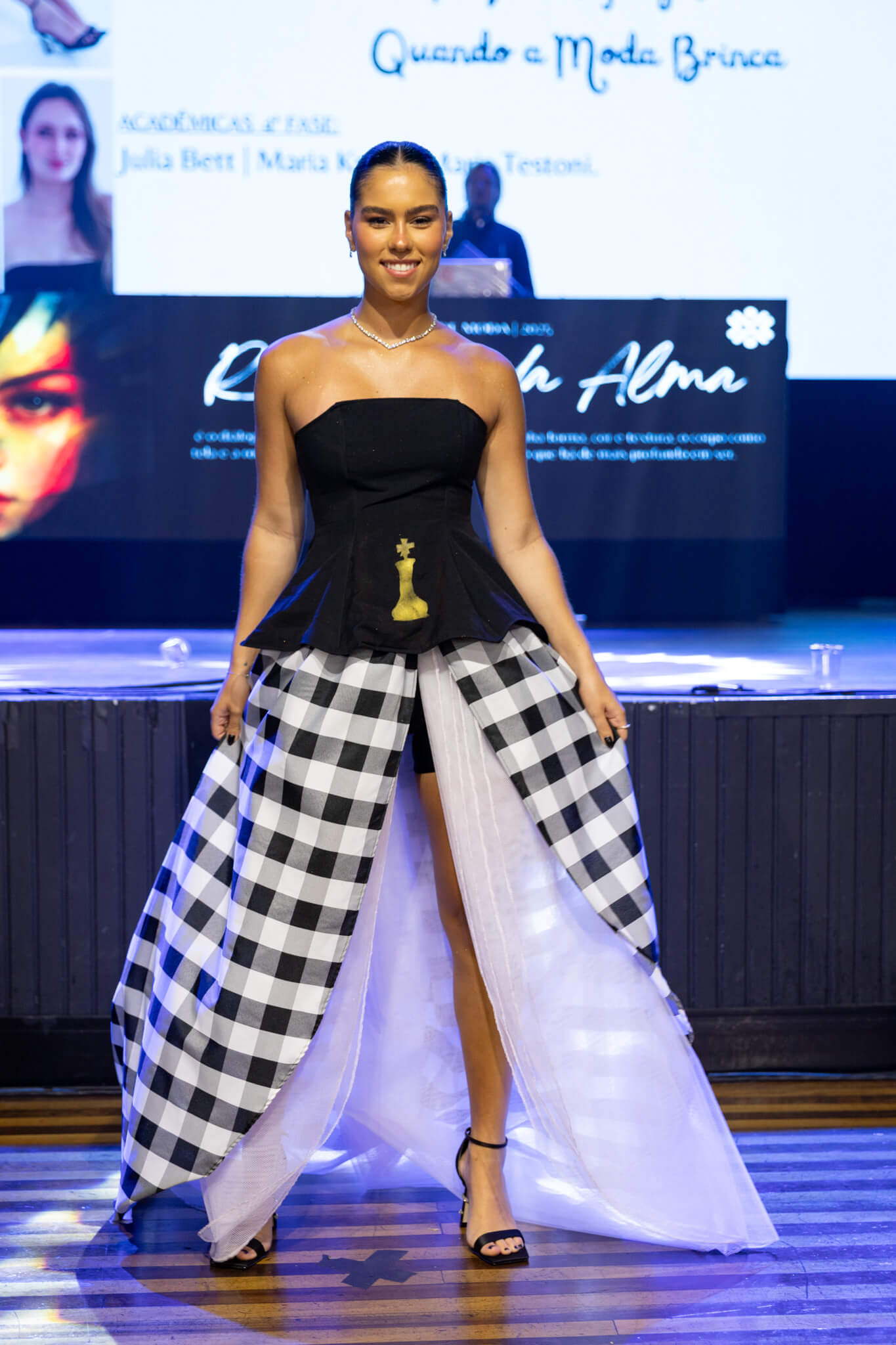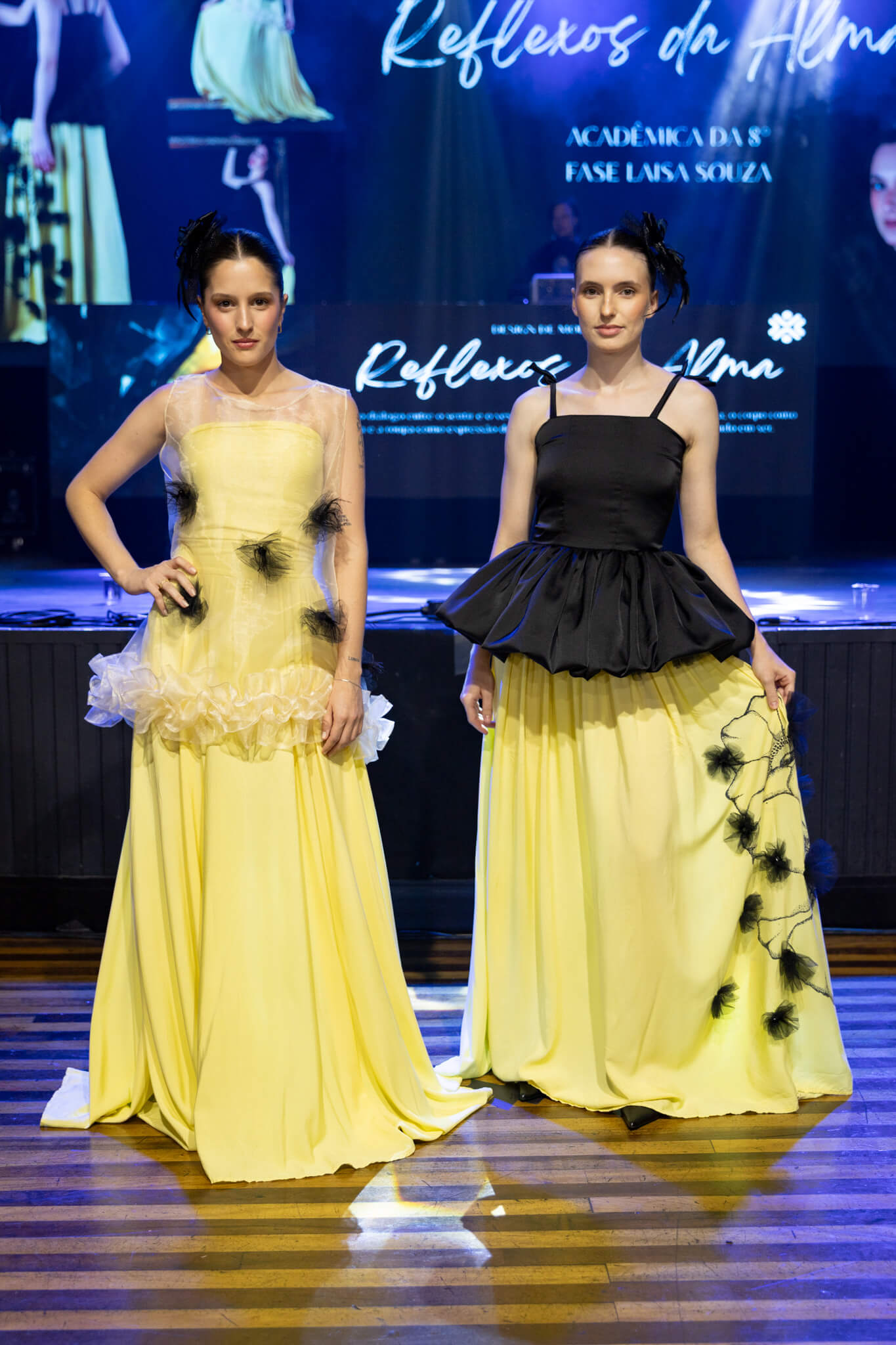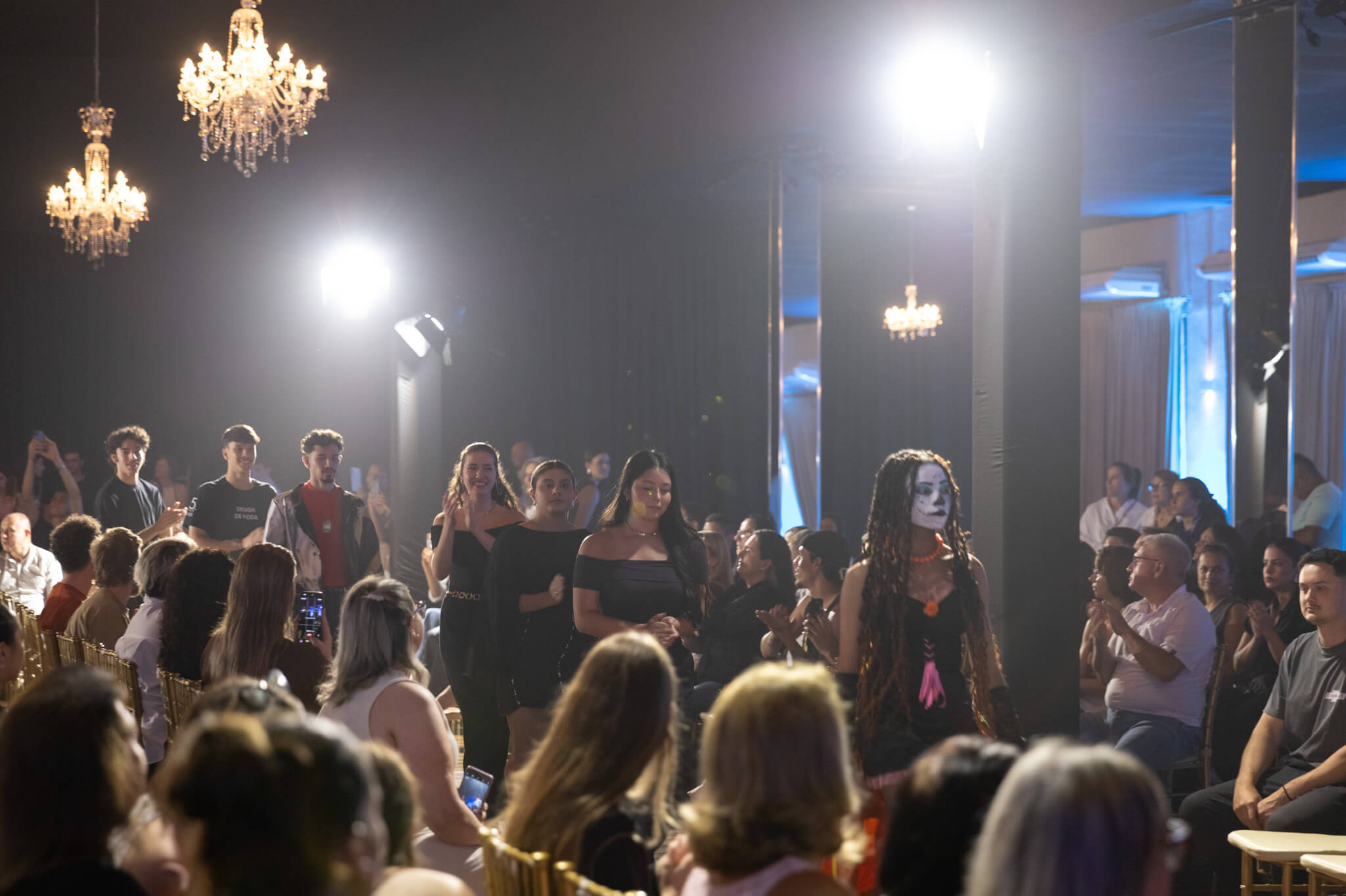 As coleções autorais criadas e confeccionadas pelos acadêmicos de Design de Moda da UNIFEBE ganharam a passarela na noite desta terça-feira (9) na Sociedade Santos Dumont