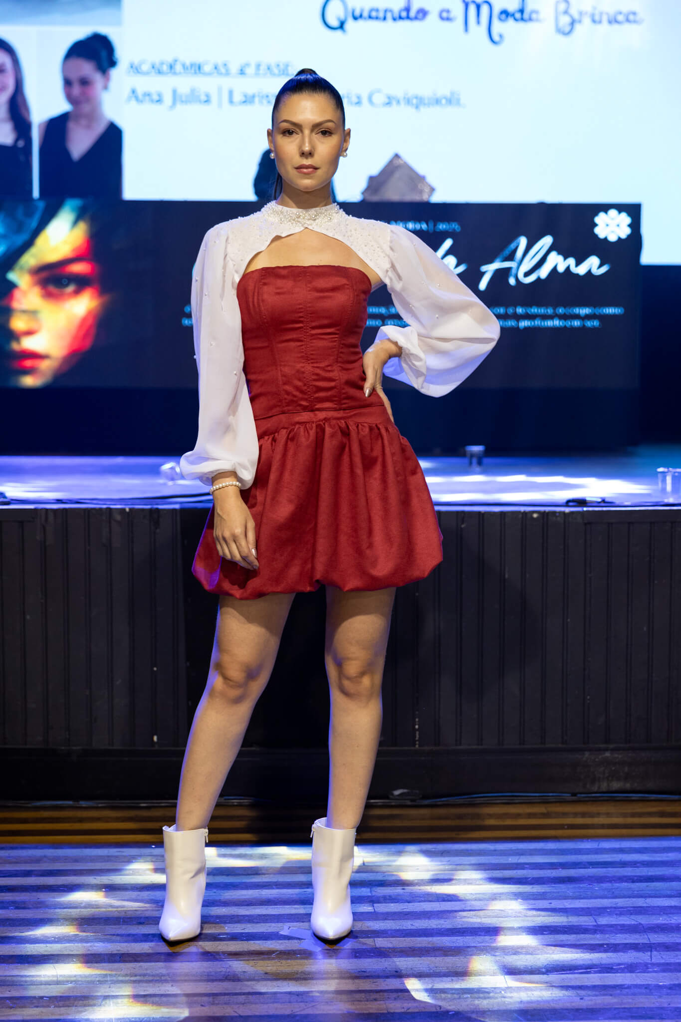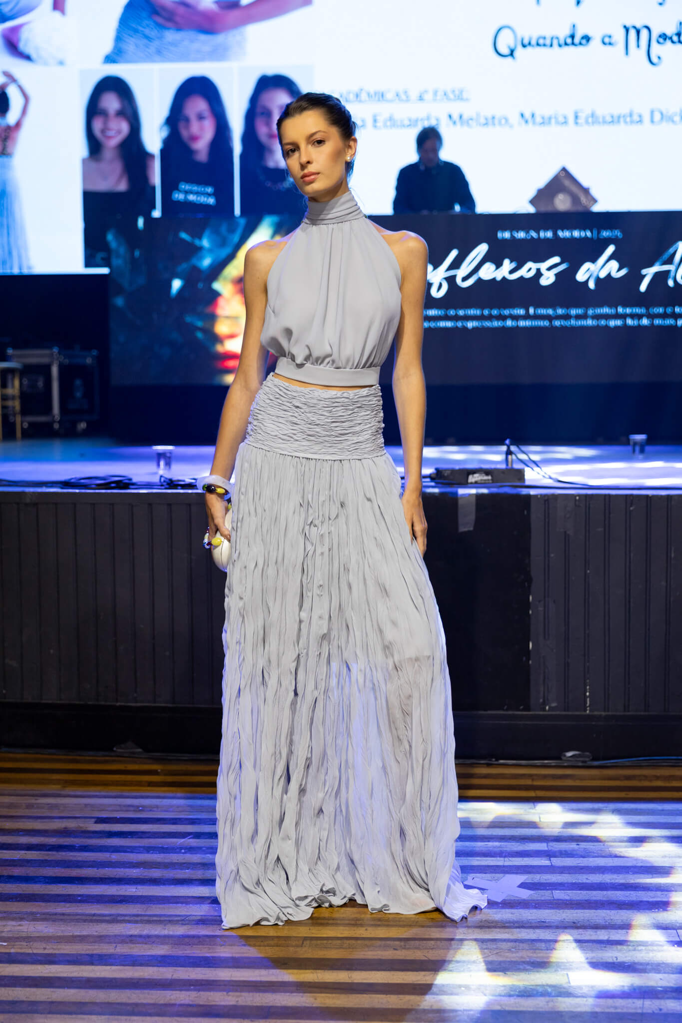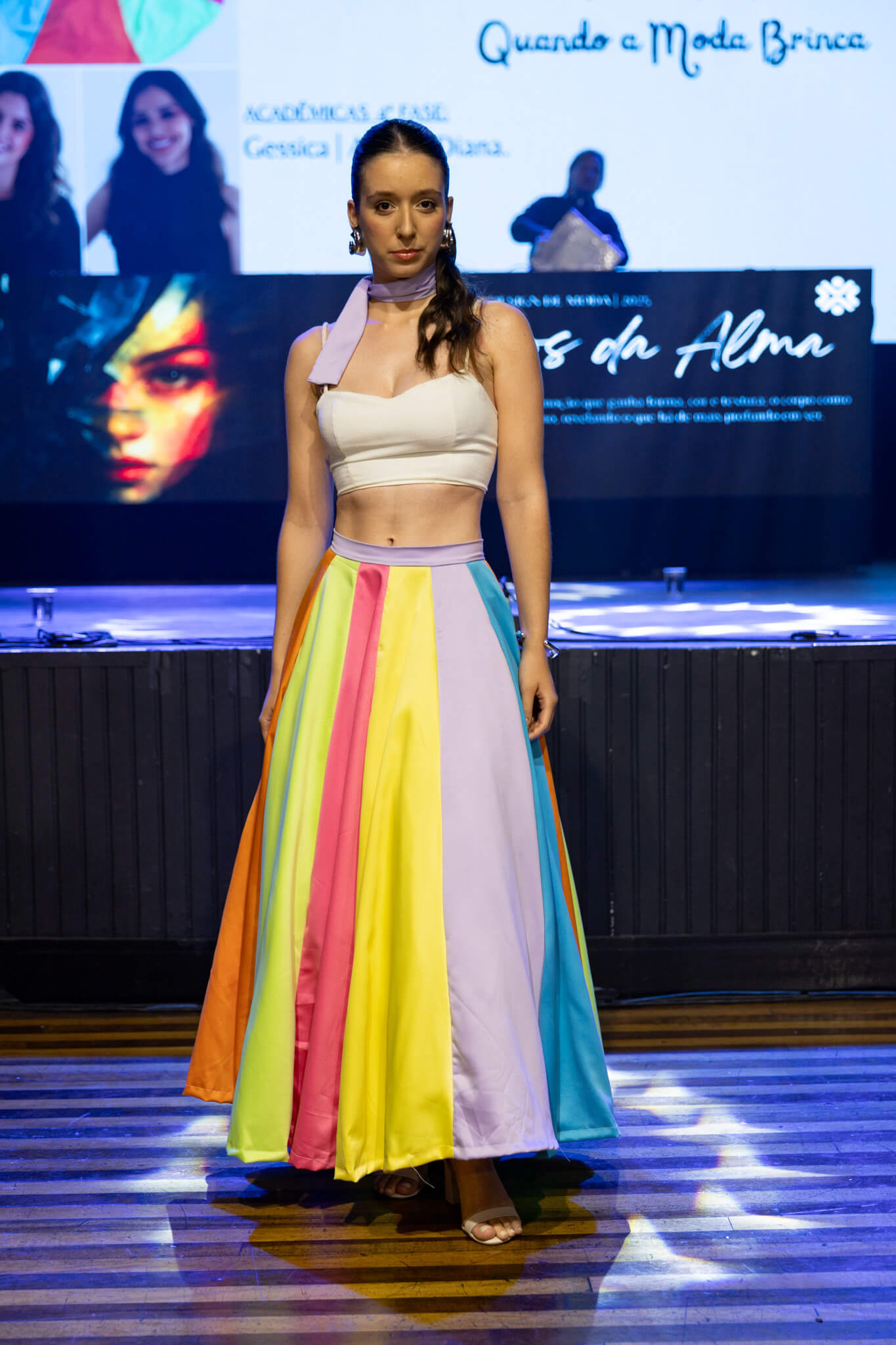 As coleções autorais criadas e confeccionadas pelos acadêmicos de Design de Moda da UNIFEBE ganharam a passarela na noite desta terça-feira (9) na Sociedade Santos Dumont