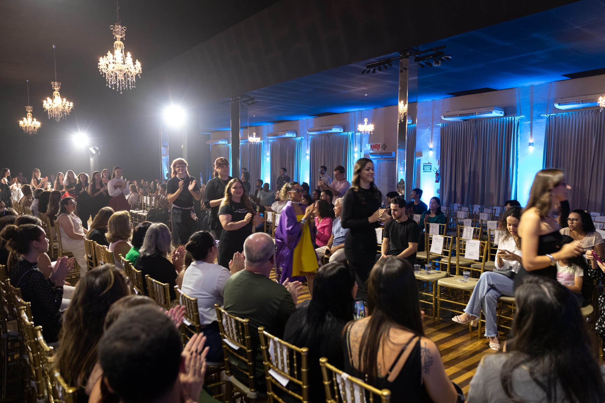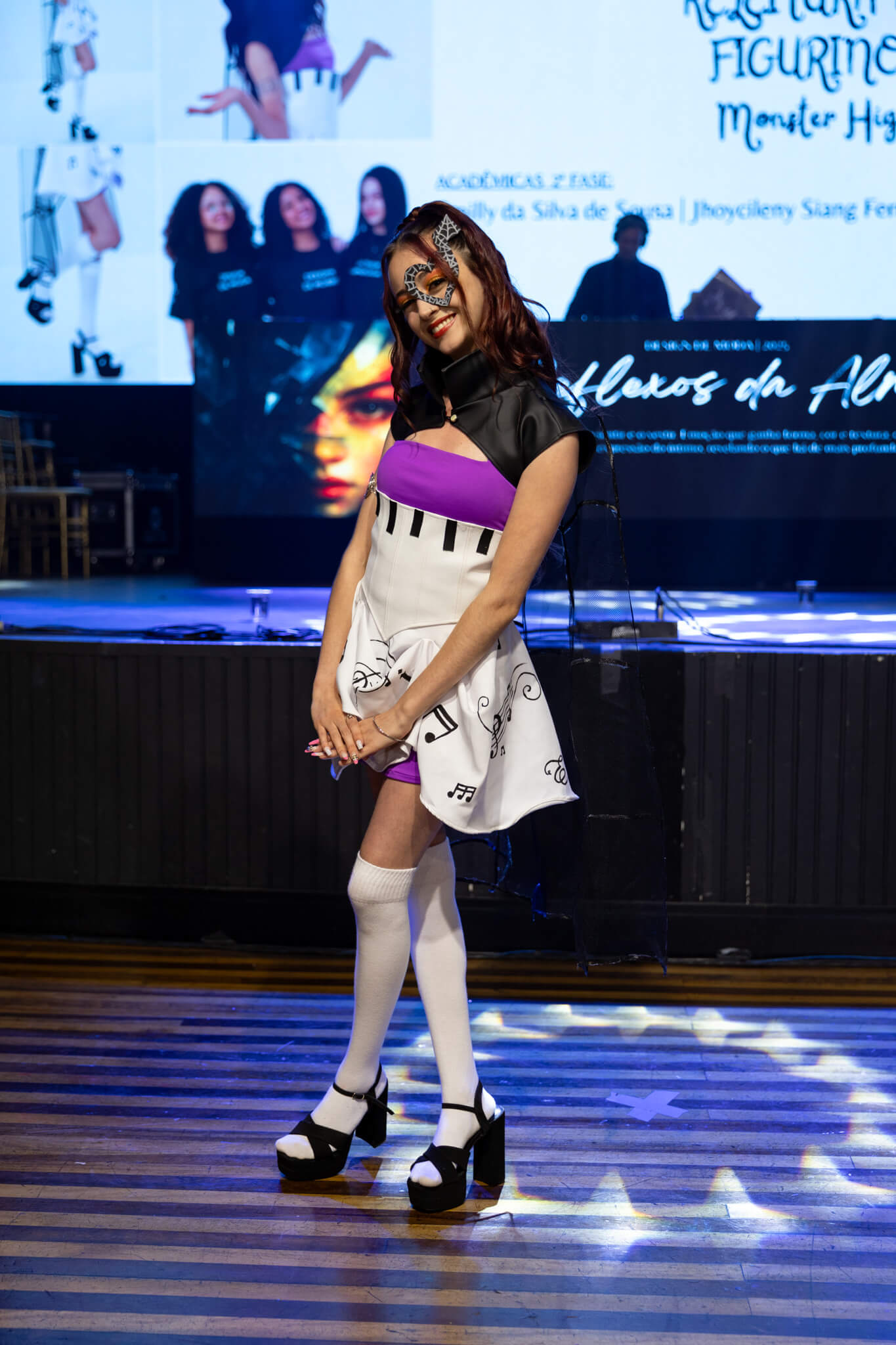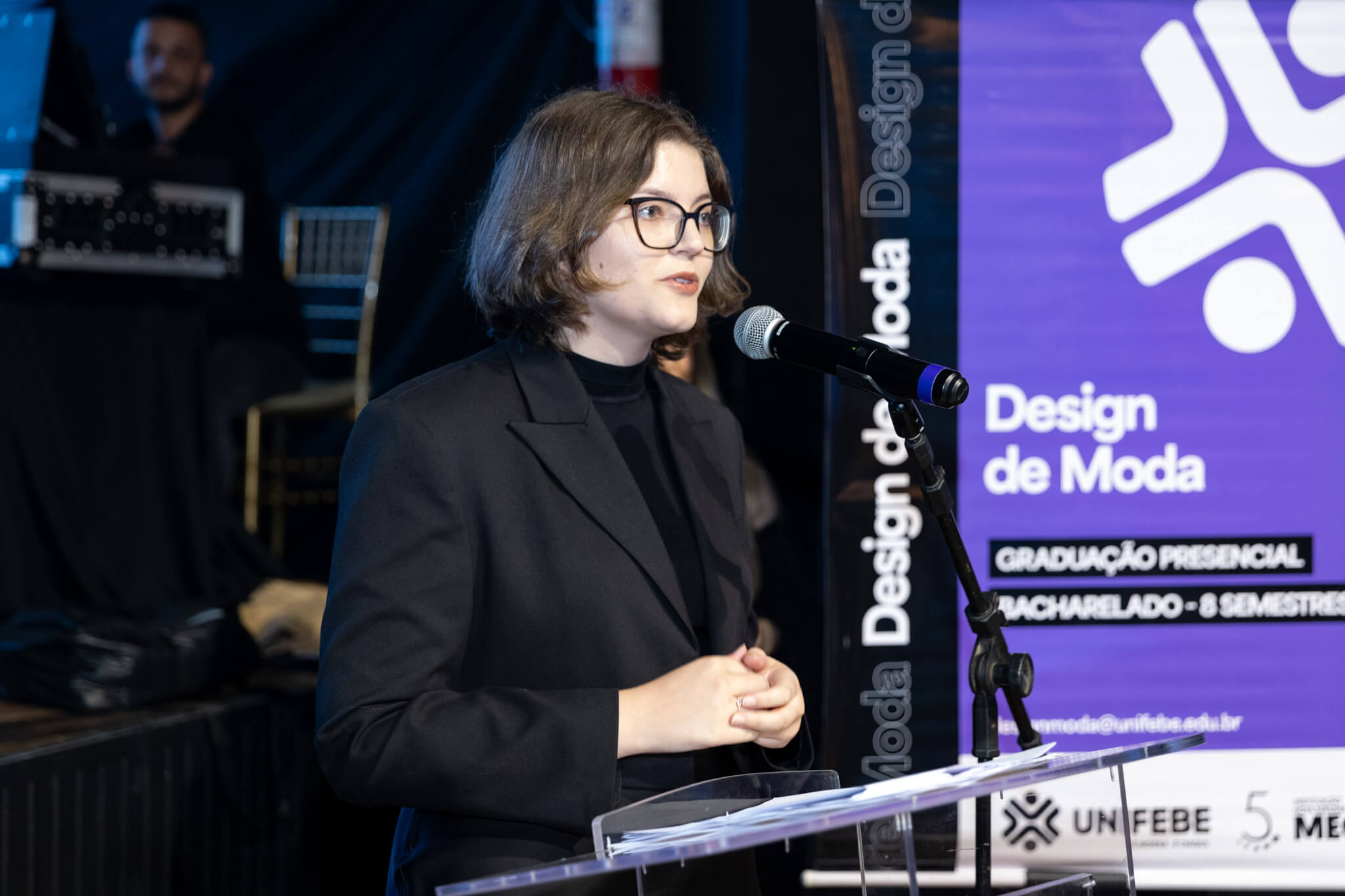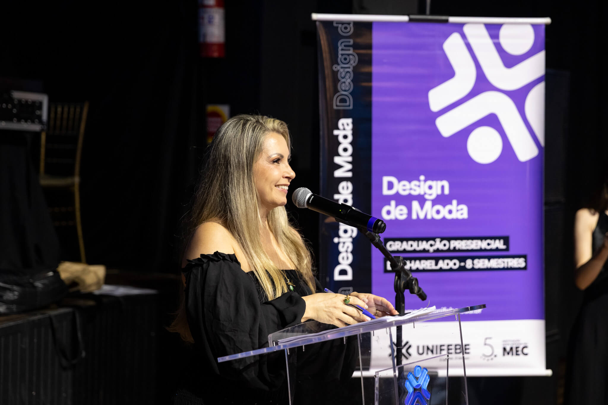 As coleções autorais criadas e confeccionadas pelos acadêmicos de Design de Moda da UNIFEBE ganharam a passarela na noite desta terça-feira (9) na Sociedade Santos Dumont
