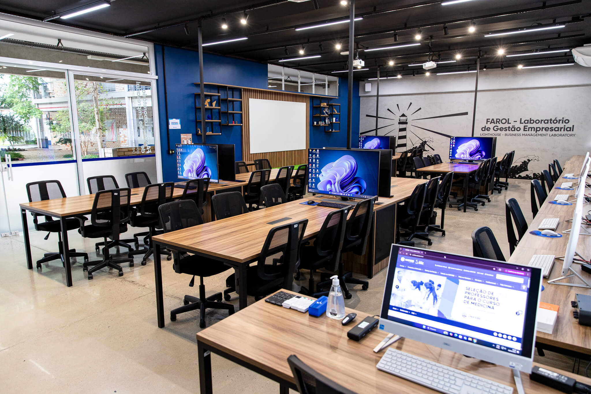 Com mais de 100 metros quadrados, o espaço, localizado no térreo do Bloco C do campus Santa Terezinha, conta com computadores de alto desempenho e softwares de simulação empresarial. No laboratório, os acadêmicos podem praticar atividades voltadas ao planejamento financeiro, logística, produção, marketing e tomada de decisões, além de vendas, recursos humanos e outras operações. Cada estação pode ser configurada de acordo com a proposta pedagógica do componente curricular, oferecendo uma visão prática e detalhada de cada departamento de uma empresa e a interdependência entre eles.