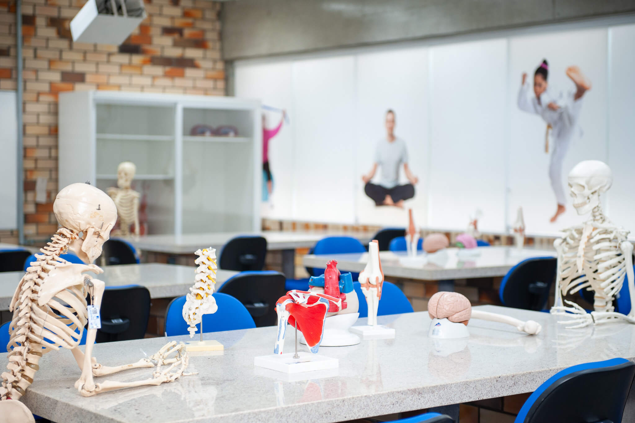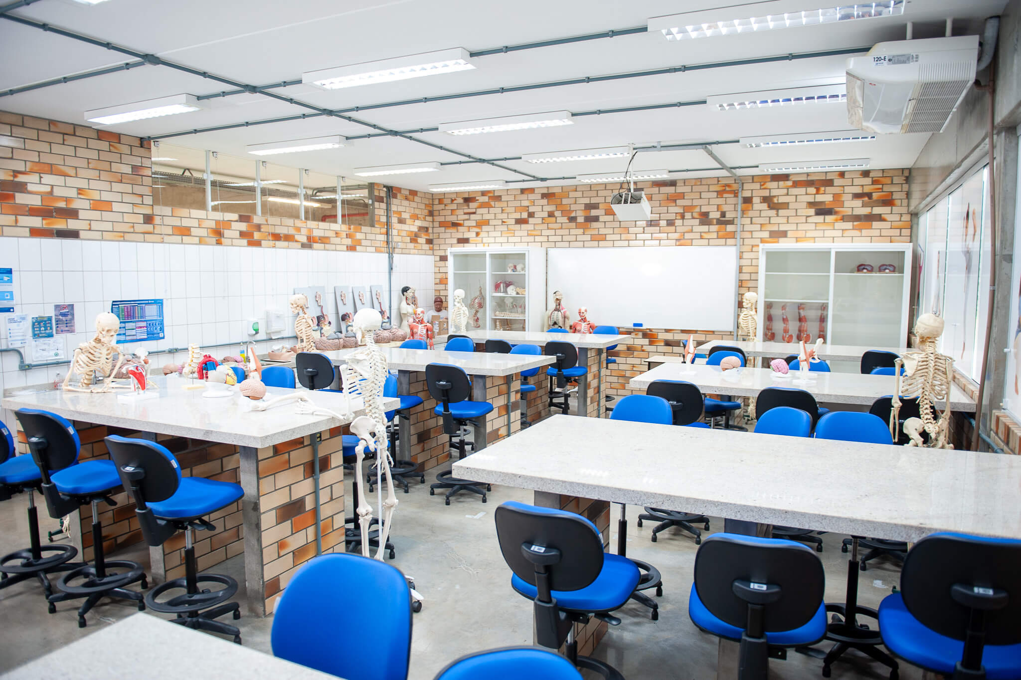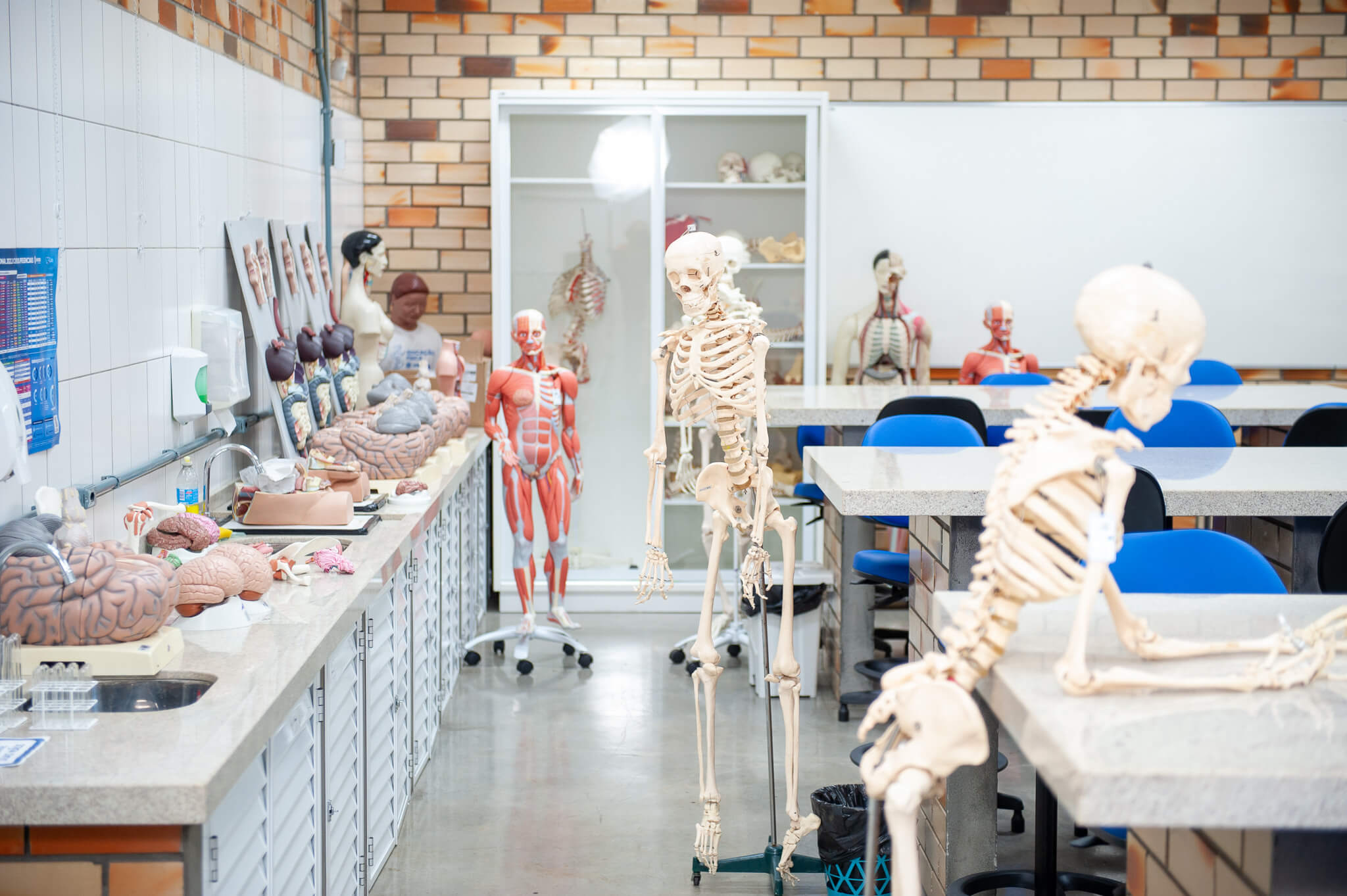 O laboratório de Ciências da Saúde fornece todas as ferramentas para que os acadêmicos conheçam com precisão os detalhes do corpo humano, utilizando peças secas que simulam órgão, tecidos e membros.