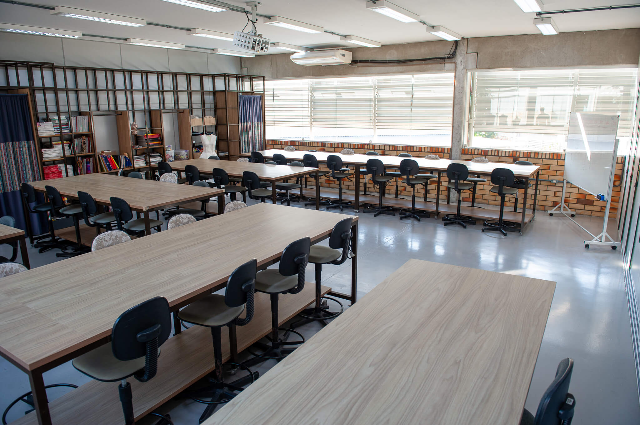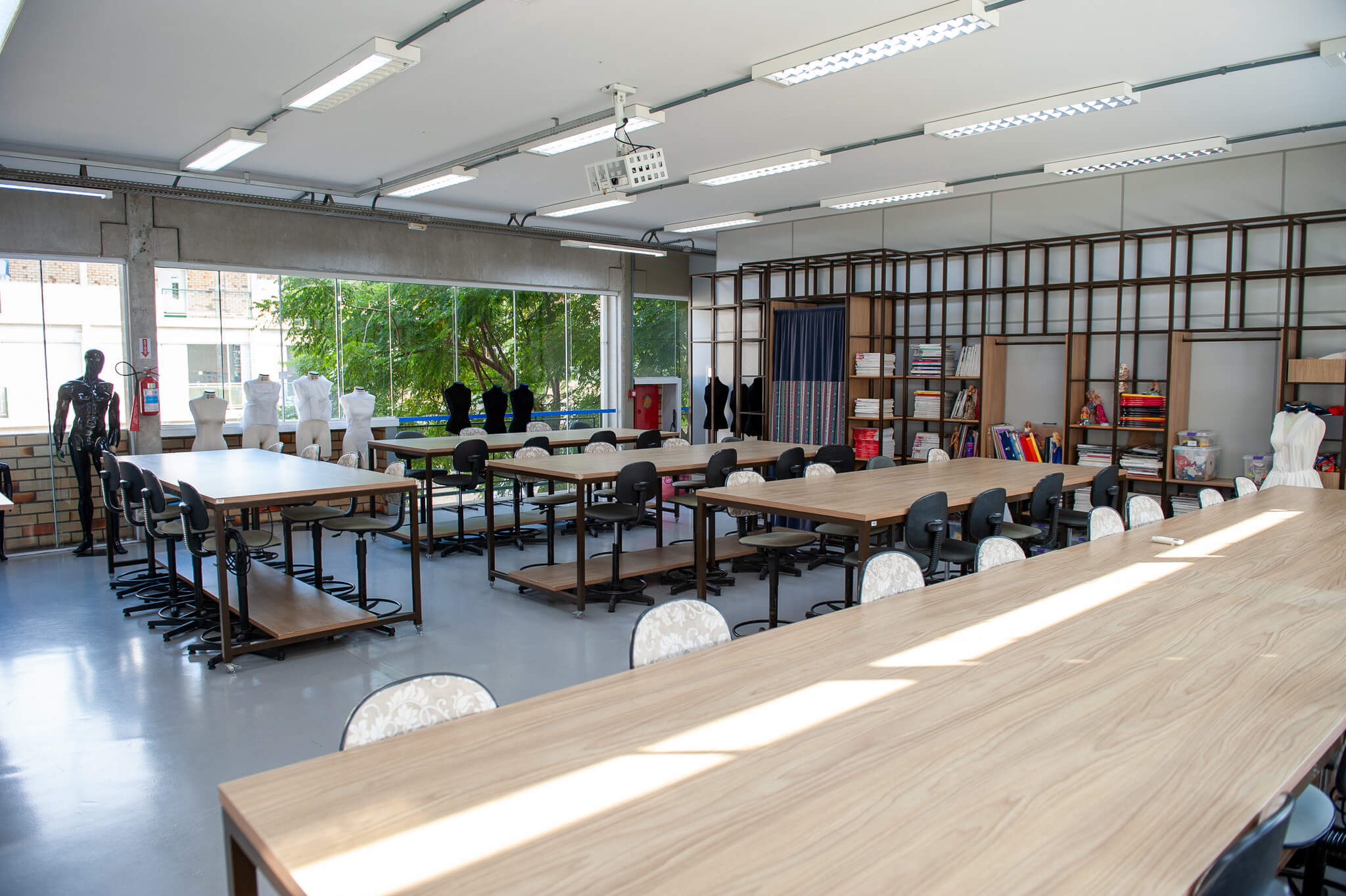 O laboratório conta com os mais modernos equipamentos, proporcionando que os acadêmicos aprendam na prática habilidades de confecção e modelagem.