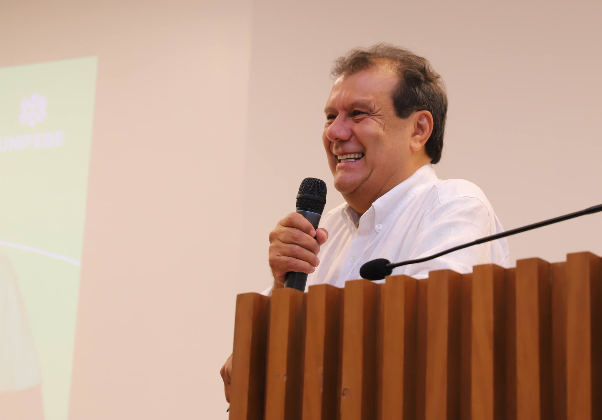 O propósito do ofício médico e a descoberta da vocação para a medicina foram temas da fala do professor Dr. Osvaldo Quirino de Souza. Para o coordenador do curso, humildade, respeito e gosto pelo ser humano são condições básicas para que um estudante conclua a formação como um bom médico.