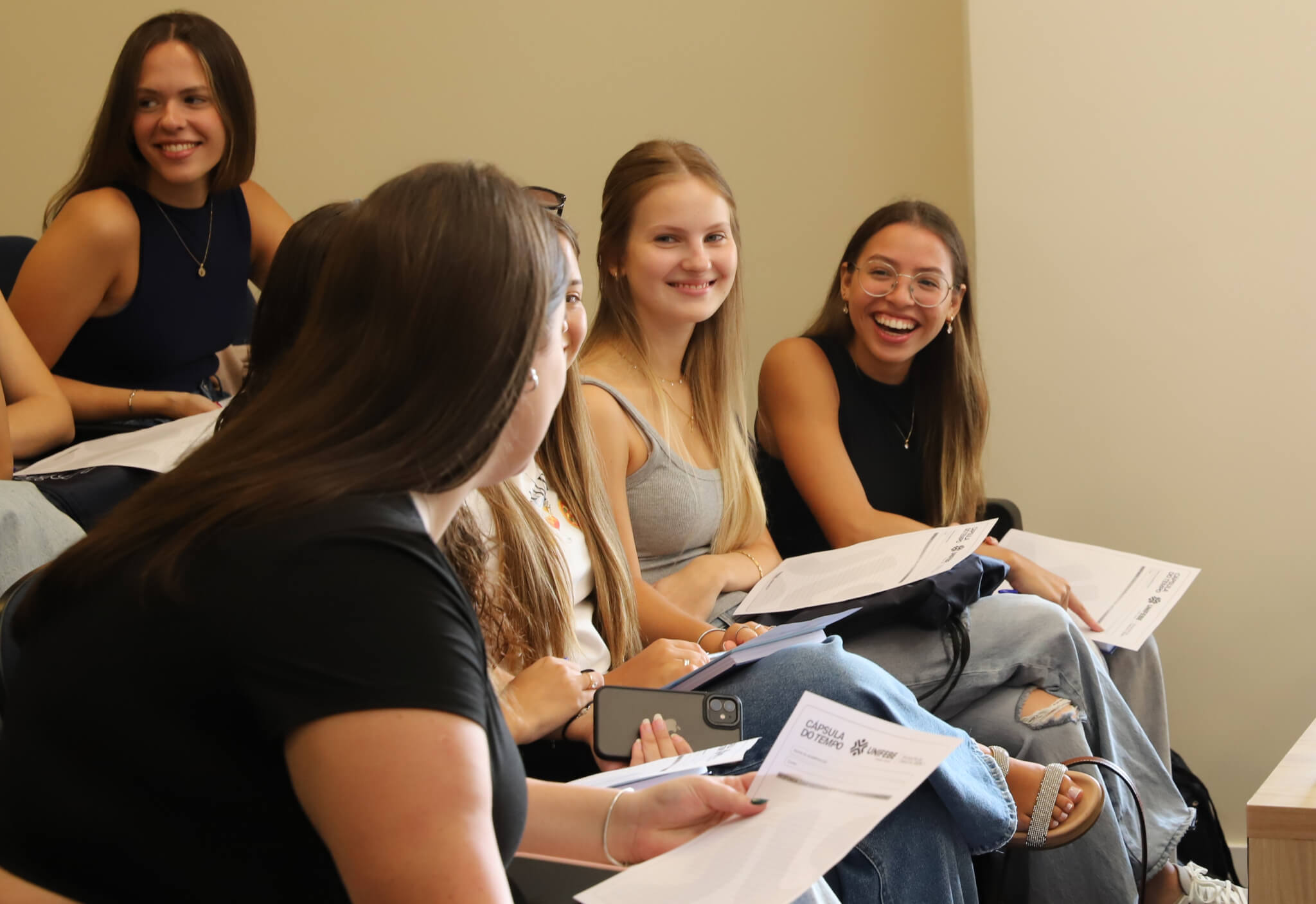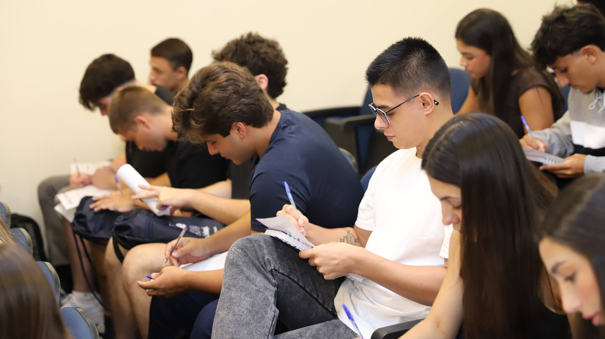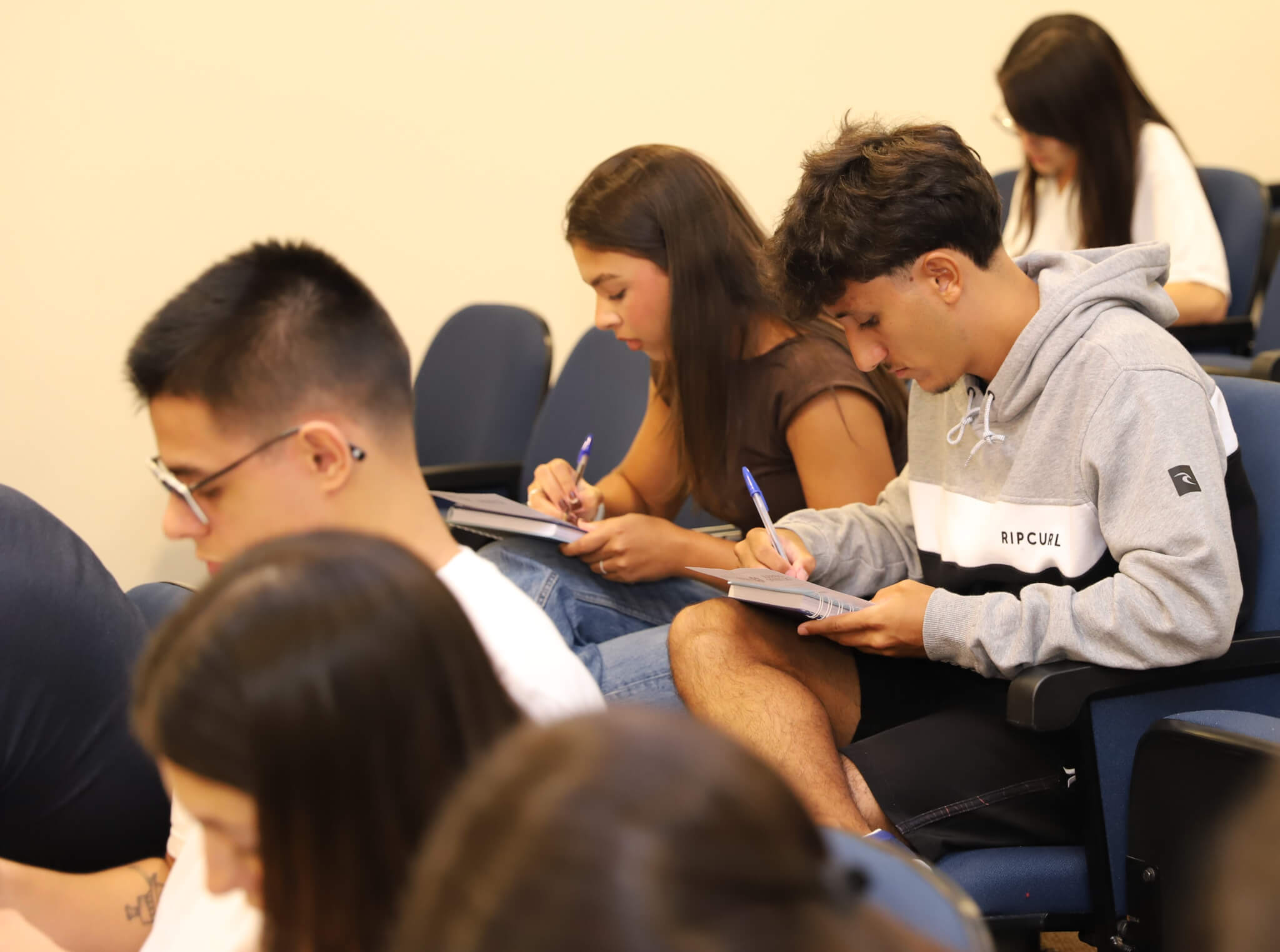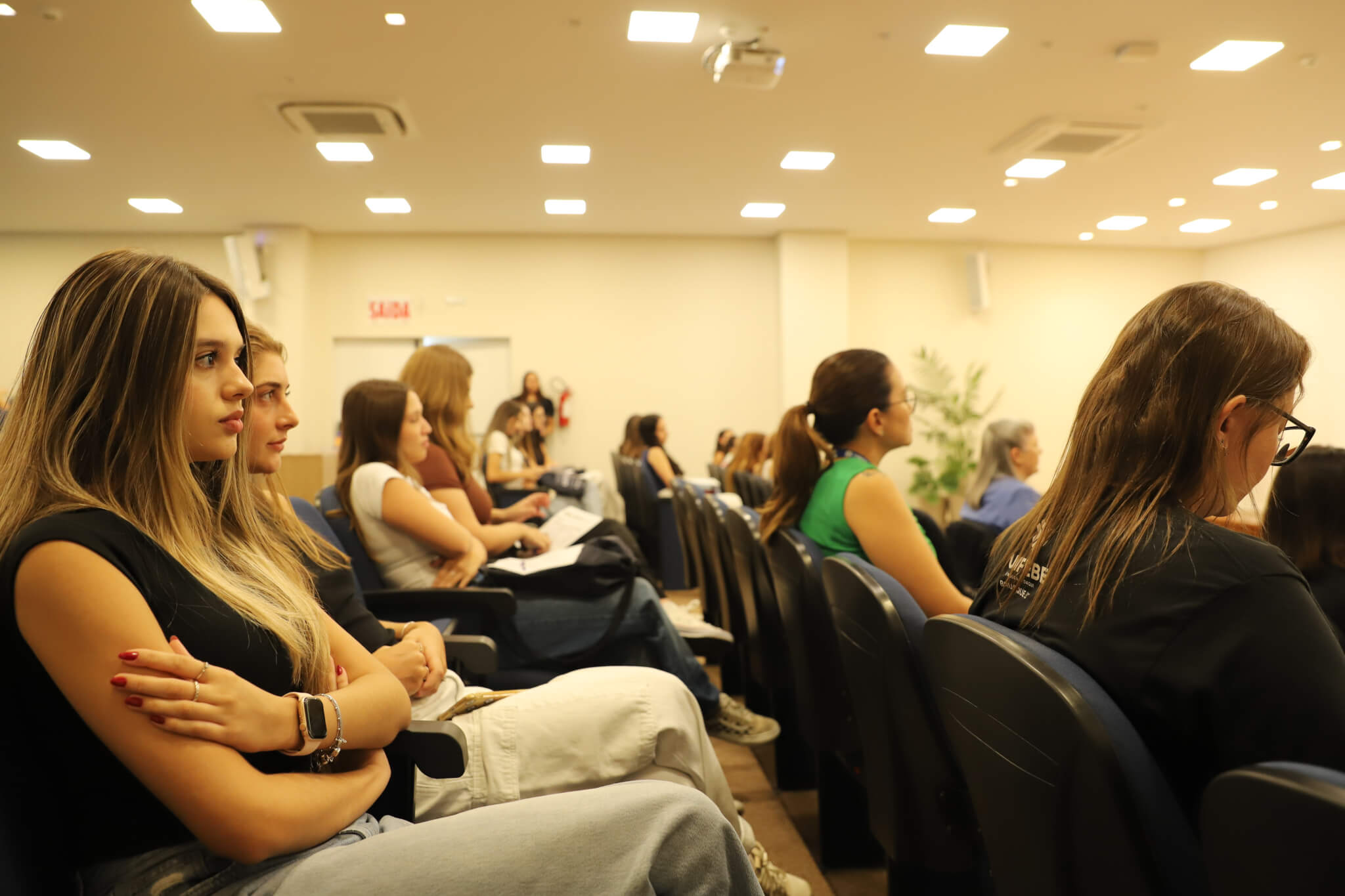 Os 60 calouros do Curso de Medicina da UNIFEBE começaram, oficialmente, o semestre 2026.1 nesta quinta-feira (19) com uma recepção realizada no auditório Germano Hoffmann, no Bloco F do campus Santa Terezinha. Foi o primeiro dia de uma jornada de seis anos, que será repleta de estudos, amadurecimento, crescimento e aprendizado prático.