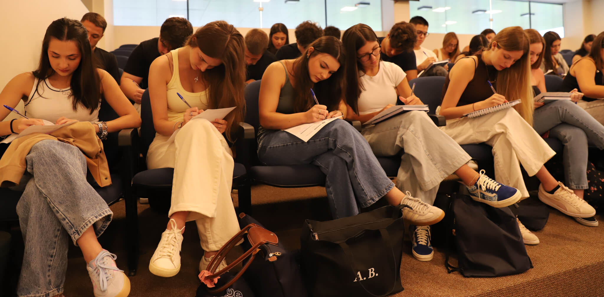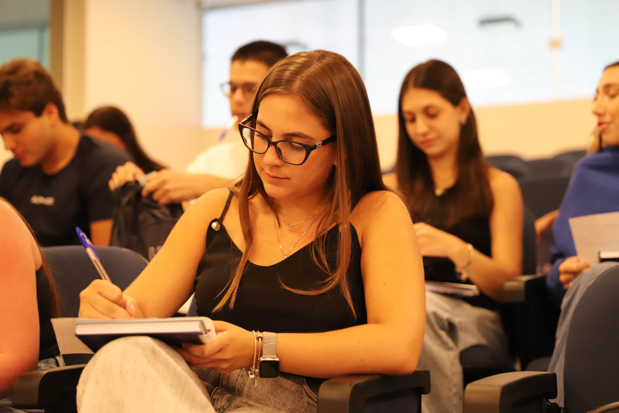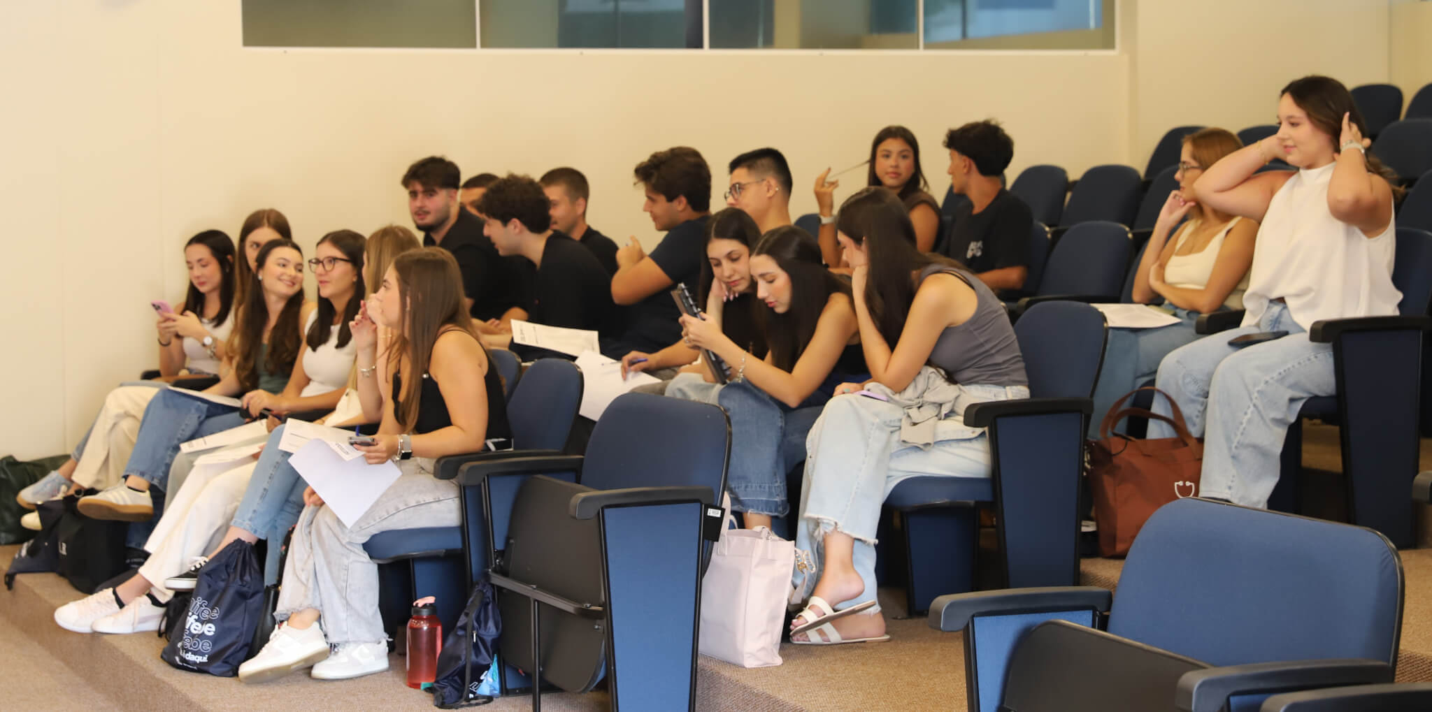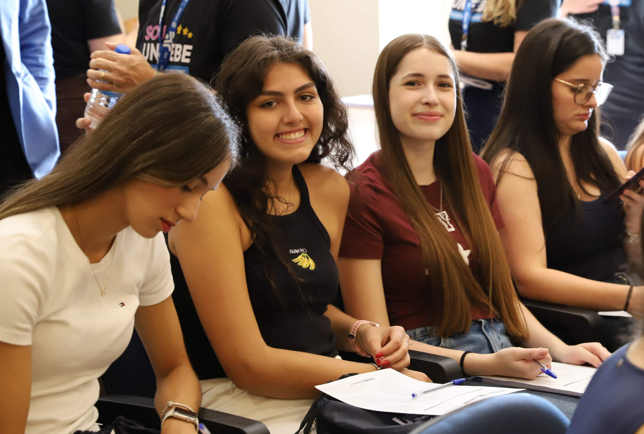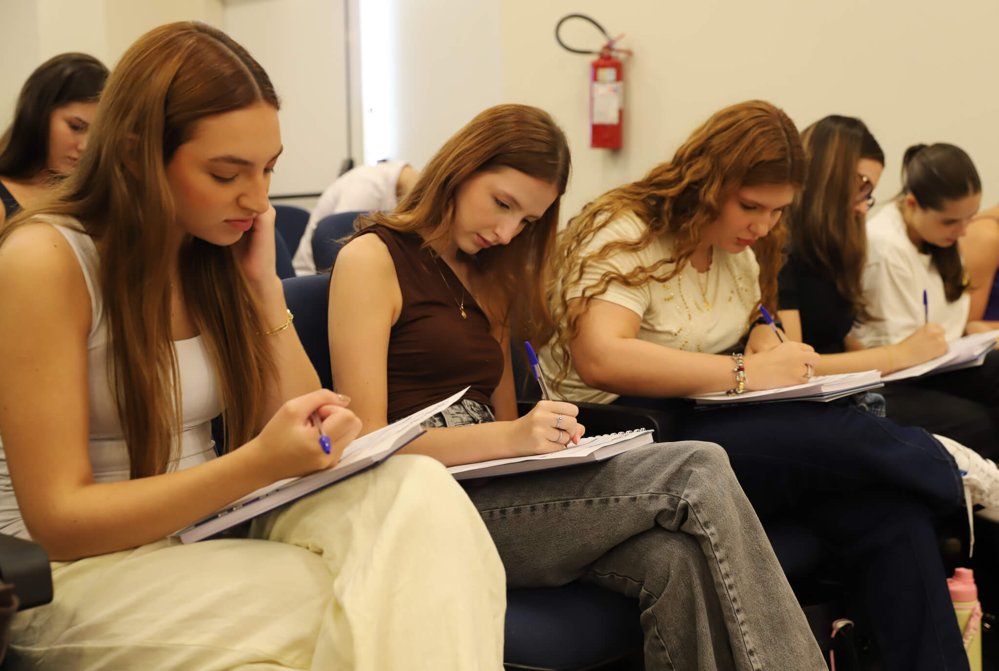 Os 60 calouros do Curso de Medicina da UNIFEBE começaram, oficialmente, o semestre 2026.1 nesta quinta-feira (19) com uma recepção realizada no auditório Germano Hoffmann, no Bloco F do campus Santa Terezinha. Foi o primeiro dia de uma jornada de seis anos, que será repleta de estudos, amadurecimento, crescimento e aprendizado prático.