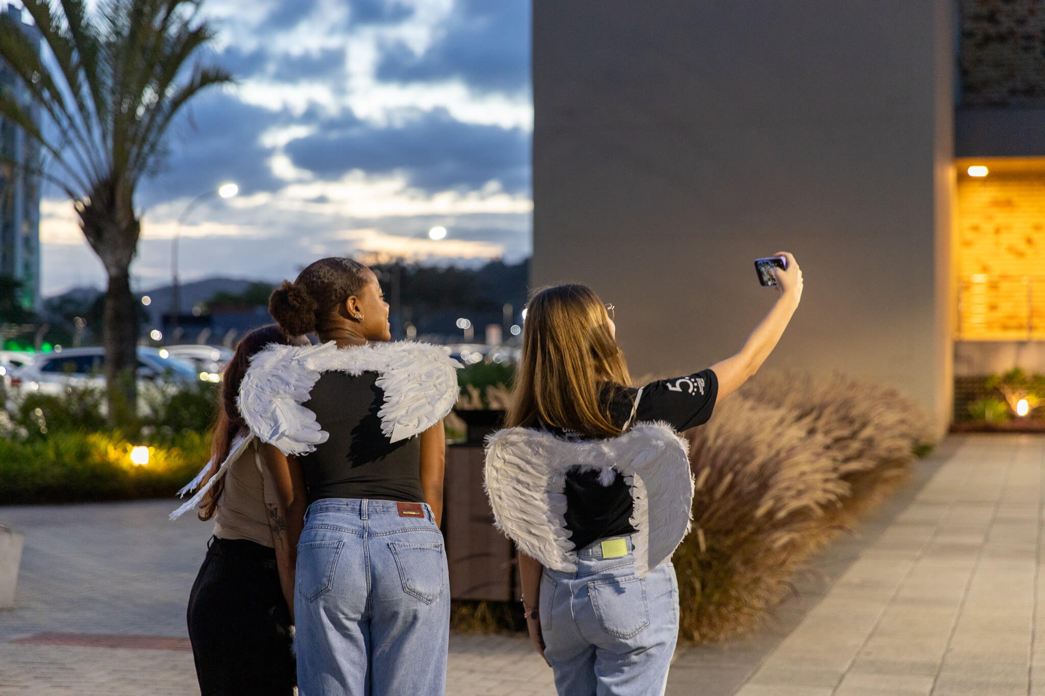 Na dinâmica, os calouros retiravam “asas de anjos” aleatoriamente de uma caixa. Em cada par de asas, havia palavras relacionadas, e com elas eram formadas pares de calouros. Essas duplas de calouros, por sua vez, foram apresentadas aos seus “anjos”, os veteranos que os ajudarão nesta nova fase de suas vidas.