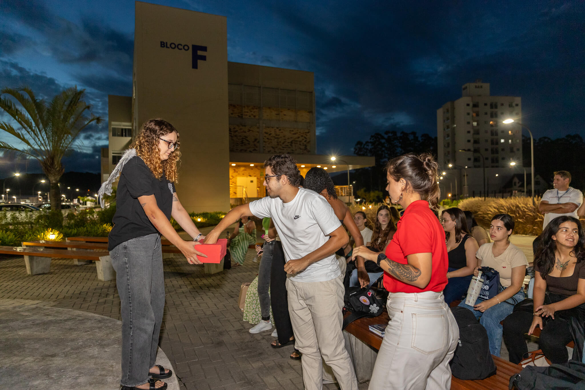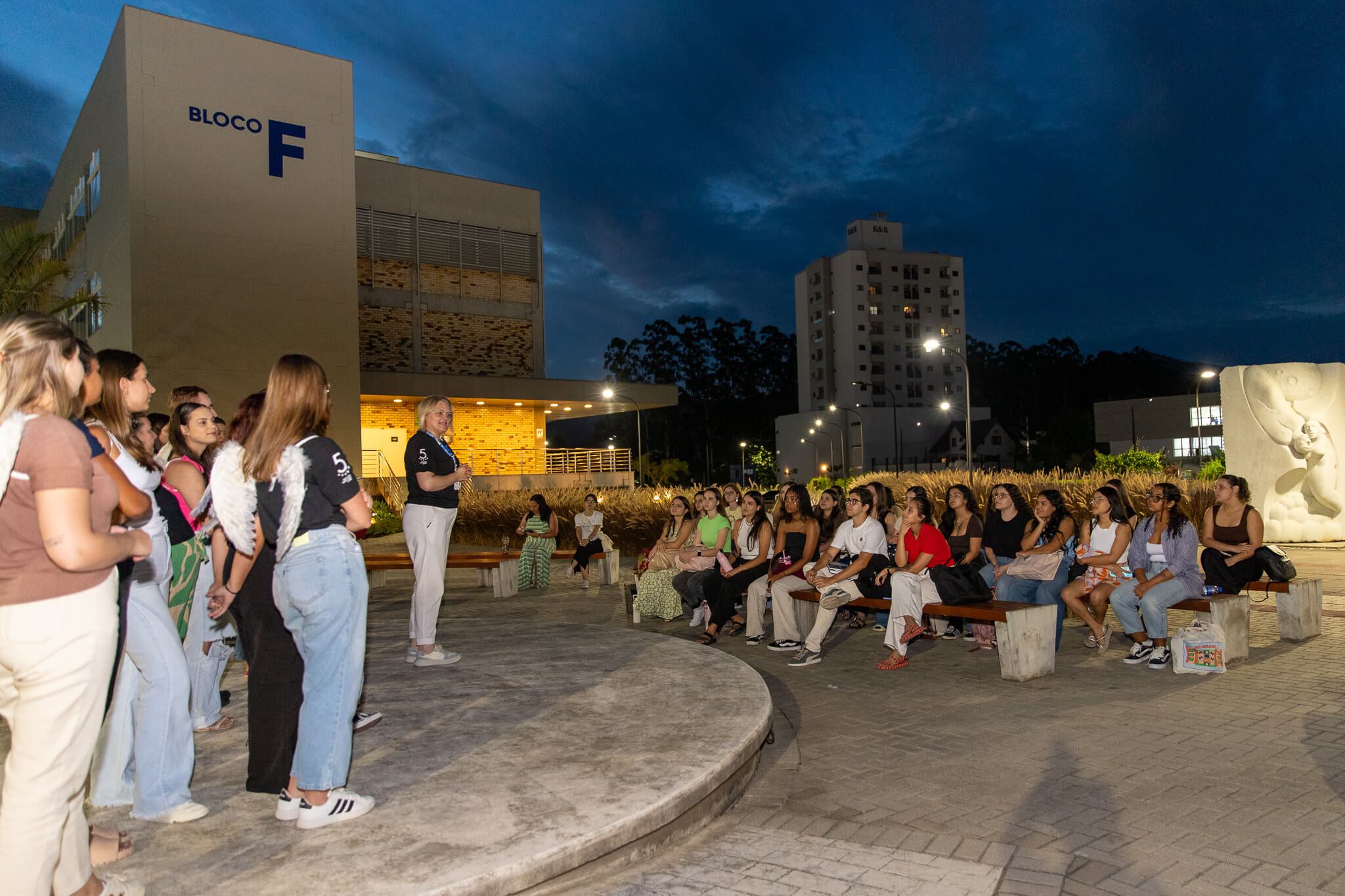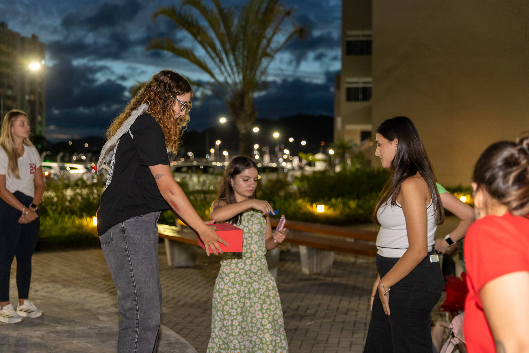 A professora também destaca a organização da sétima fase do curso para a recepção. “Neste ano, foi especialmente significativo ver os acadêmicos da 7.ª fase assumindo a organização da programação. Eles planejaram cada momento com sensibilidade e responsabilidade, pensando não apenas em integrar, mas tambpem em cuidar. Foi bonito perceber o envolvimento, a criatividade e o compromisso com os colegas que estão começando agora.”