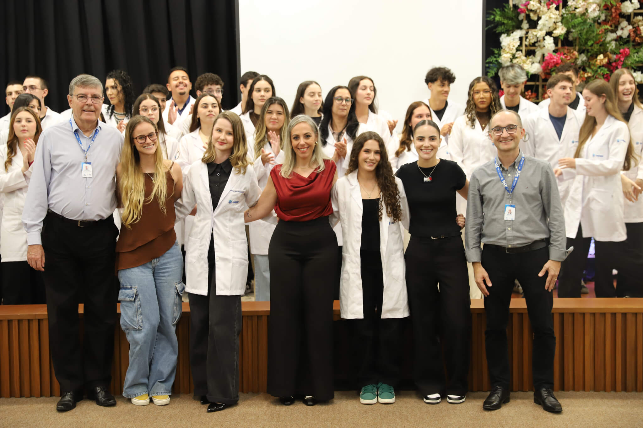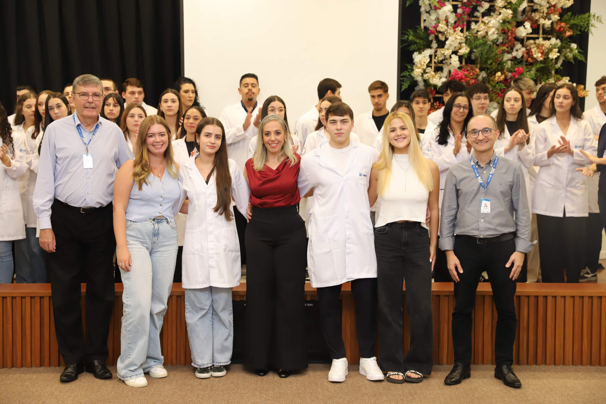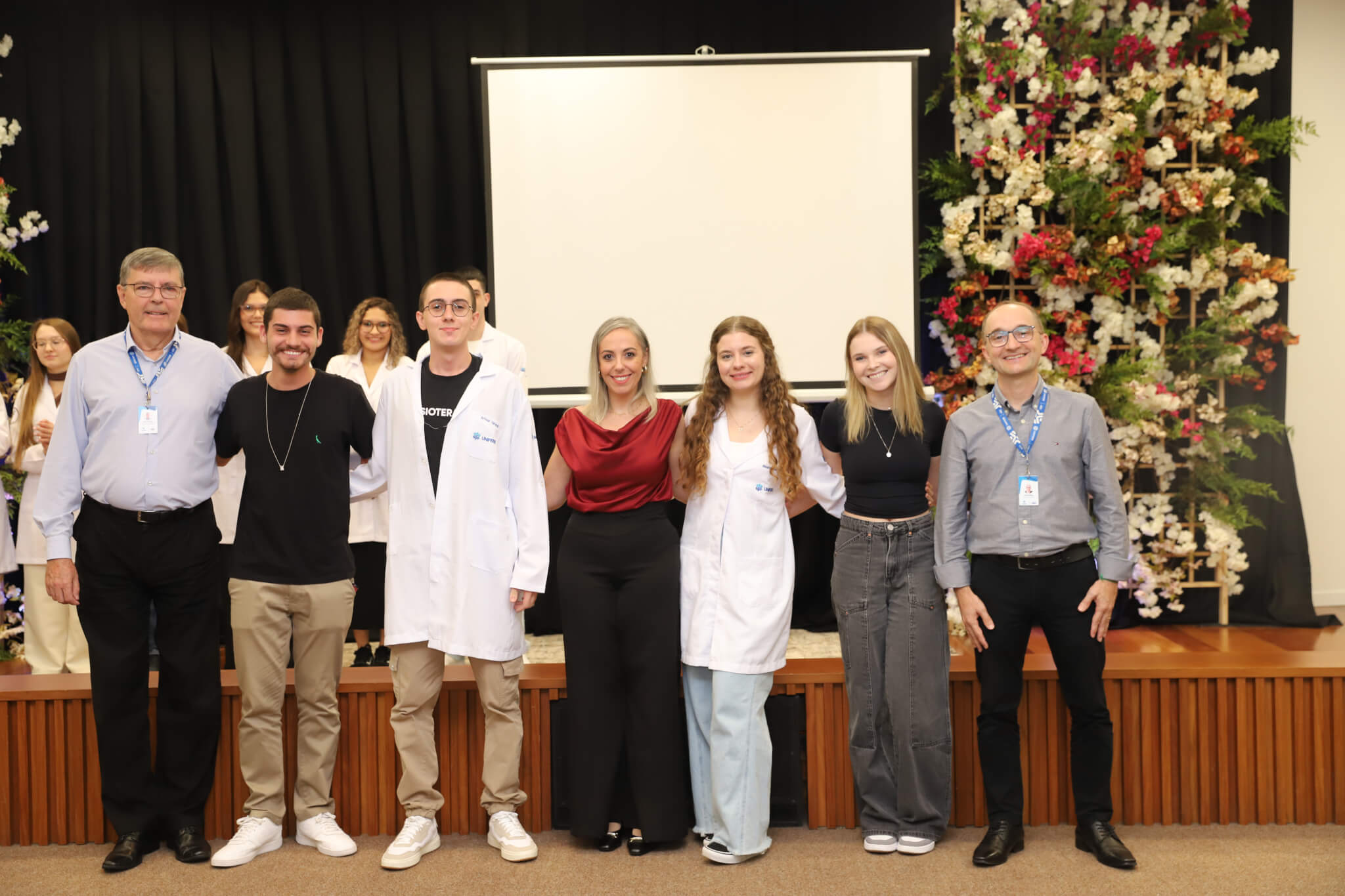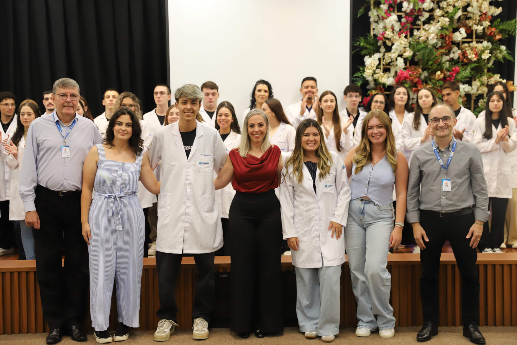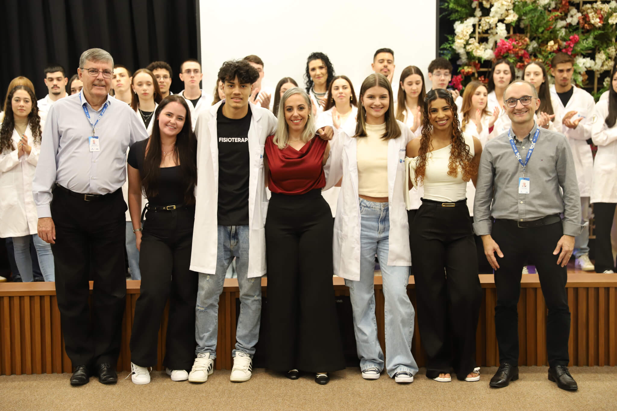 “É o início de uma jornada, e esperamos que ela possa contribuir muito com os calouros, não apenas profissionalmente, mas também pelo lado pessoal. […] Esse jaleco que eles receberam tem um peso real de responsabilidade. A partir de agora, eles começam a dar os primeiros passos nessa profissão, que é ser fisioterapeuta. Que eles aproveitem o curso, a faculdade. Eles têm inúmeras oportunidades”, declarou a coordenadora do curso, professora Leilane Marcos.