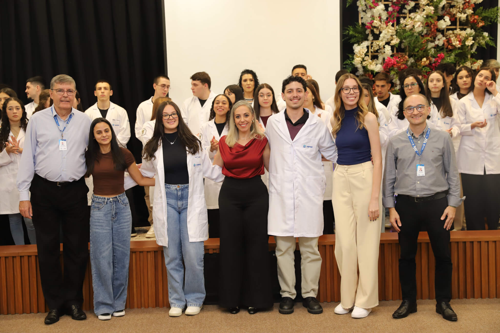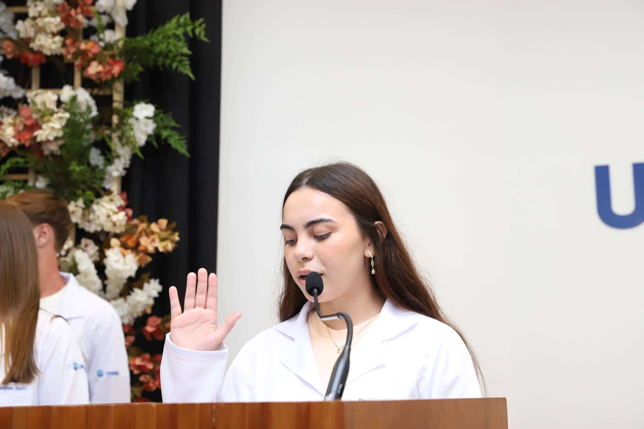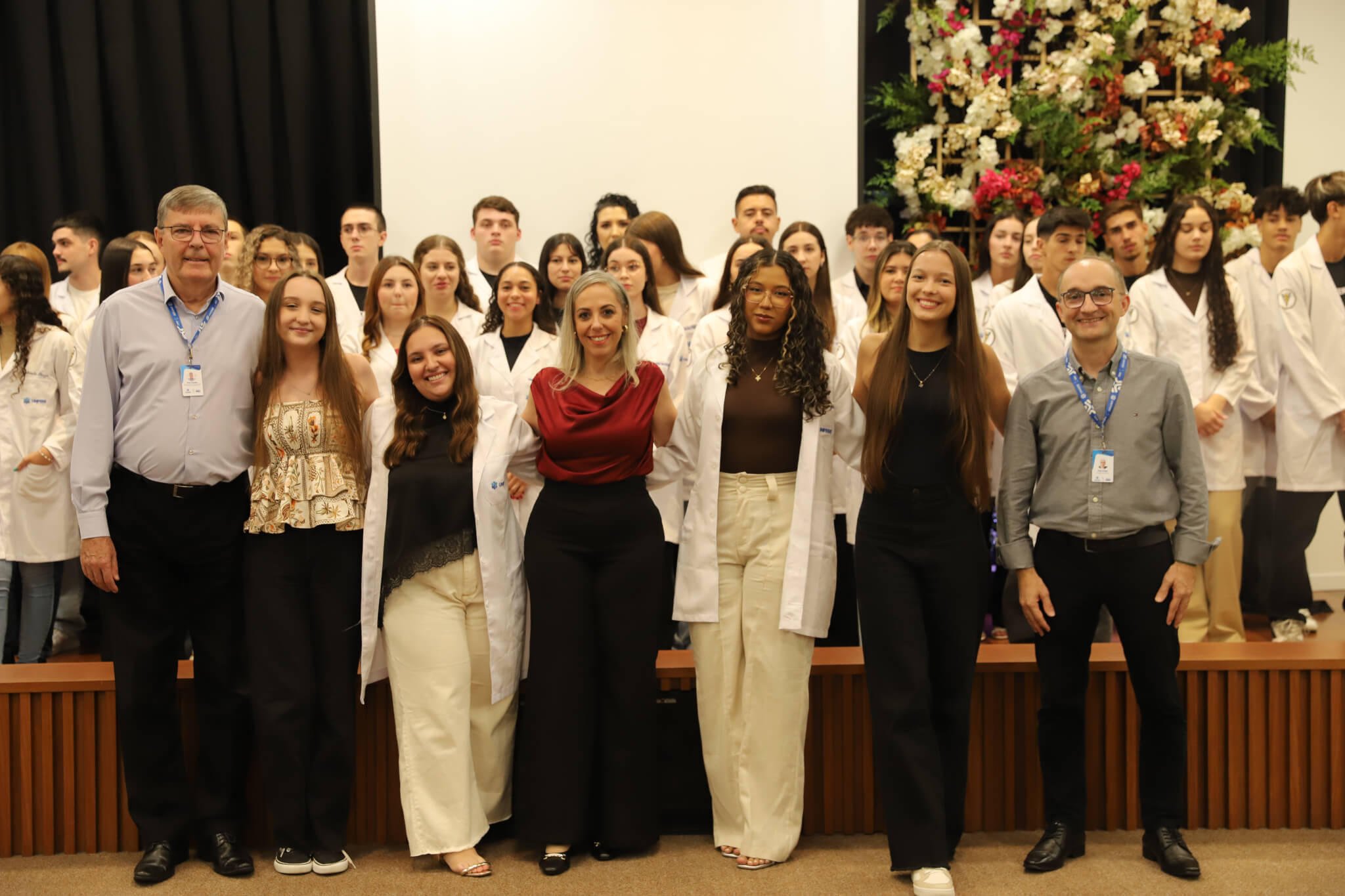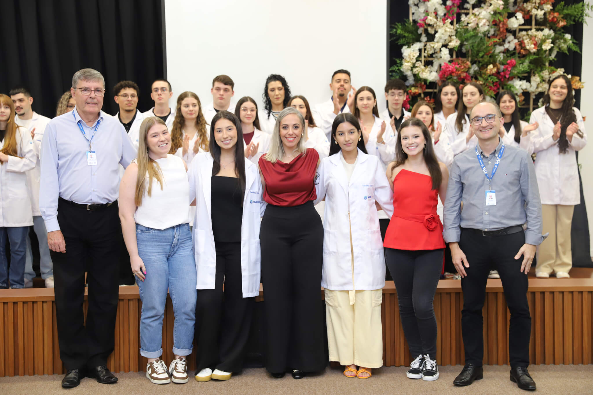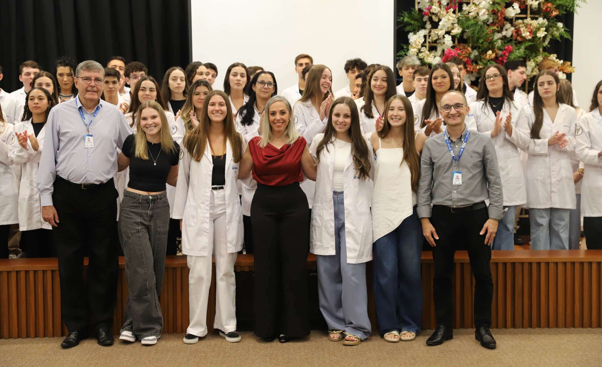 “É o início de uma jornada, e esperamos que ela possa contribuir muito com os calouros, não apenas profissionalmente, mas também pelo lado pessoal. […] Esse jaleco que eles receberam tem um peso real de responsabilidade. A partir de agora, eles começam a dar os primeiros passos nessa profissão, que é ser fisioterapeuta. Que eles aproveitem o curso, a faculdade. Eles têm inúmeras oportunidades”, declarou a coordenadora do curso, professora Leilane Marcos.