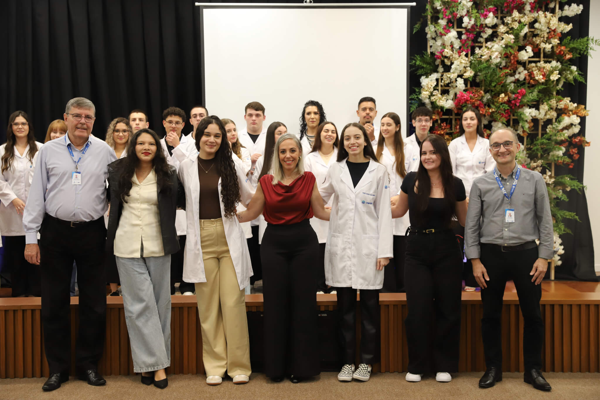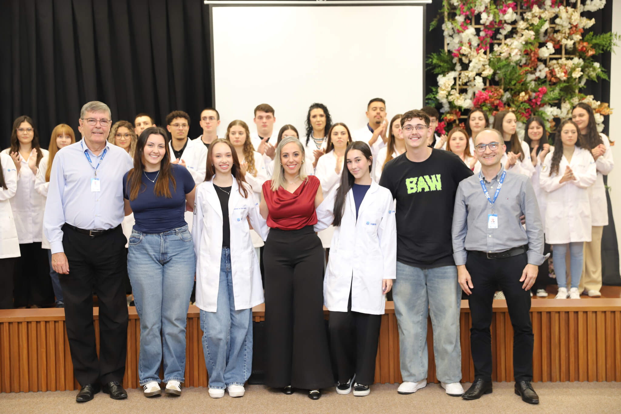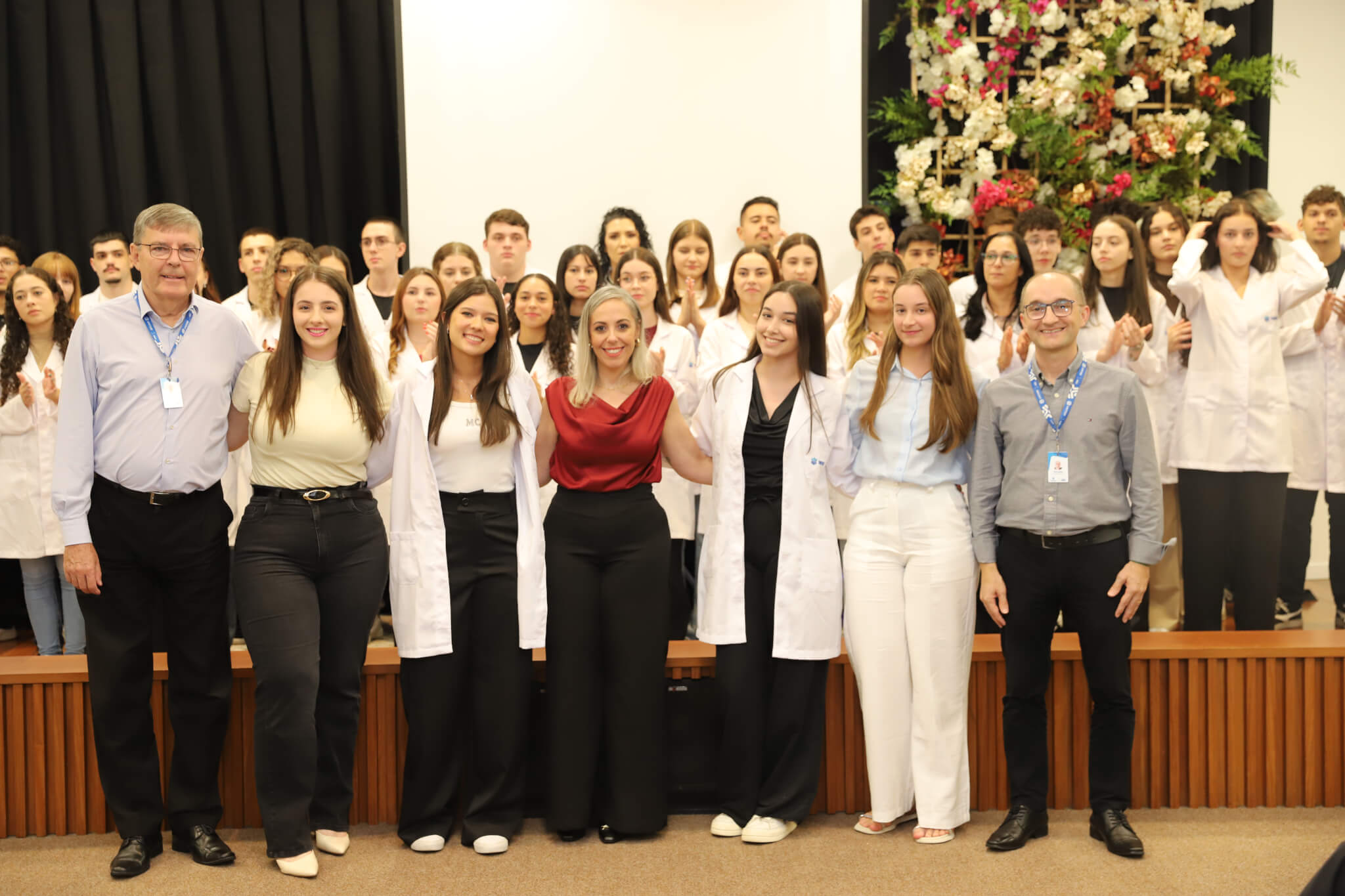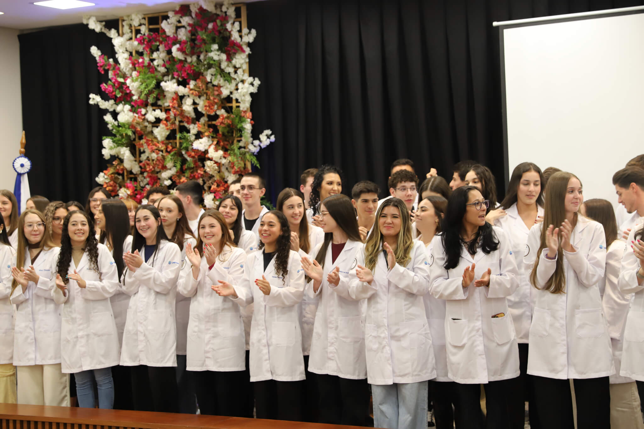 “É o início de uma jornada, e esperamos que ela possa contribuir muito com os calouros, não apenas profissionalmente, mas também pelo lado pessoal. […] Esse jaleco que eles receberam tem um peso real de responsabilidade. A partir de agora, eles começam a dar os primeiros passos nessa profissão, que é ser fisioterapeuta. Que eles aproveitem o curso, a faculdade. Eles têm inúmeras oportunidades”, declarou a coordenadora do curso, professora Leilane Marcos.