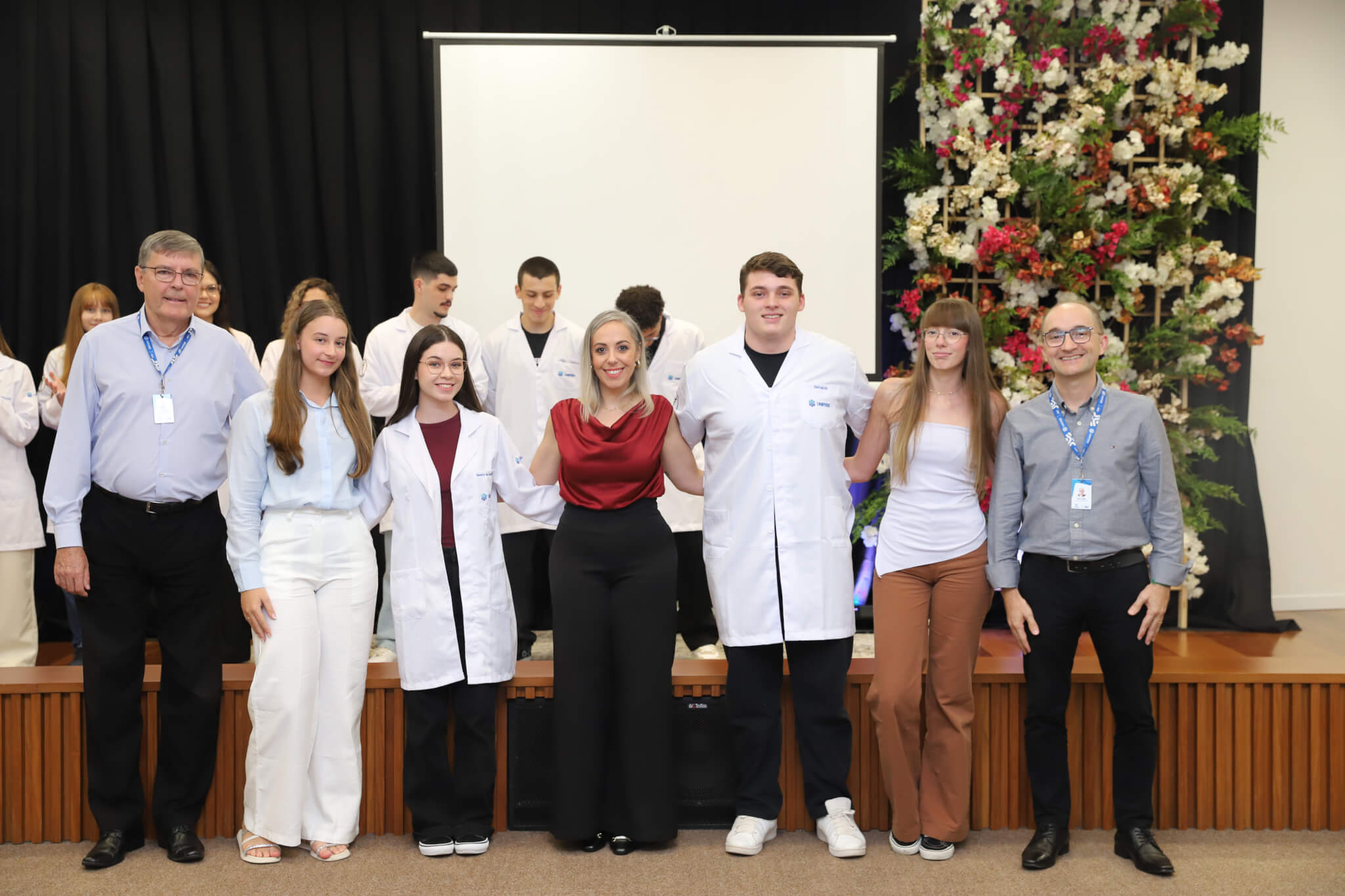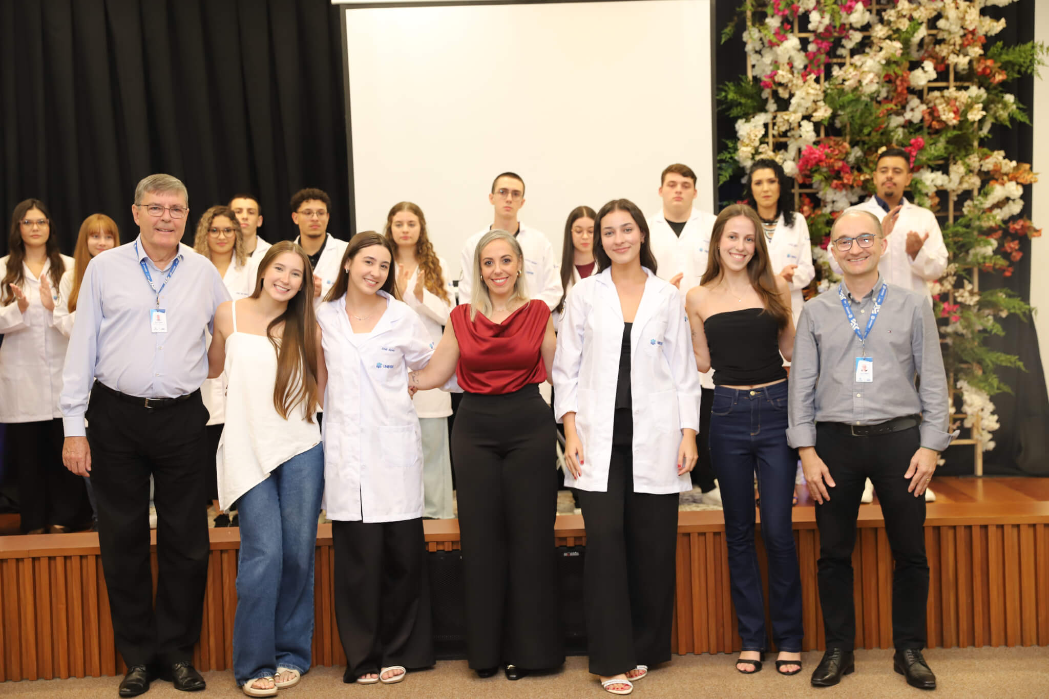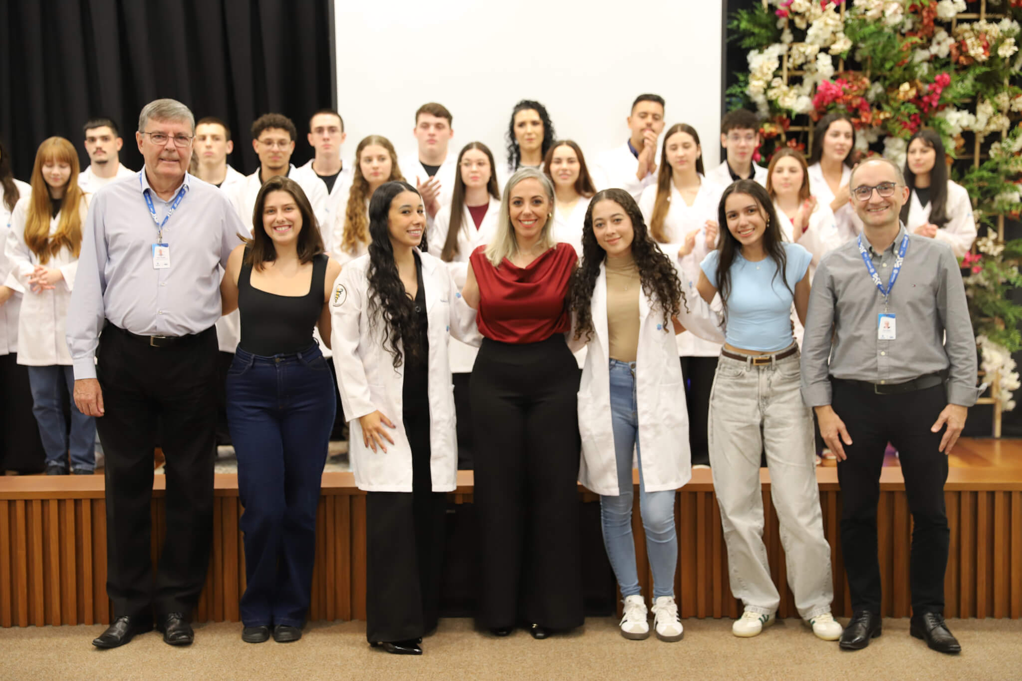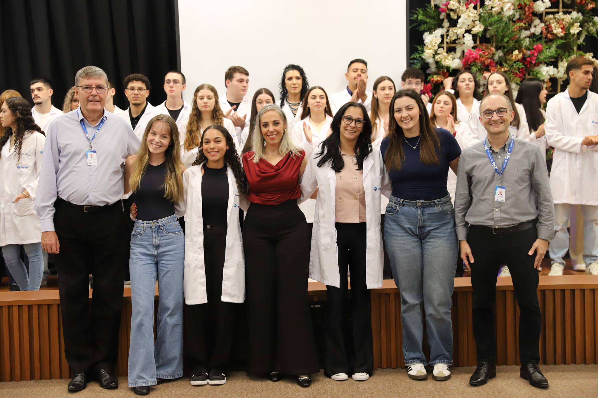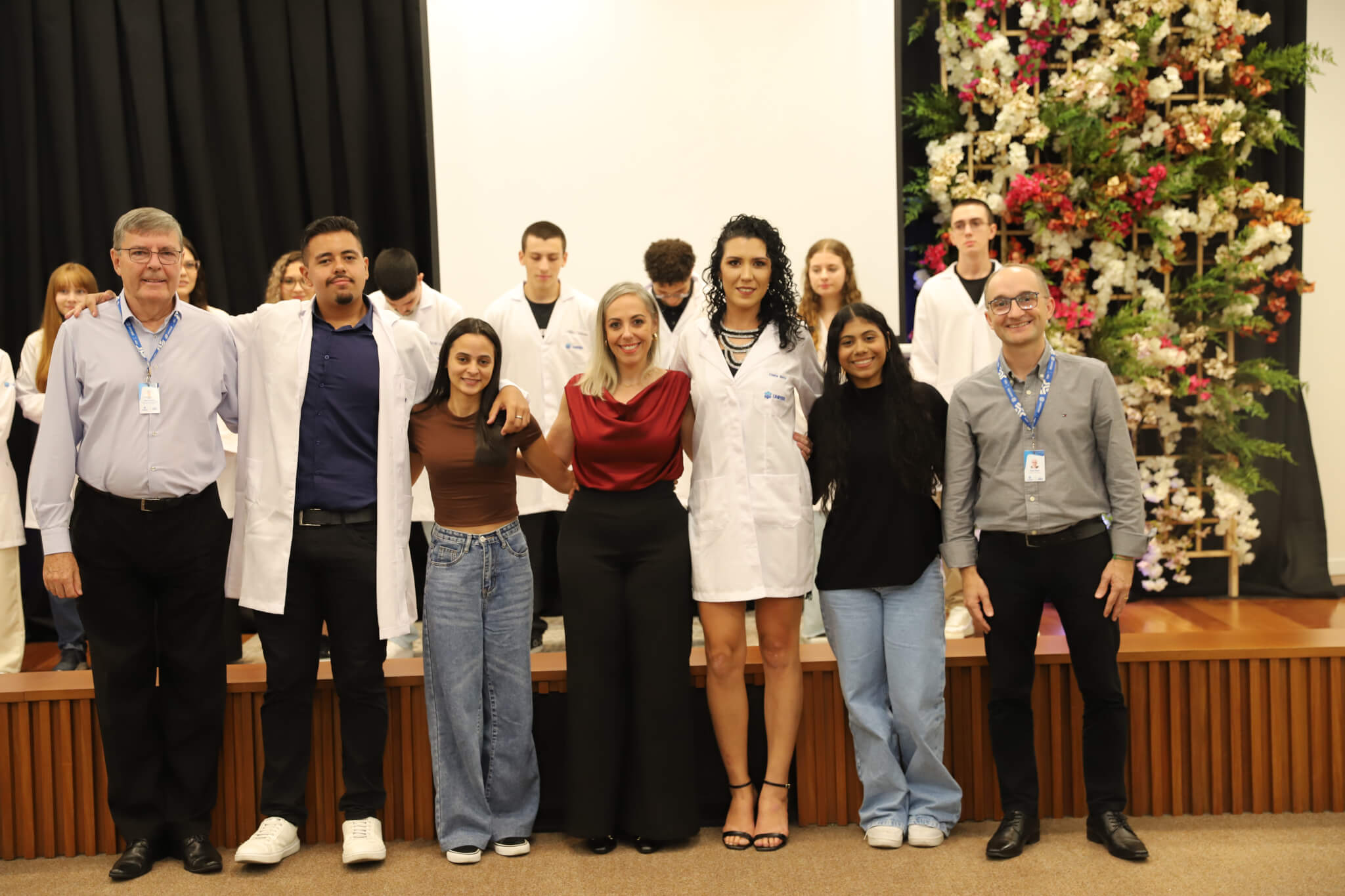 “É o início de uma jornada, e esperamos que ela possa contribuir muito com os calouros, não apenas profissionalmente, mas também pelo lado pessoal. […] Esse jaleco que eles receberam tem um peso real de responsabilidade. A partir de agora, eles começam a dar os primeiros passos nessa profissão, que é ser fisioterapeuta. Que eles aproveitem o curso, a faculdade. Eles têm inúmeras oportunidades”, declarou a coordenadora do curso, professora Leilane Marcos.