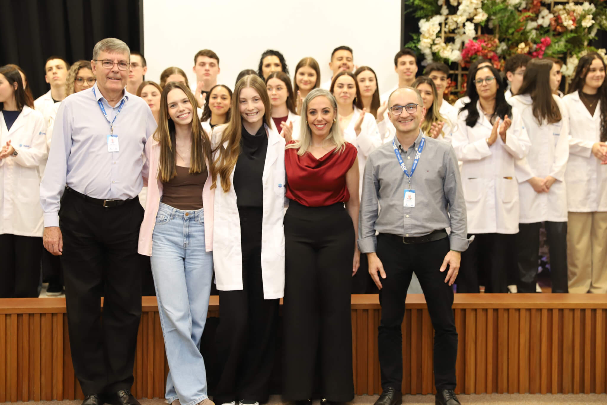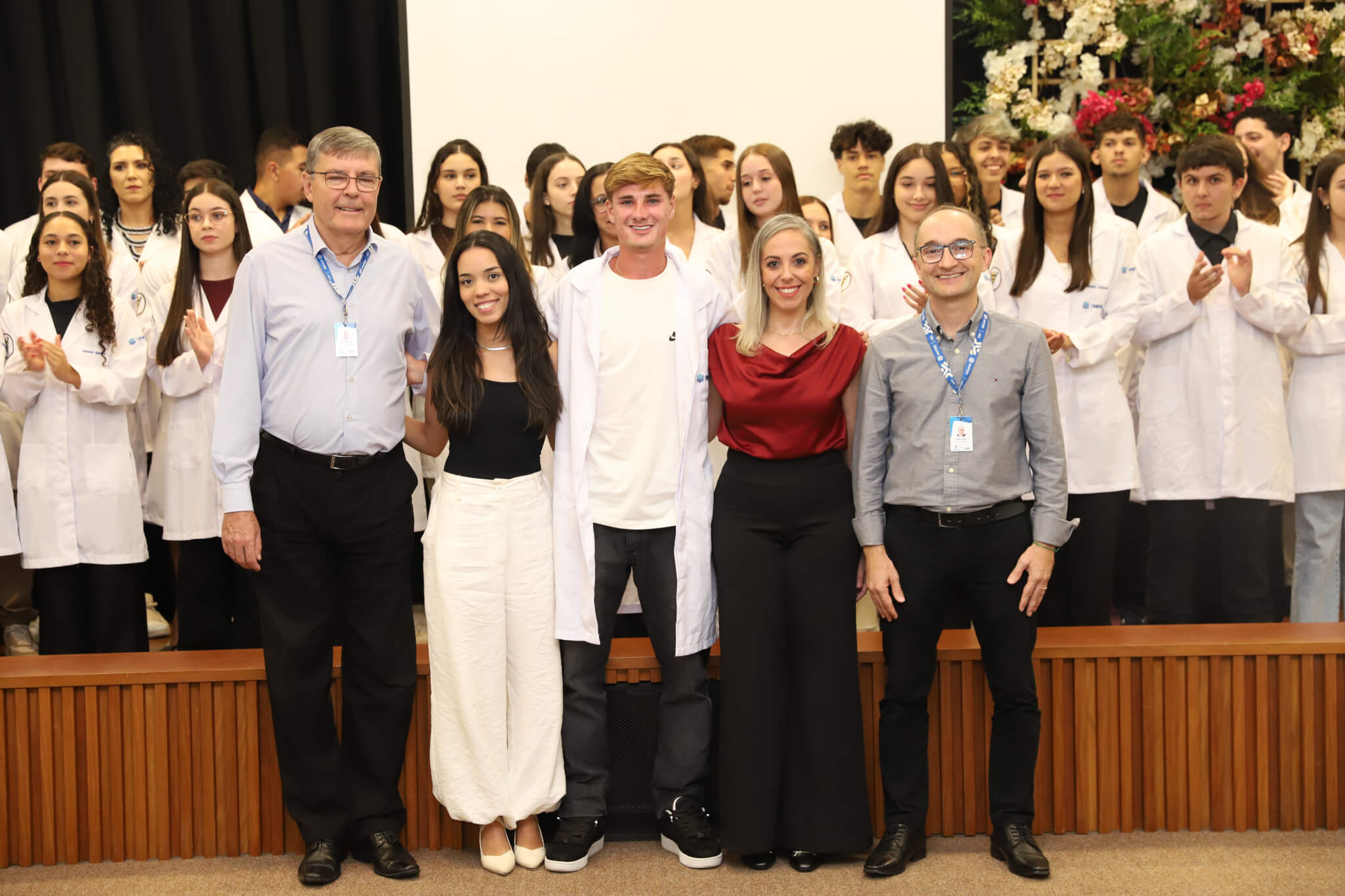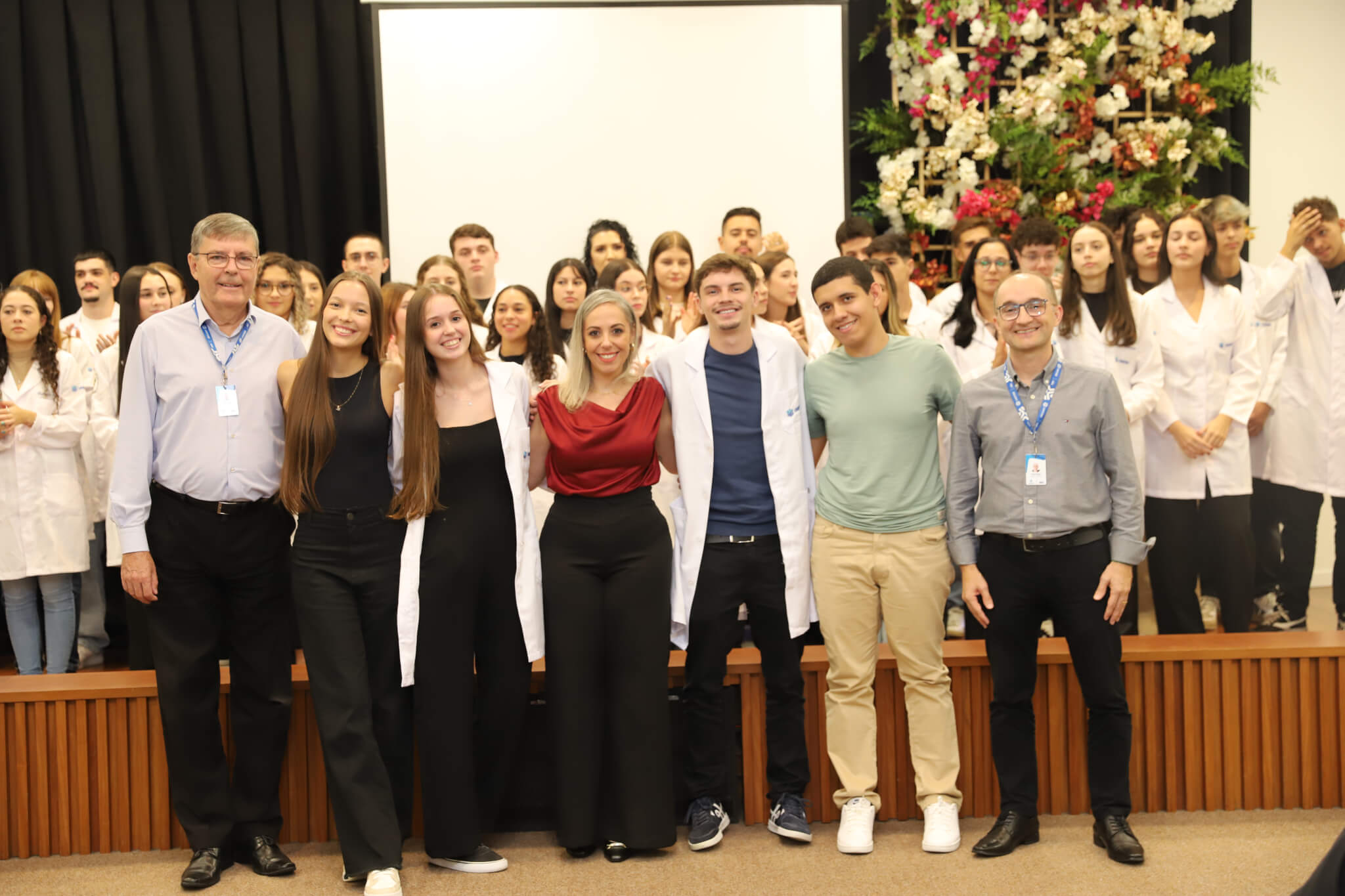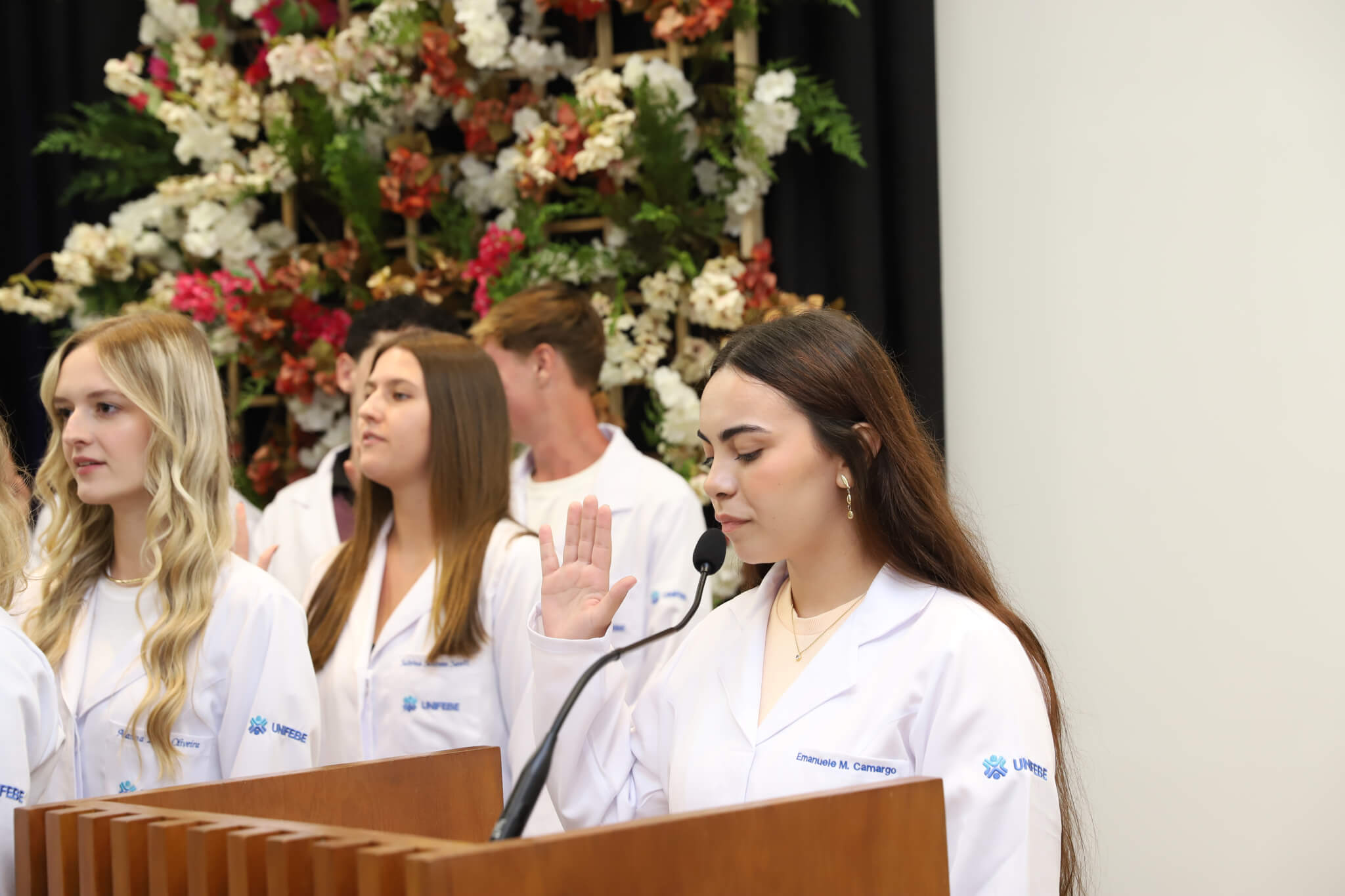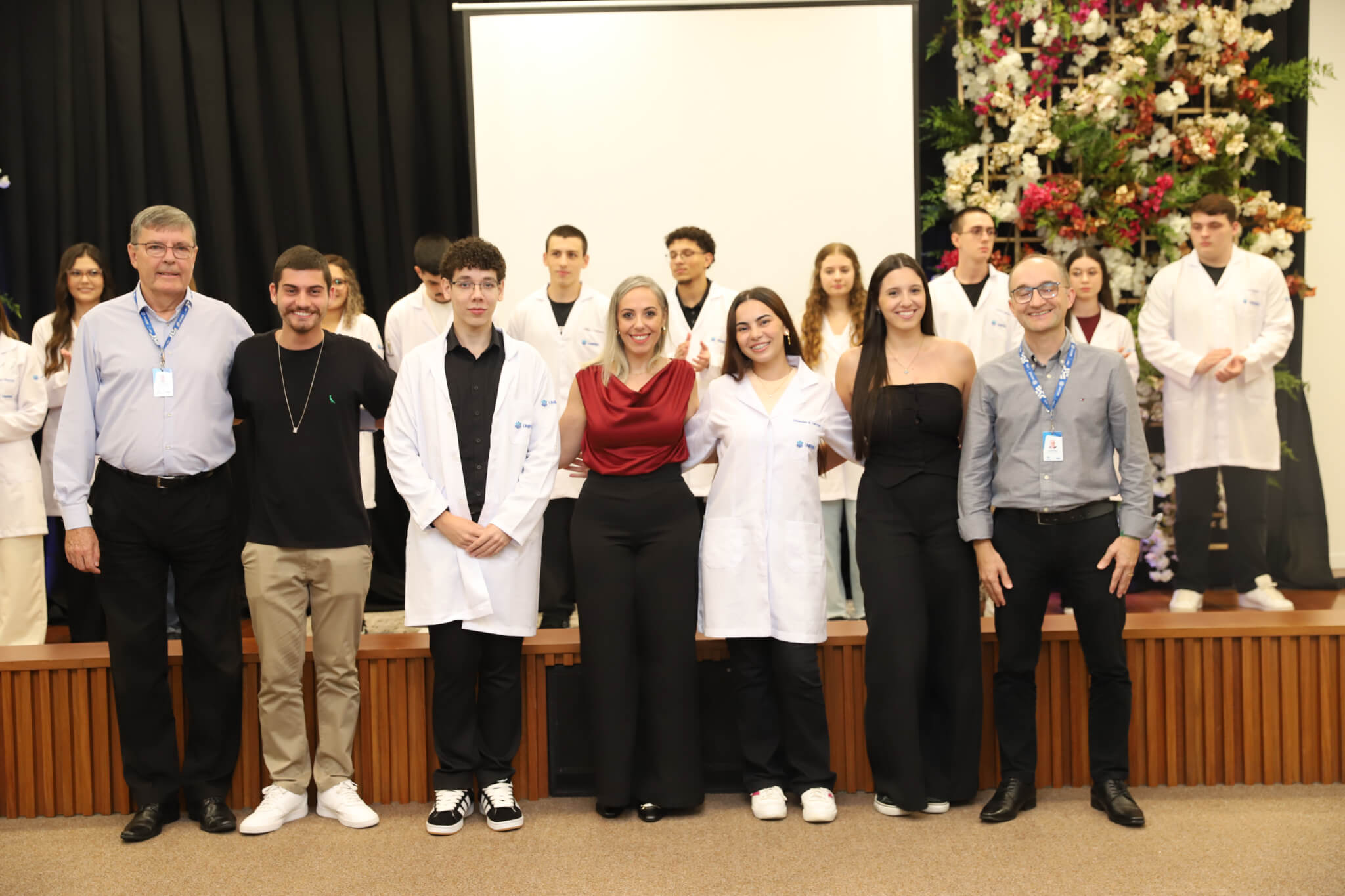 “É o início de uma jornada, e esperamos que ela possa contribuir muito com os calouros, não apenas profissionalmente, mas também pelo lado pessoal. […] Esse jaleco que eles receberam tem um peso real de responsabilidade. A partir de agora, eles começam a dar os primeiros passos nessa profissão, que é ser fisioterapeuta. Que eles aproveitem o curso, a faculdade. Eles têm inúmeras oportunidades”, declarou a coordenadora do curso, professora Leilane Marcos.