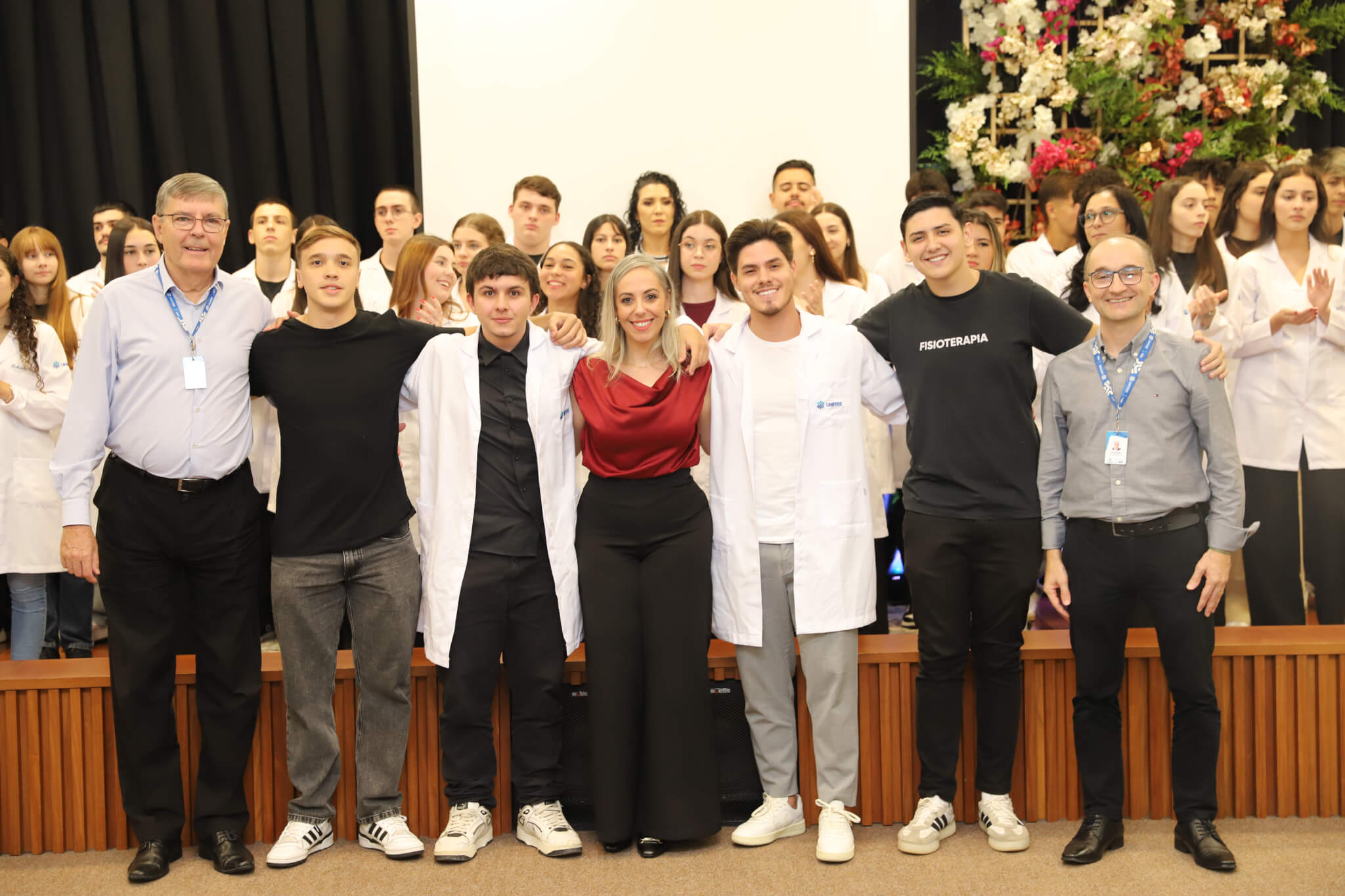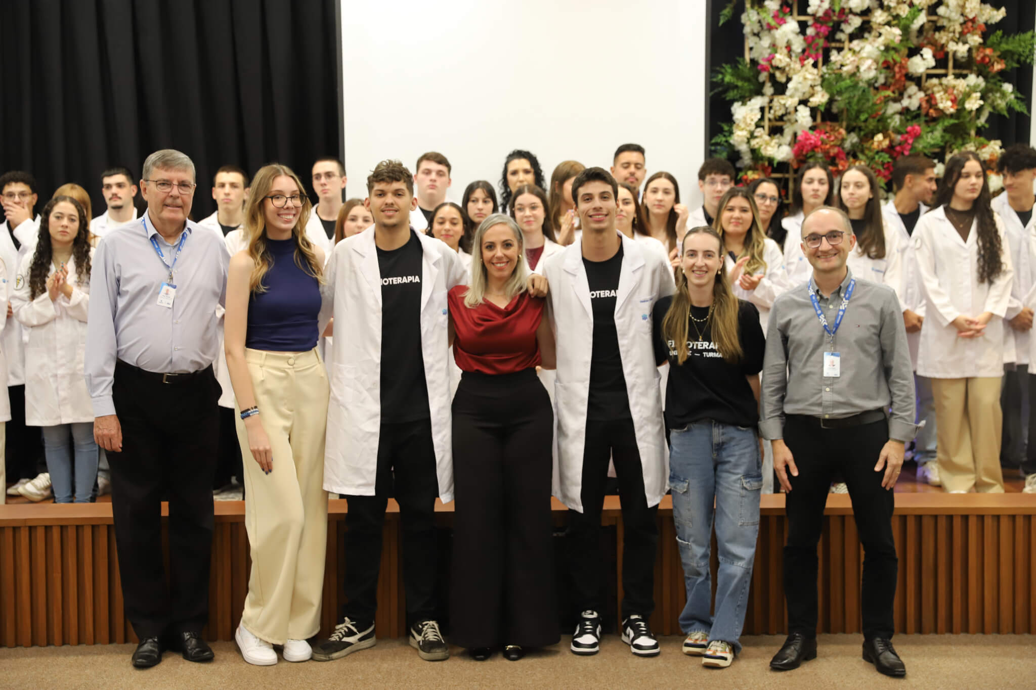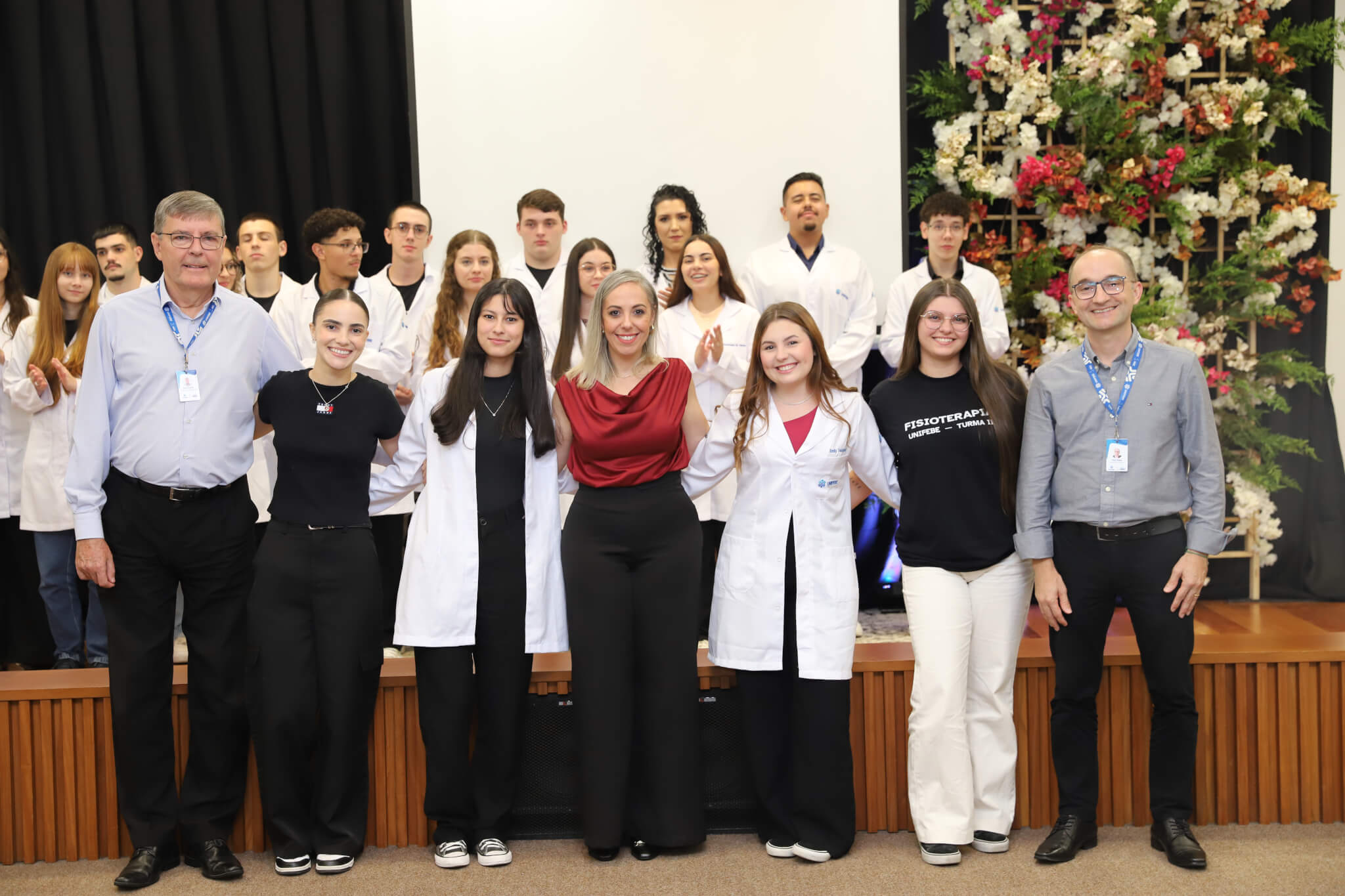 Os 57 calouros do curso de Fisioterapia da UNIFEBE participaram, nesta terça-feira, 1.º, da Cerimônia do Jaleco. Na presença de professores e da gestão superior da instituição, os estudantes da primeira fase receberam jalecos de seus veteranos, num ato que simboliza o início da jornada acadêmica na área da saúde. O evento foi finalizado com a aula magna da professora Flávia Roberta Rocha.