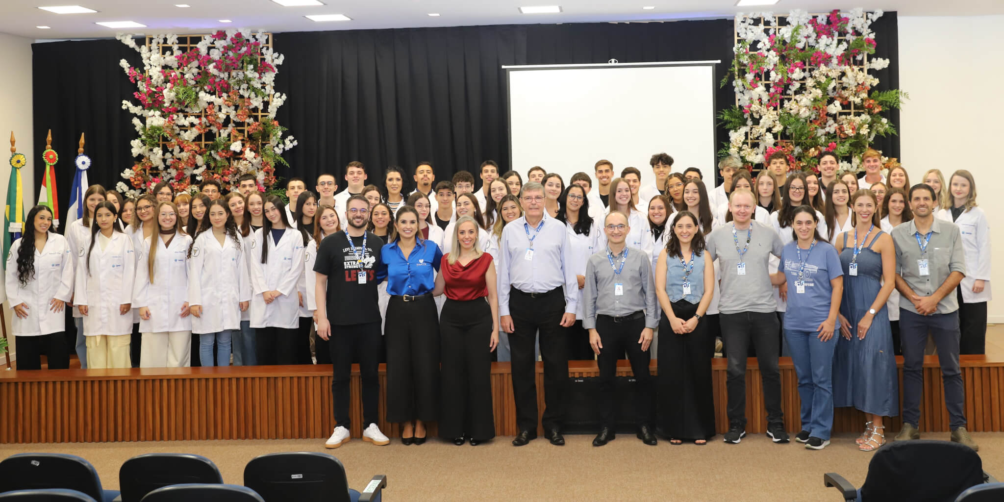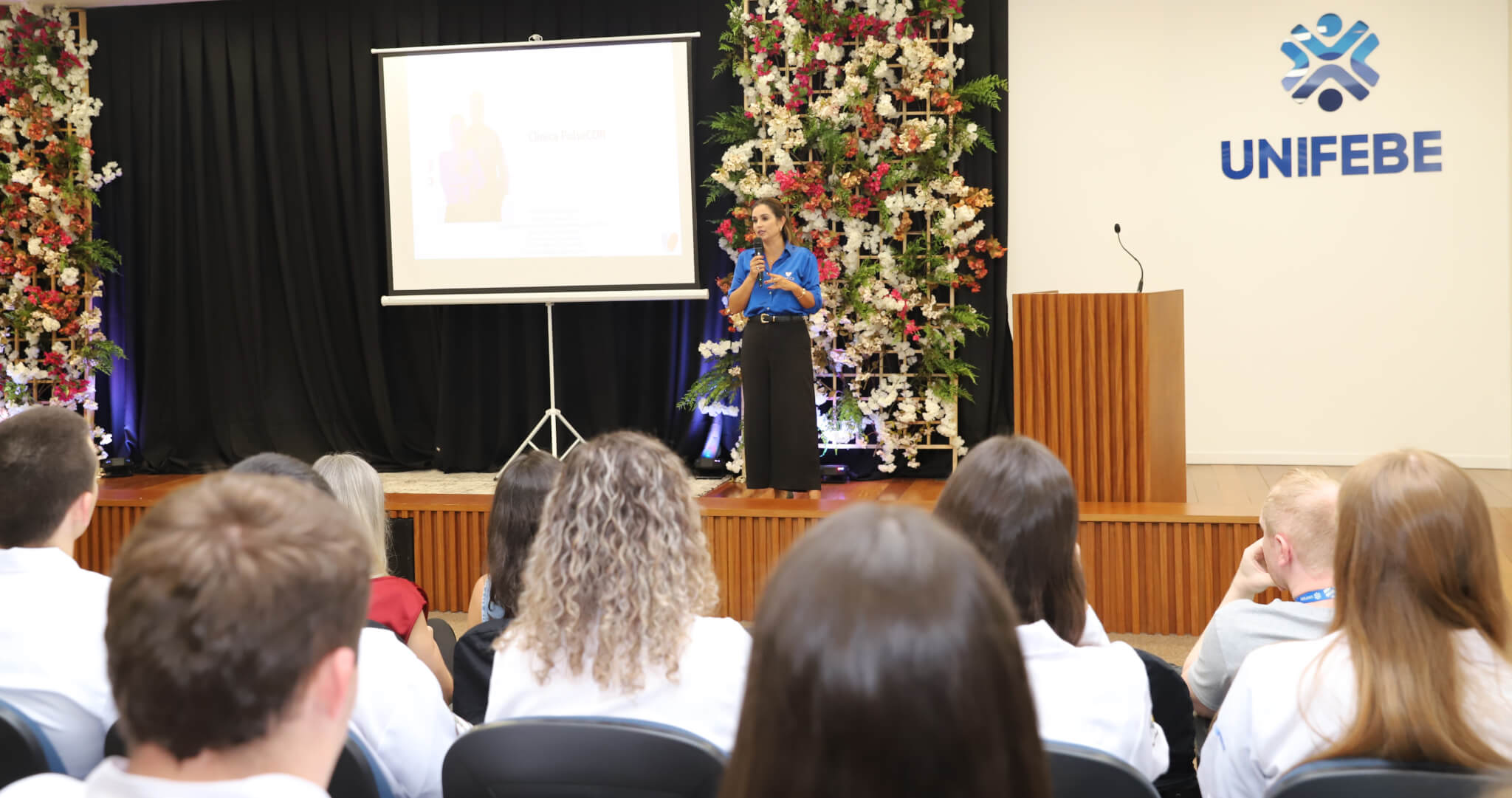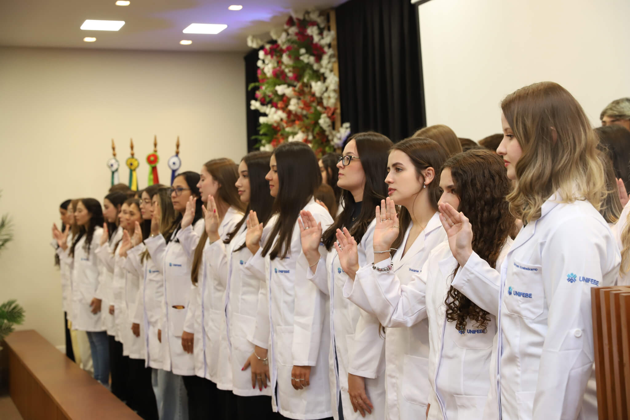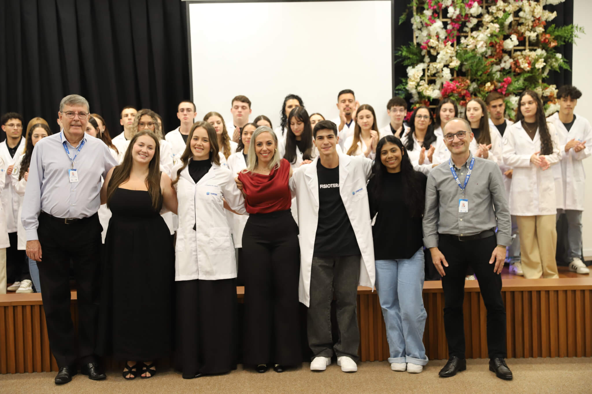 Os 57 calouros do curso de Fisioterapia da UNIFEBE participaram, nesta terça-feira, 1.º, da Cerimônia do Jaleco. Na presença de professores e da gestão superior da instituição, os estudantes da primeira fase receberam jalecos de seus veteranos, num ato que simboliza o início da jornada acadêmica na área da saúde. O evento foi finalizado com a aula magna da professora Flávia Roberta Rocha.