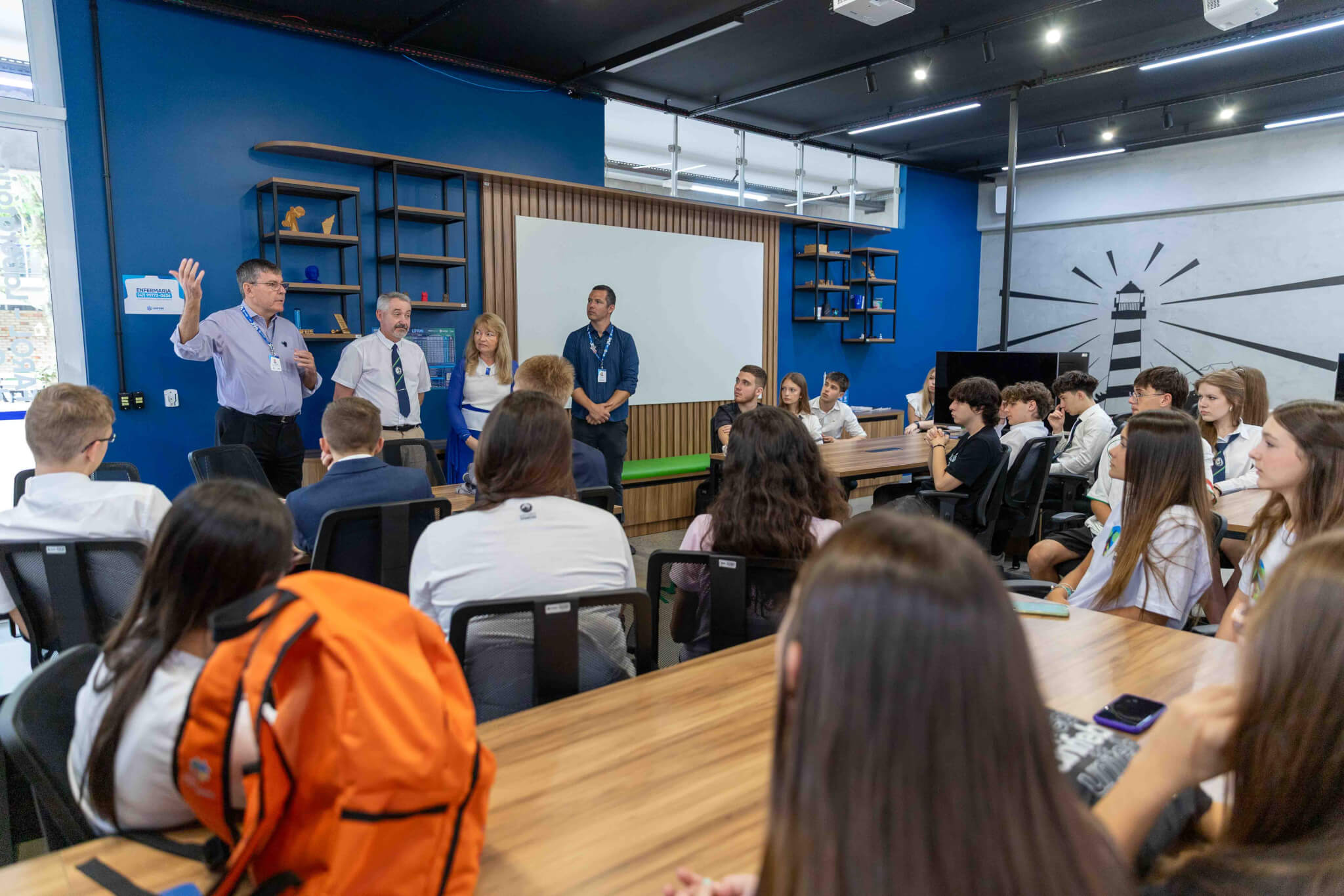A recepção incluiu também uma apresentação institucional e um café preparado para a comitiva. Os estudantes participaram de uma atividade de integração reunindo brasileiros e poloneses no Bloco G. Além dela, o cronograma também contou com momentos de interação com os estudantes do Colégio UNIFEBE.