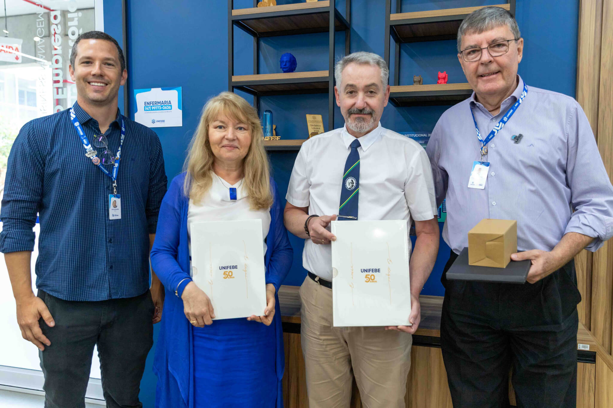 Um grupo formado por 15 estudantes poloneses do educandário Liceu Ruy Barbosa, de Varsóvia, pela professora de língua portuguesa Grażyna Misiorowska Rychlewska e pelo diretor Piotr Cacko foi recepcionado por representantes da UNIFEBE e do Colégio UNIFEBE no Laboratório Farol, no bloco C da instituição. Eles são a primeira comitiva polonesa a iniciar um programa de intercâmbio com o Colégio UNIFEBE. Durante o período no país, eles cumprem atividades nas cidades de Brusque, Balneário Camboriú, Florianópolis, além das cidades paranaenses de Curitiba, onde cumprem agenda com representantes da Embaixada da Polônia no Brasil, e São José dos Pinhais.