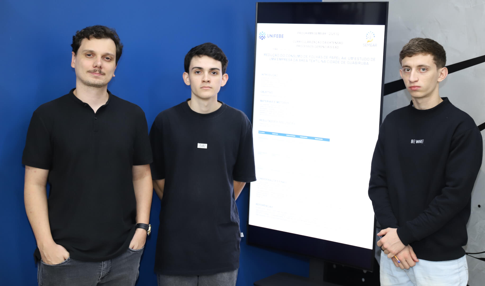 Os trabalhos foram avaliados pelo coordenador do Curso de Tecnologia Educacional da UNIFEBE, Luís Fernando Merízio; e por dois convidados: empresário Bruno Egas Zaninotto, do Grupo Uvel; e o empresário Alcir Otto, da rede Otto Atacarejo.