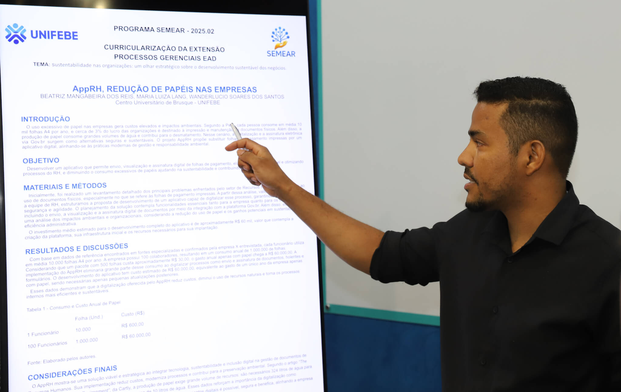 “Como coordenador do curso de Processos Gerenciais EAD, é uma satisfação enorme ver nossos acadêmicos propondo soluções tão consistentes e viáveis para os desafios de sustentabilidade das empresas de Brusque e da região. Em apenas uma semana, eles uniram teoria, pesquisa de campo e compromisso com o meio ambiente, demonstrando, na prática, a qualidade da formação que recebem na UNIFEBE. A dedicação das equipes, o apoio da professora Danielle e o olhar cuidadoso da comissão julgadora tornam o Congresso SEMEAR um marco importante na trajetória acadêmica dos nossos estudantes e reforçam nosso compromisso com a inovação e a responsabilidade socioambiental.”