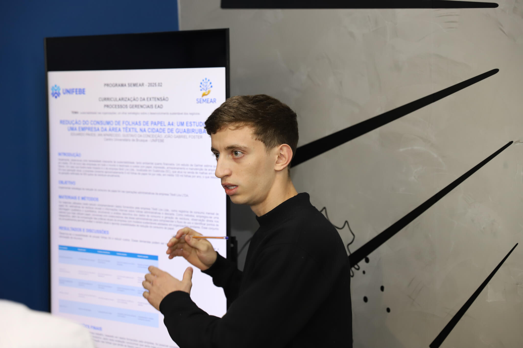 “Os trabalhos tiveram uma qualidade excepcional. Quando conversamos com os alunos e explicamos que desenvolveríamos esse formato, eles ficaram um pouco apreensivos em relação ao prazo. No entanto, oferecemos todo o suporte necessário. Realizamos várias reuniões ao longo da semana para que eles conseguissem produzir o que apresentaram hoje. A UNIFEBE sempre preza pelo processo de iniciação científica, incentivando os alunos na produção de ciência com metodologia.”