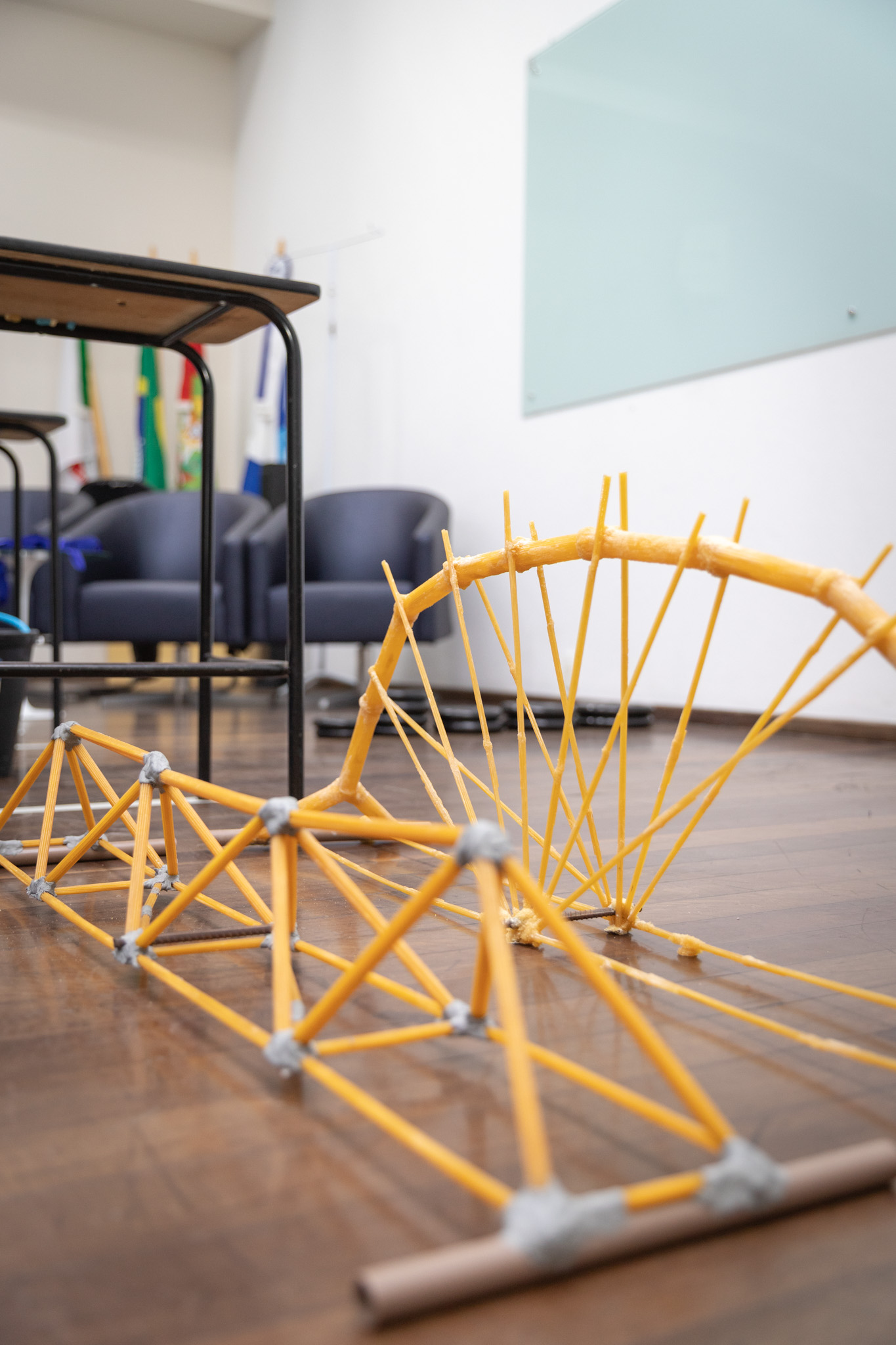 Ela lembra que, antes do macarrão, palitos haviam sido usados em um desafio de construção de uma ponte. Nele, os 400 gramas de massa da estrutura conseguiram suportar 60 quilogramas. “A Ponte de Macarrão, por sua vez, tem uma estrutura bem mais complexa. Principalmente, devido à fragilidade dos macarrões, que devem ser conservados em lugares fechados para evitar a umidade, algo que compromete a sua resistência”, detalha.