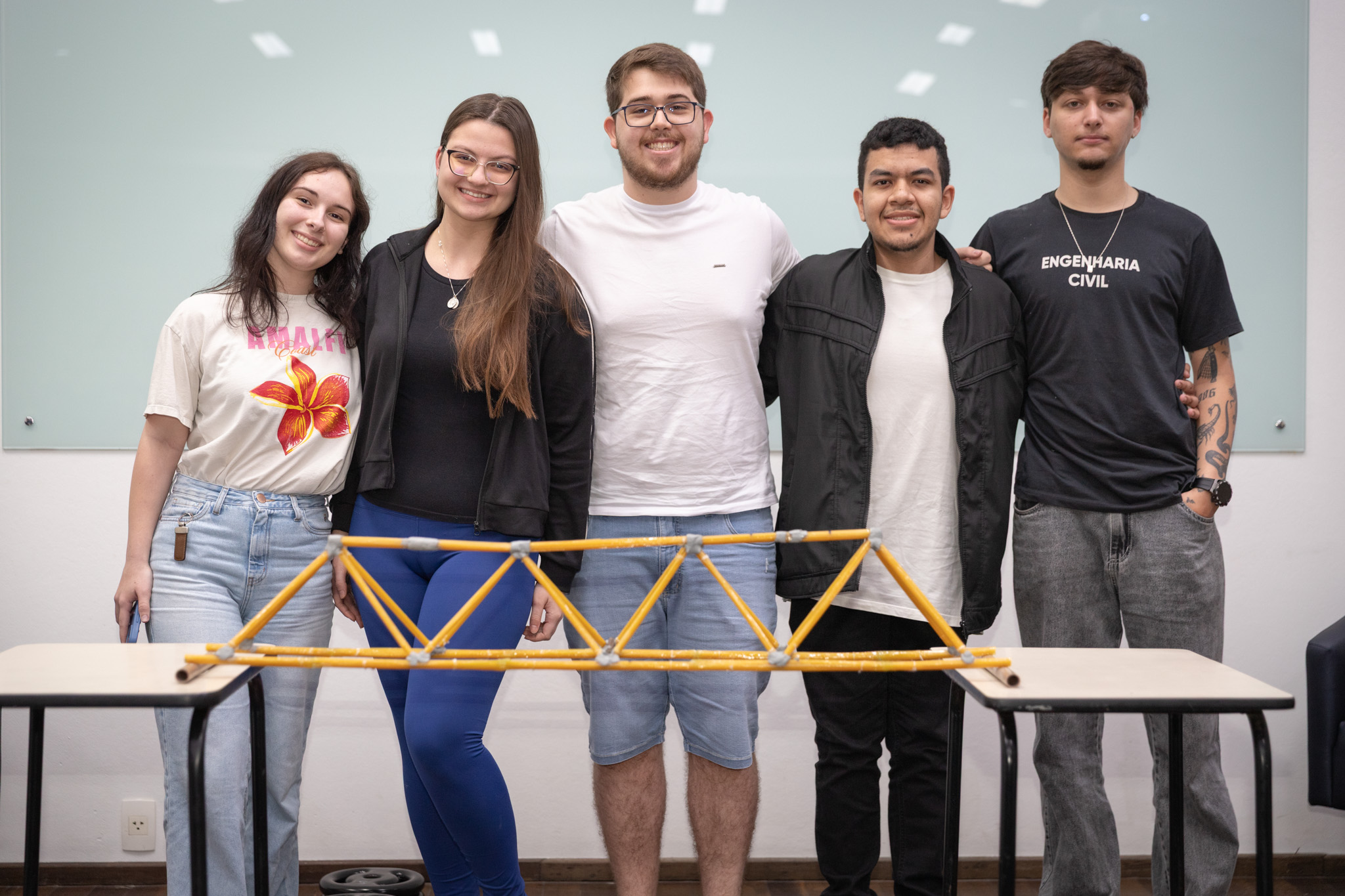 Segundo ela, a participação no desafio colaborou com a aplicação prática daquilo que já haviam projetado no papel. “Assim conseguimos visualizar a utilidade dos cálculos de treliças vistos frequentemente durante as aulas”, resume.
