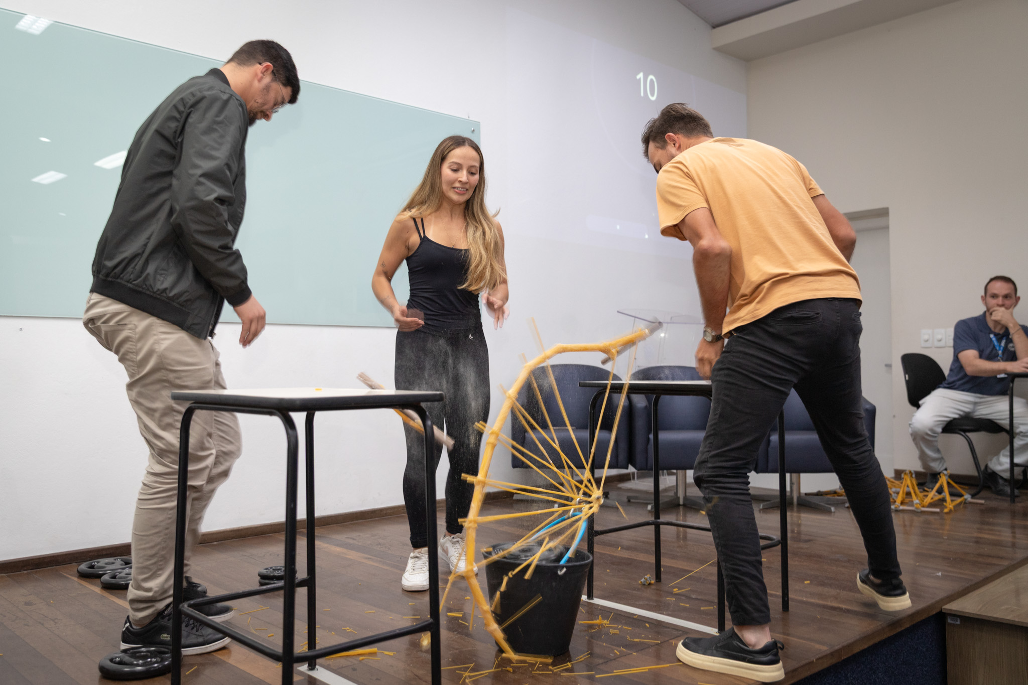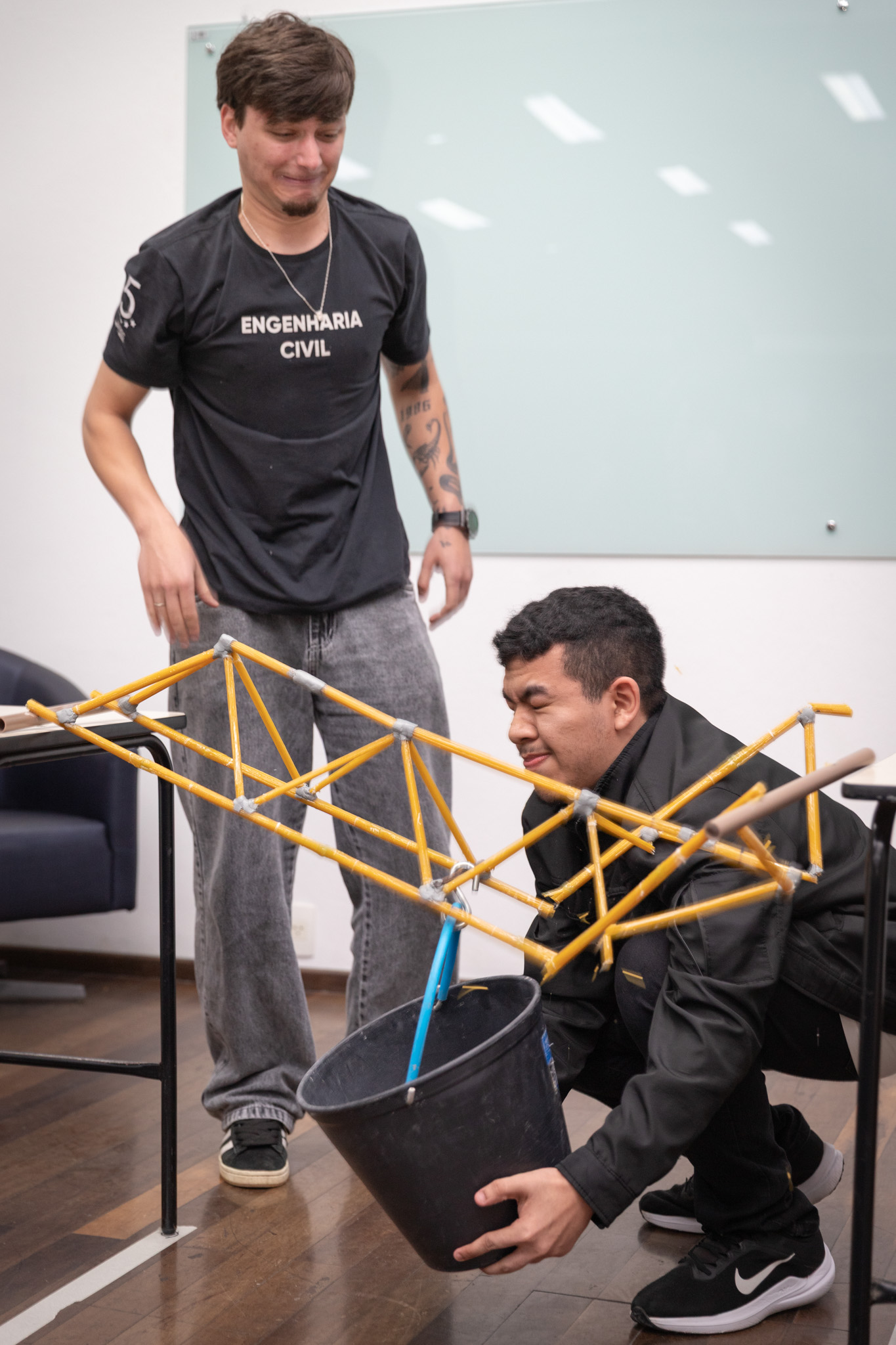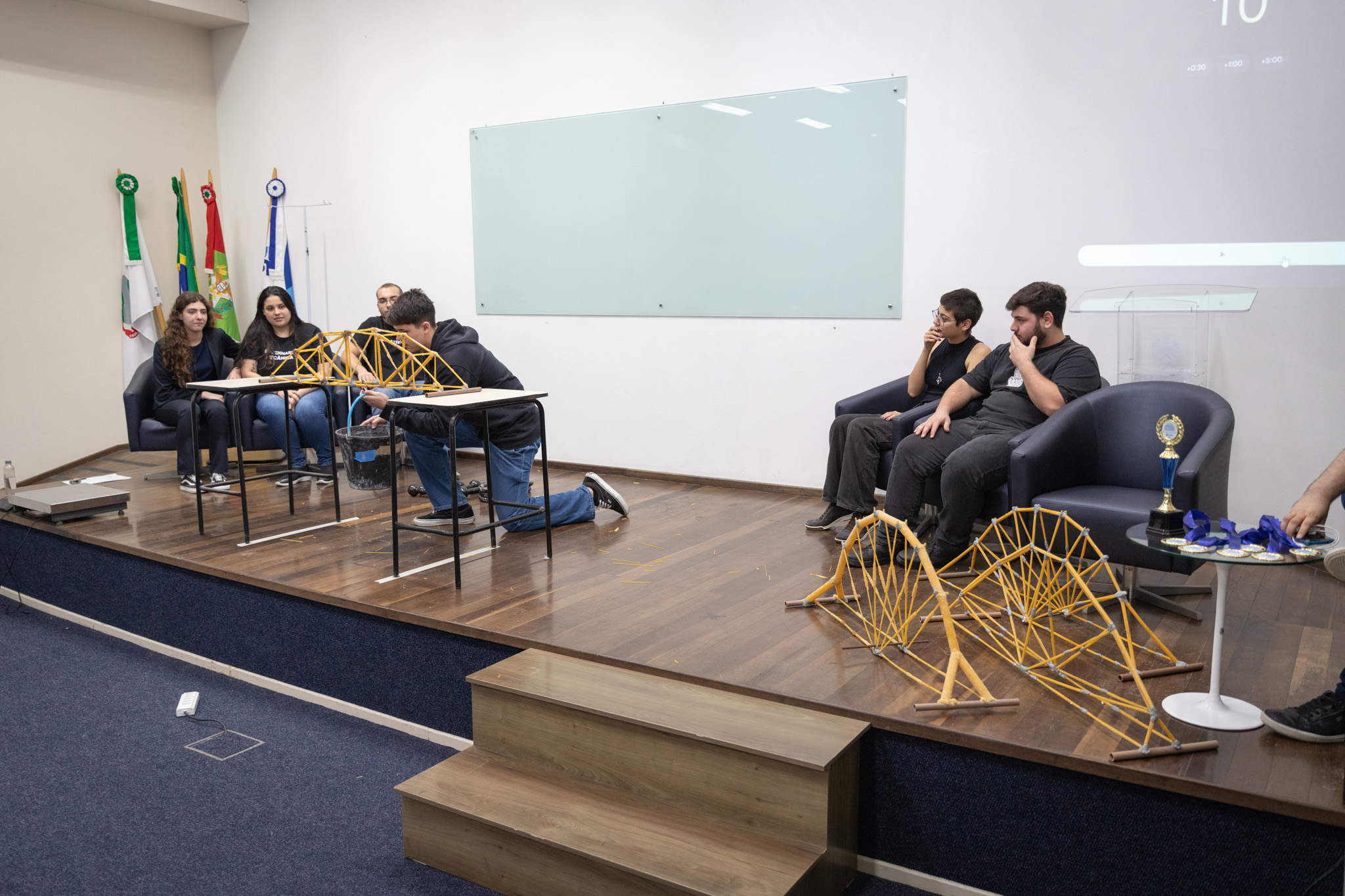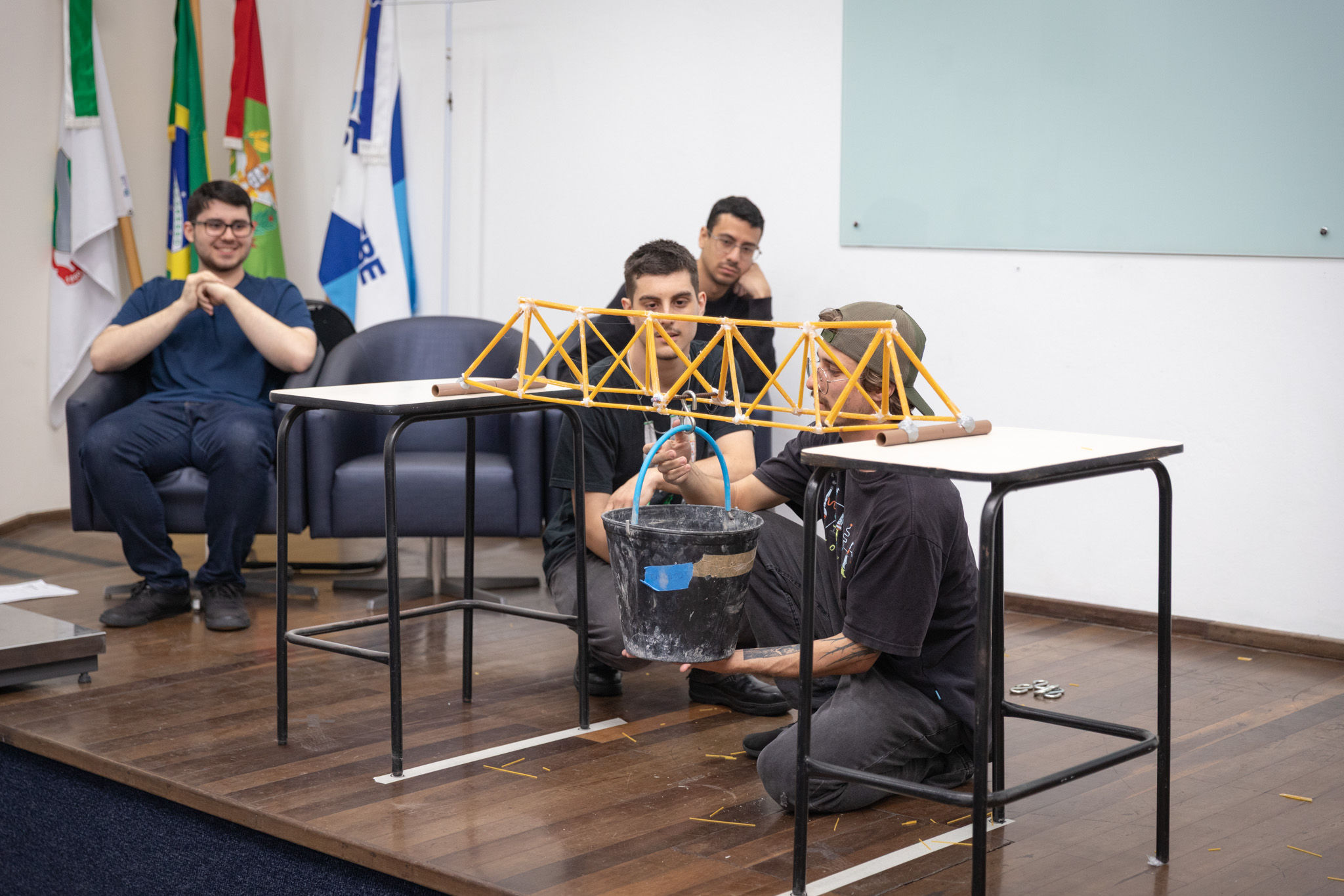 Segundo o professor Andrei Buse, do componente curricular de Física II, o respeito às especificações técnicas para o desafio foi uma das marcas desta edição. Para serem habilitados ao desafio, as equipes precisam atender a características prévias, como o material utilizado, as medidas mínimas e máximas e a massa total da estrutura.