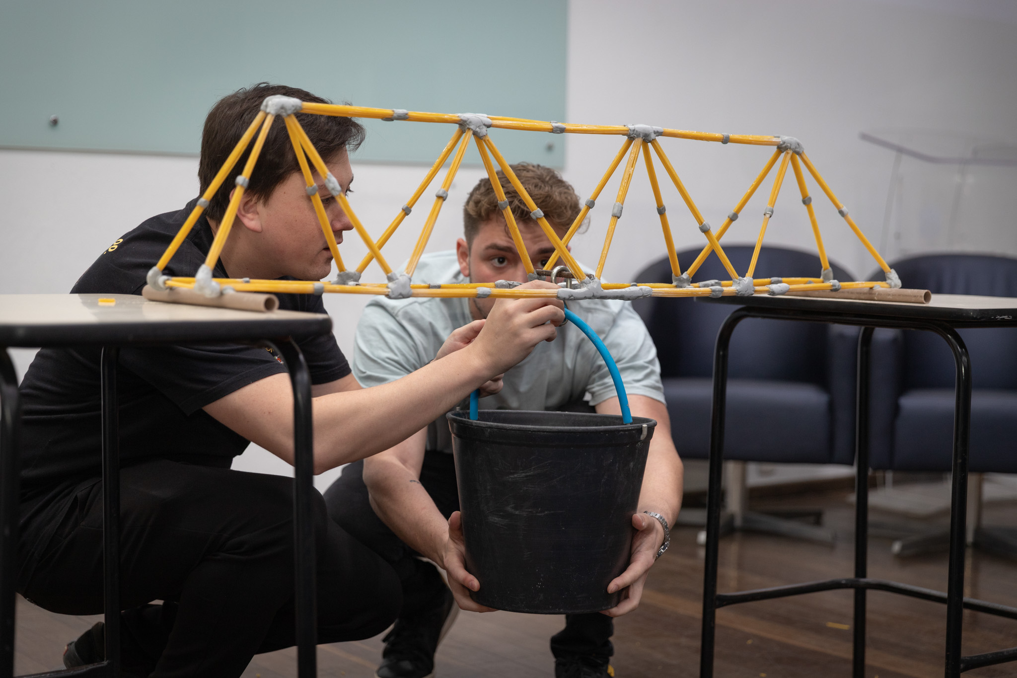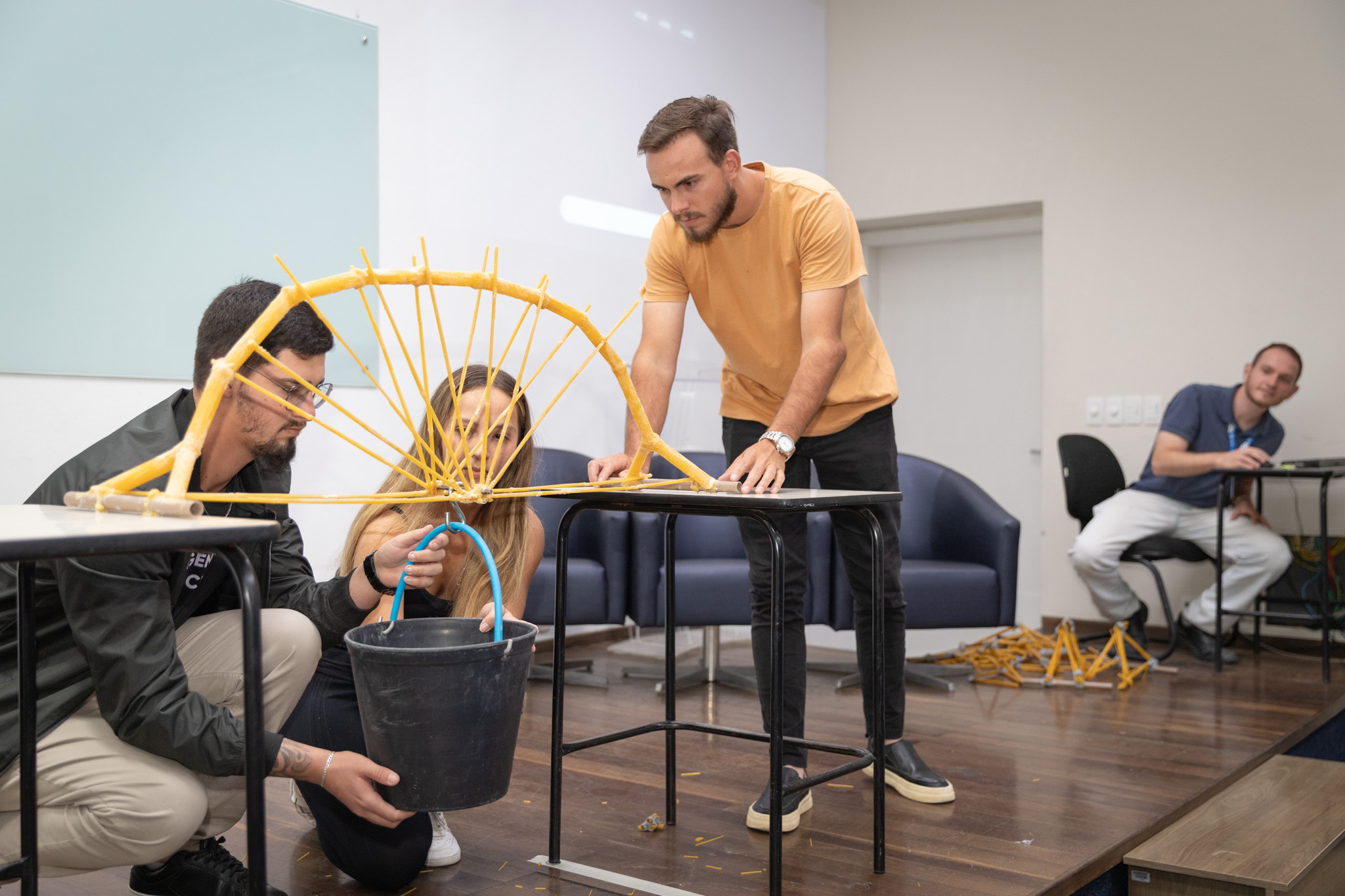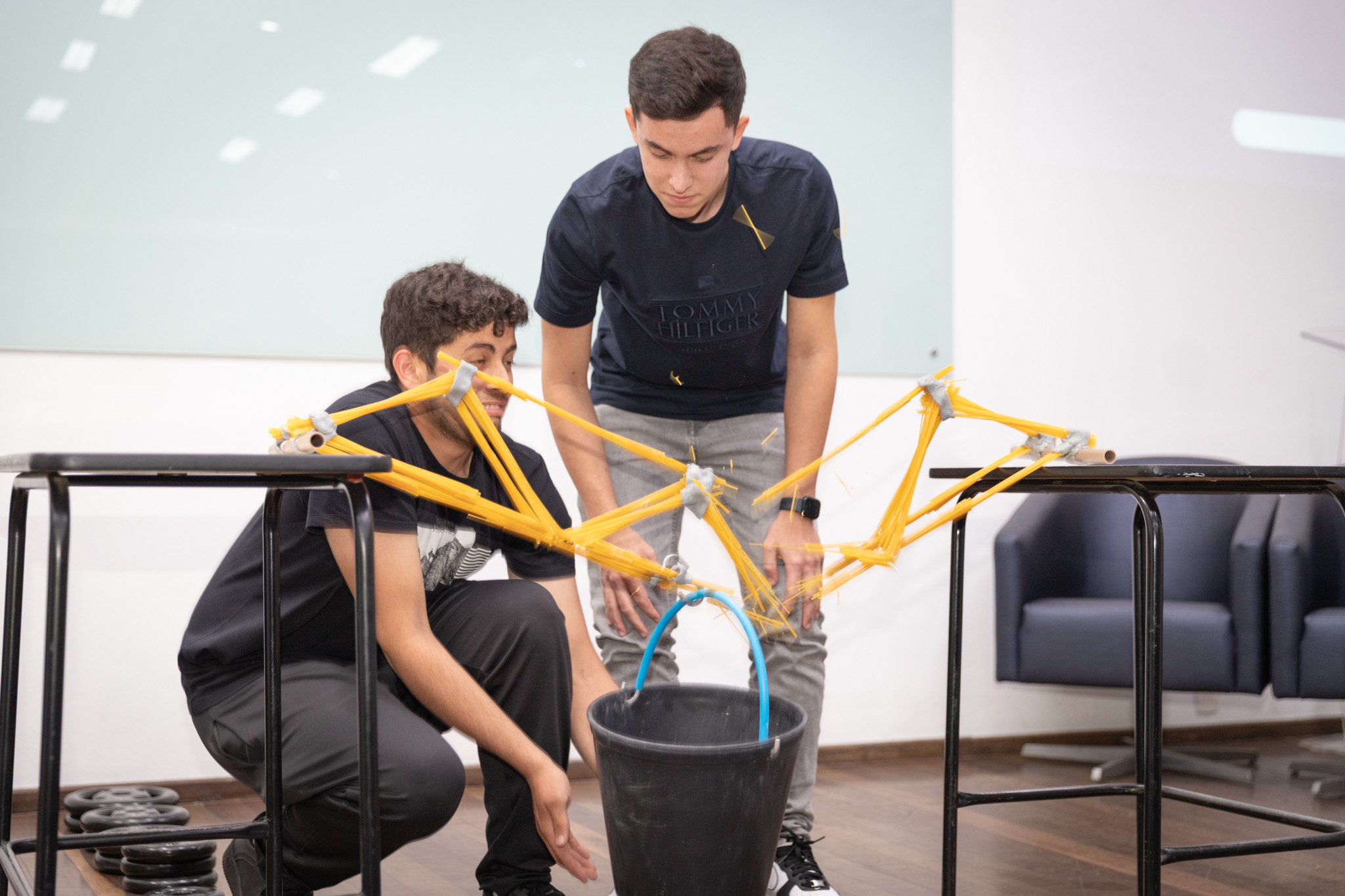 Viga Espaguete – 3º Lugar: suportou 7 kg + balde + gancho