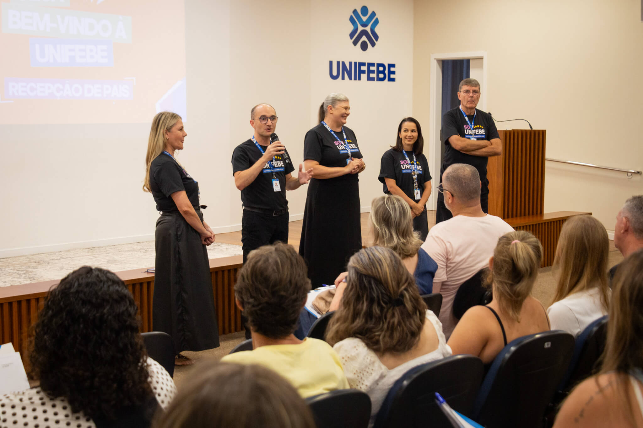 Os calouros também participaram de um momento de integração com a reitora da UNIFEBE e presidente da Febe, professora Rosemari Glatz, o vice-reitor da UNIFEBE e vice-presidente da Febe, o professor Sergio Rubens Fantini; pró-reitor de Graduação, professor Sidnei Gripa; a pró-reitora de Pós-Graduação, Pesquisa, Extensão e Cultura, professora Edinéia Pereira da Silva e com a assessora da Pró-Reitoria de Pós-Graduação, Pesquisa, Extensão e Cultura, professora Eliane Kormann. As apresentações detalharam os diferentes setores e serviços mantidos pela instituição, assim como a apresentação dos coordenadores de curso.