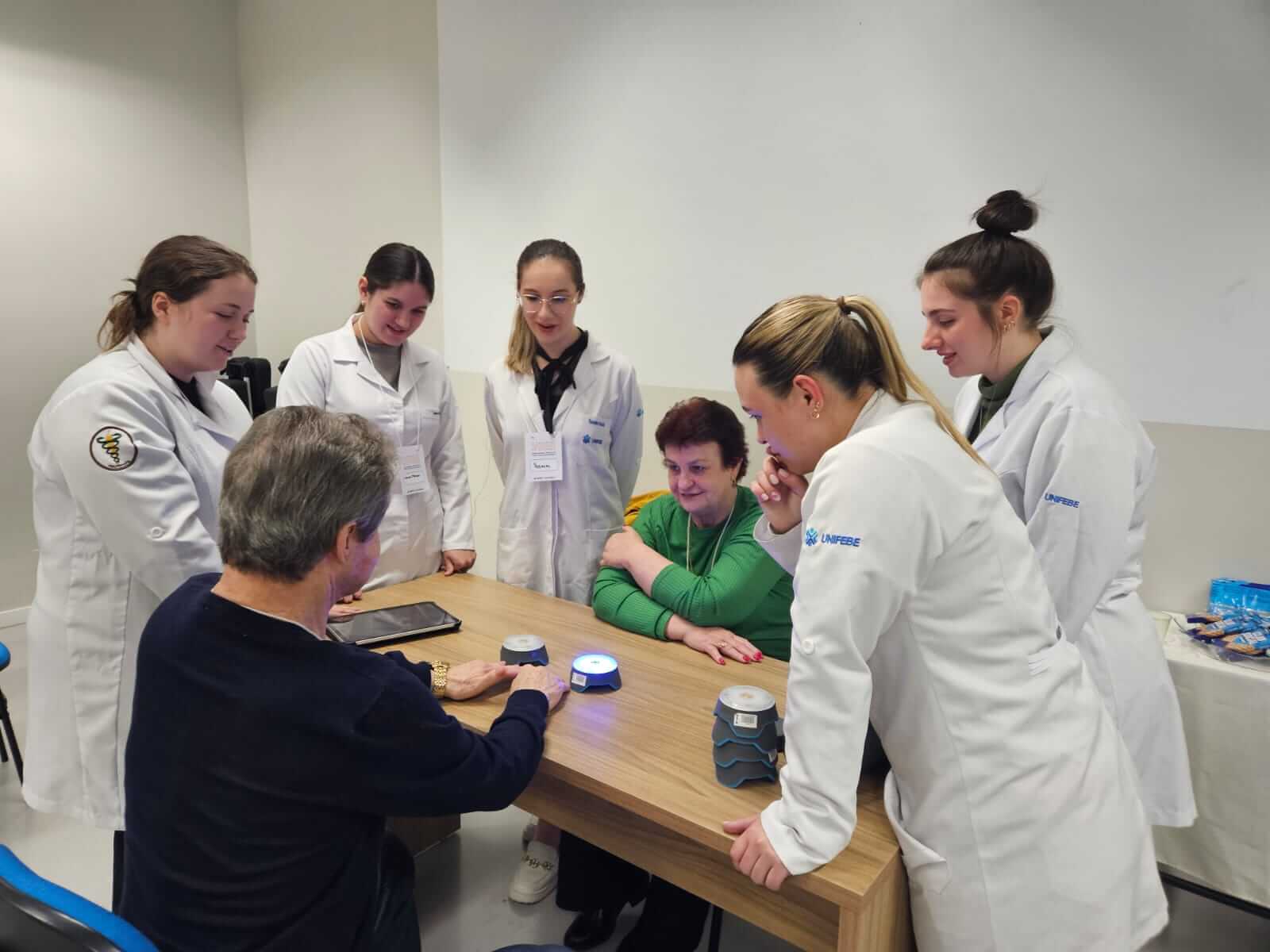 “Considero que essa vivência foi muito significativa para a minha formação, pois foi a primeira vez que tive contato direto com pacientes com Parkinson. A experiência proporcionou uma aproximação com a prática clínica, algo essencial para consolidar os conhecimentos teóricos adquiridos em sala de aula”, explica a acadêmica Daynara Zunino.