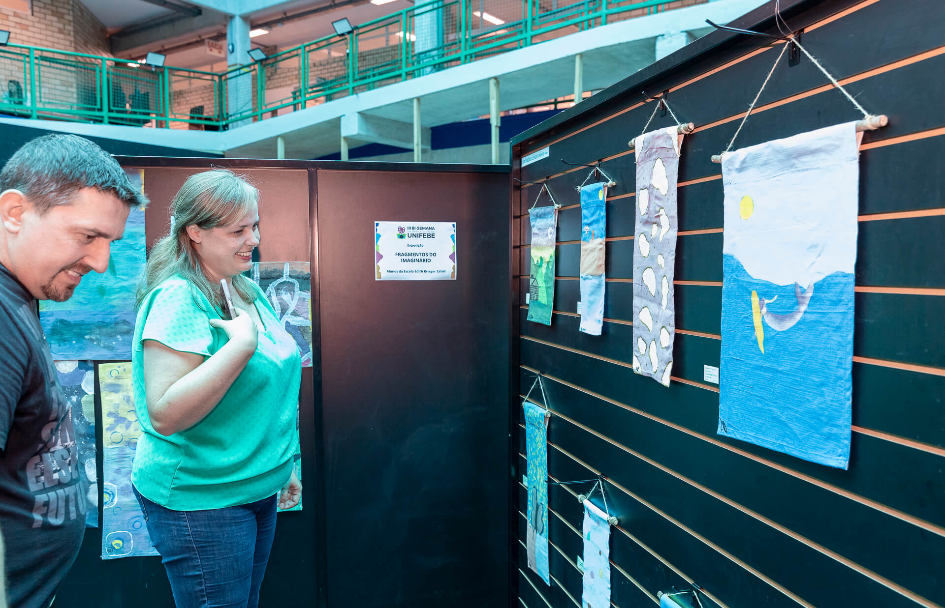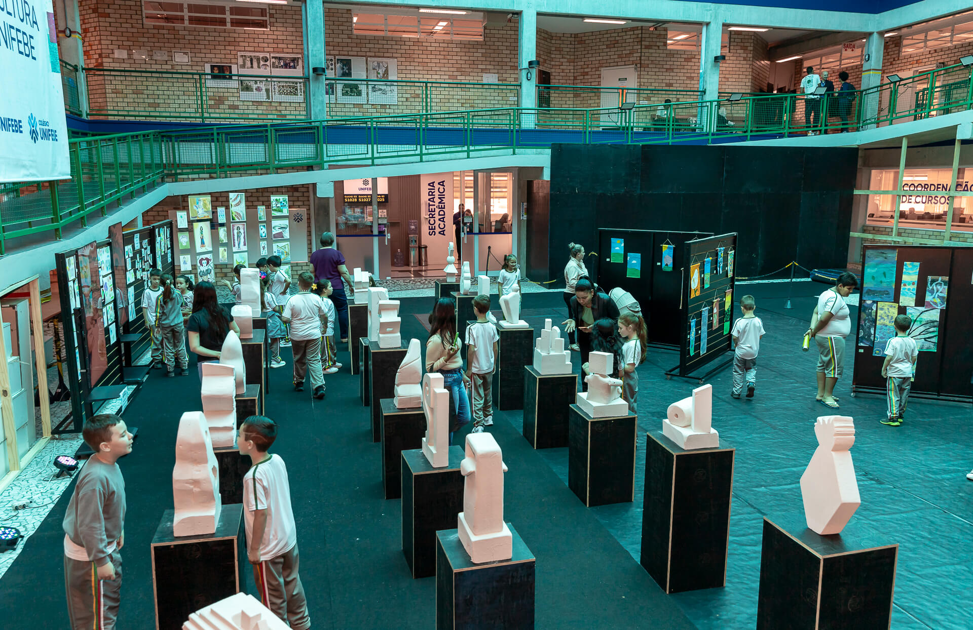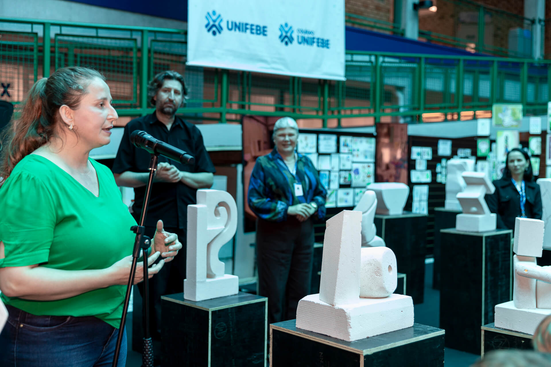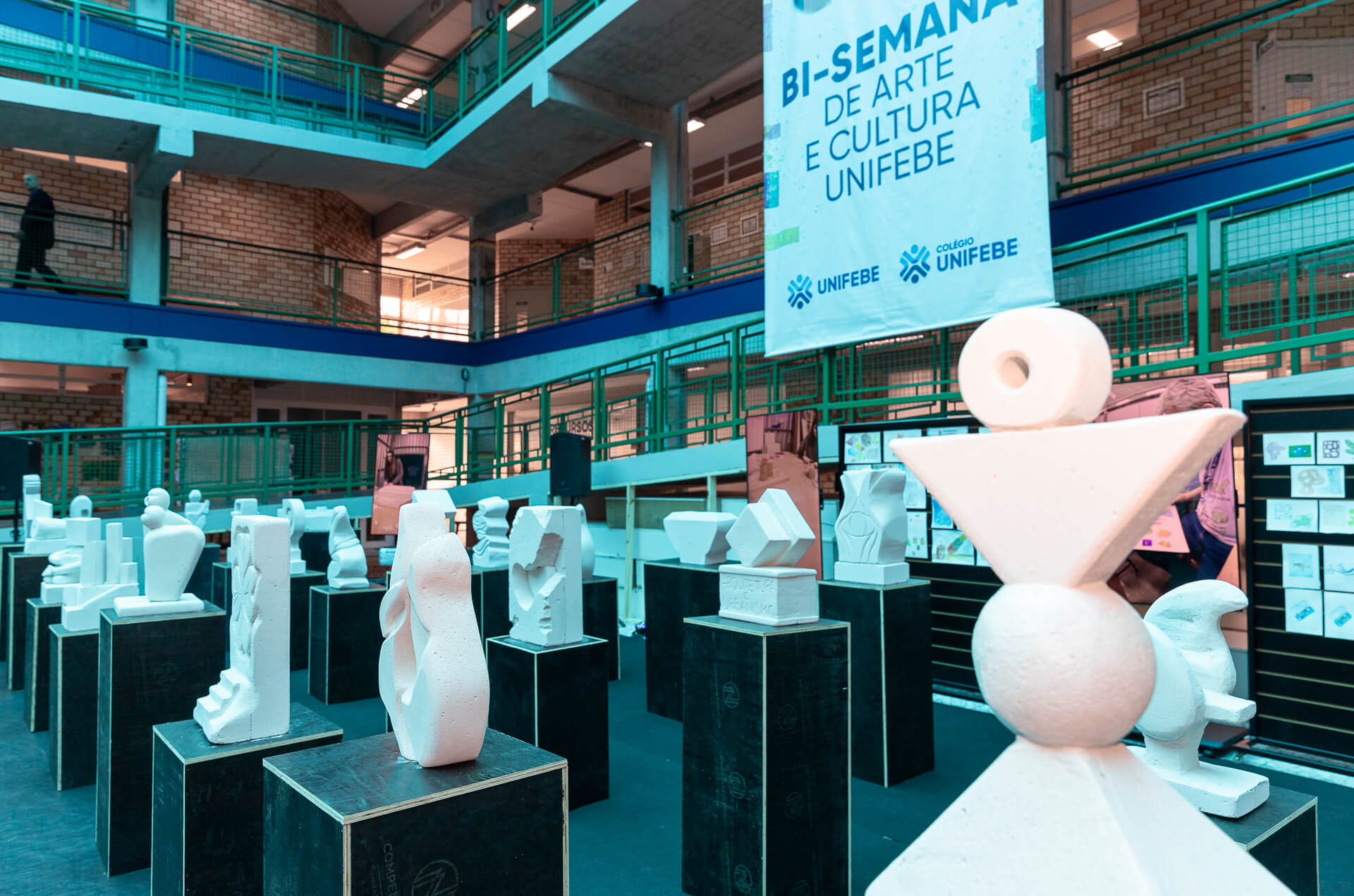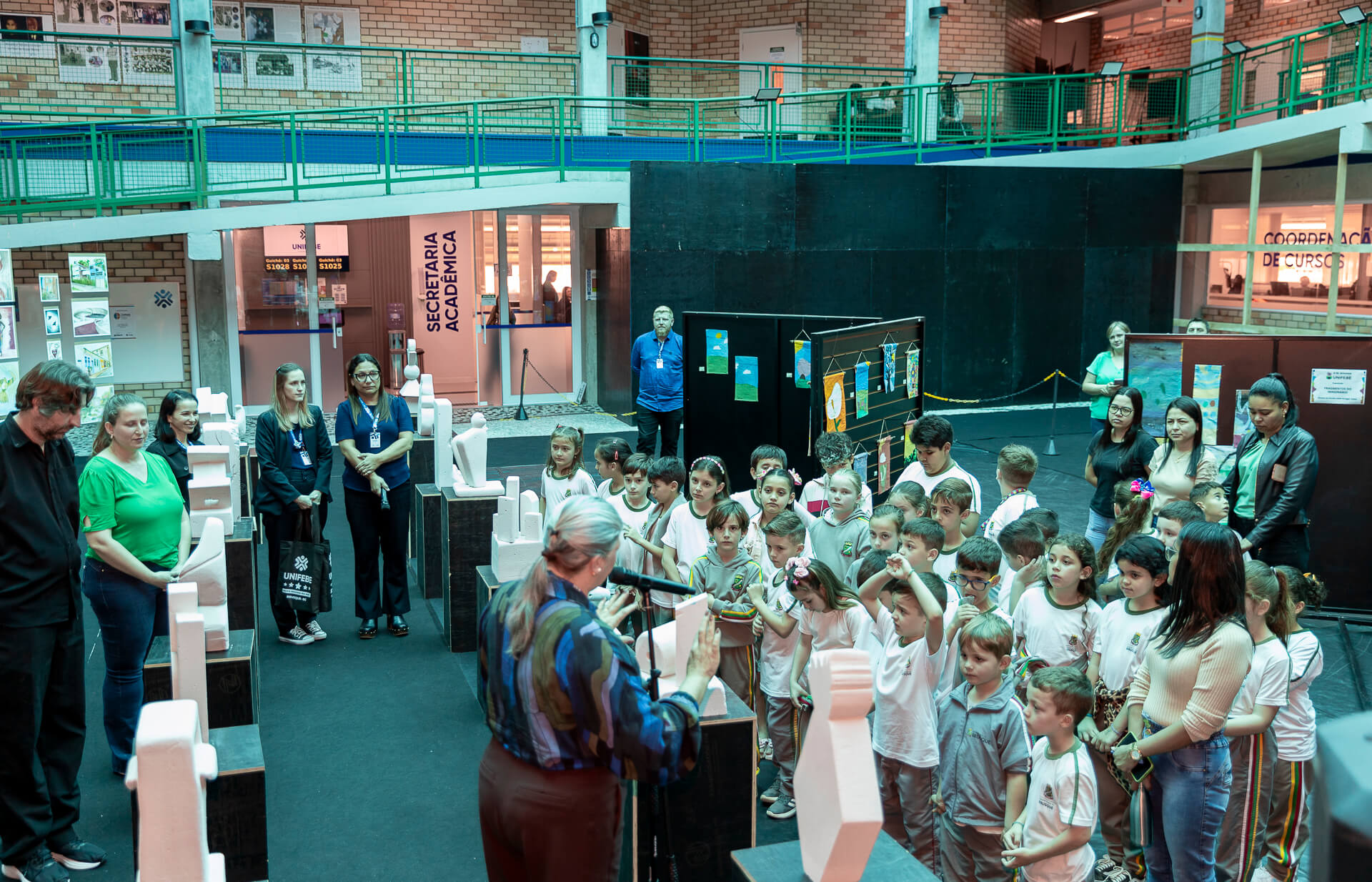 Quem também passou pelo átrio do Bloco A pode conferir as esculturas feitas pelos acadêmicos de Arquitetura e Urbanismo apresentadas na exposição “Arte Moderna”. No local, os vídeos produzidos pelos estudantes de Publicidade e Propaganda, no projeto Cine PP, integraram a exposição virtual do evento, além de um convite à ludicidade com a exposição dos jogos educativos com foco em Cultura Oceânica, desenvolvidos pelas acadêmicas dos cursos de Pedagogia e Educação Especial.