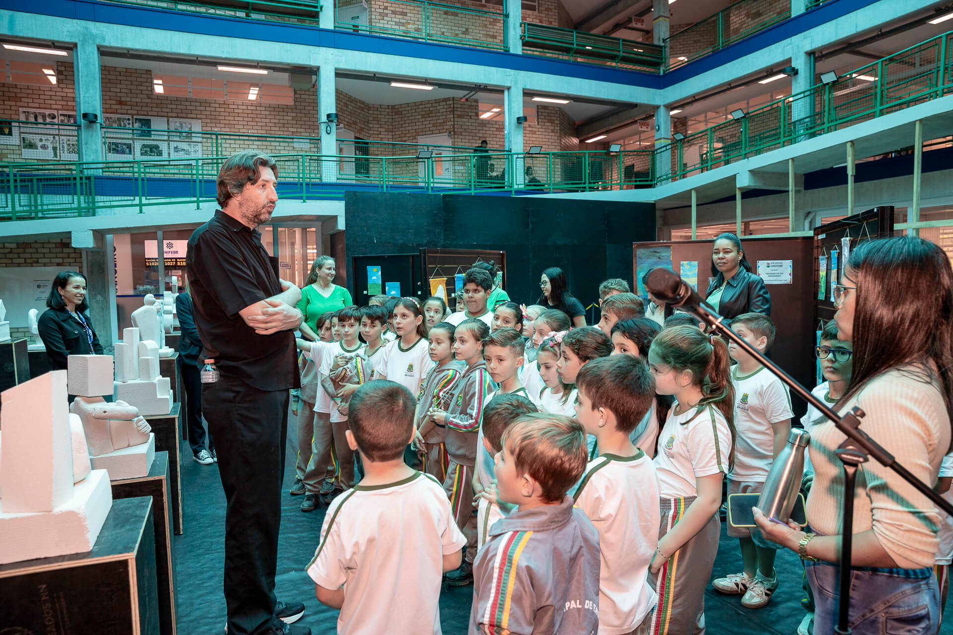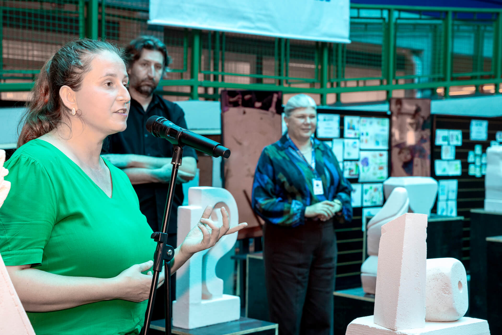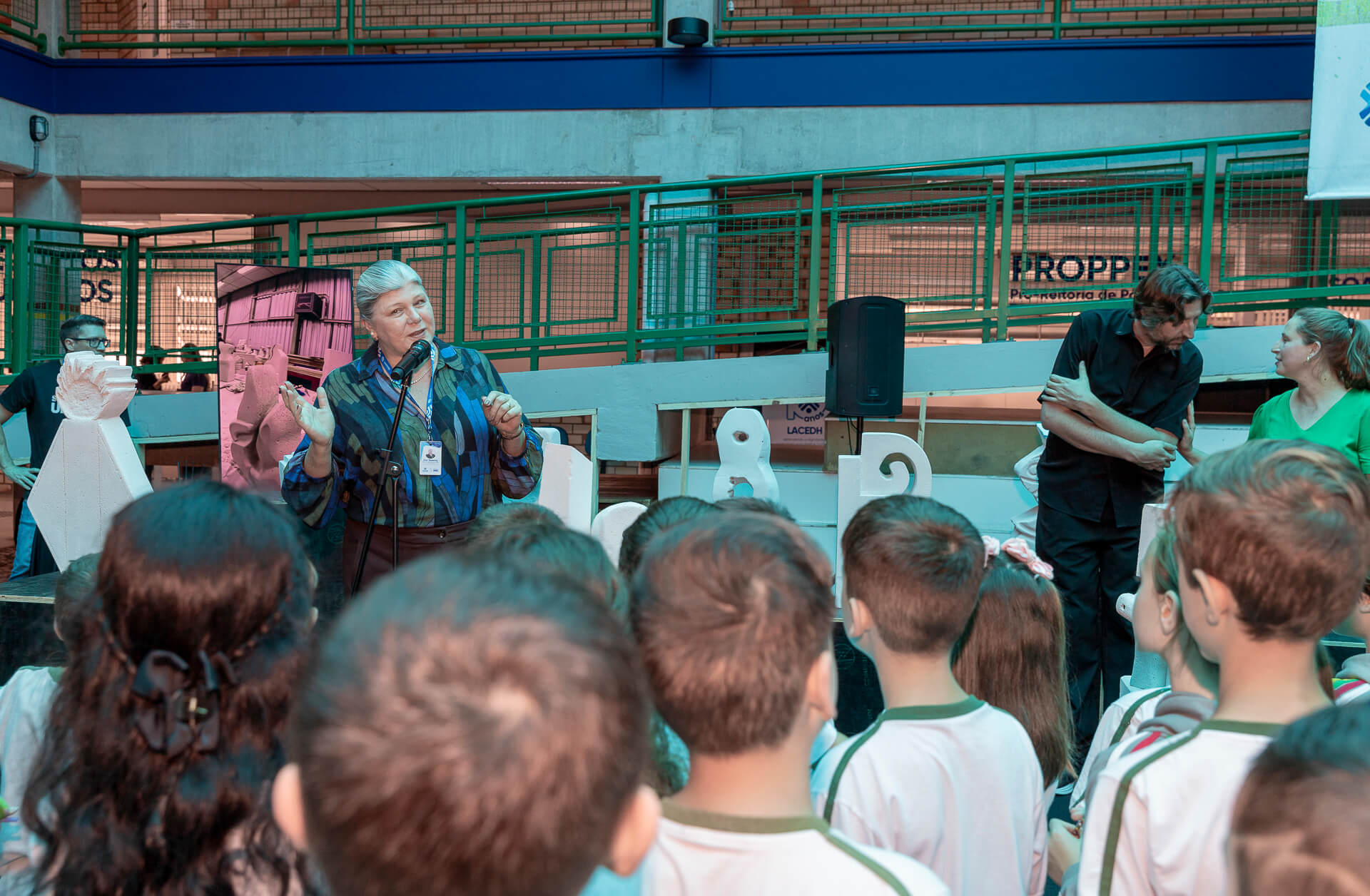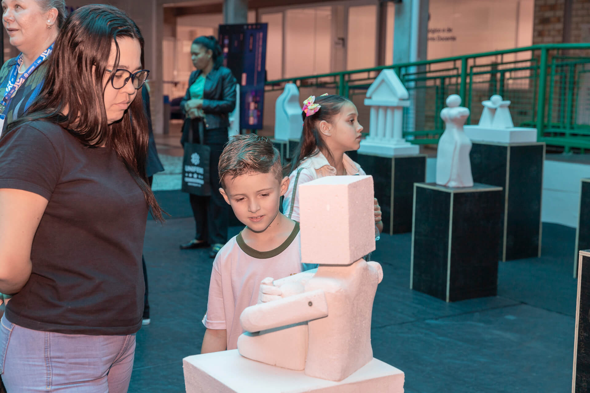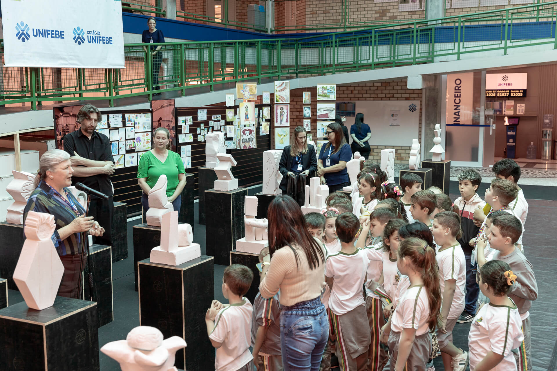 Quem também passou pelo átrio do Bloco A pode conferir as esculturas feitas pelos acadêmicos de Arquitetura e Urbanismo apresentadas na exposição “Arte Moderna”. No local, os vídeos produzidos pelos estudantes de Publicidade e Propaganda, no projeto Cine PP, integraram a exposição virtual do evento, além de um convite à ludicidade com a exposição dos jogos educativos com foco em Cultura Oceânica, desenvolvidos pelas acadêmicas dos cursos de Pedagogia e Educação Especial.