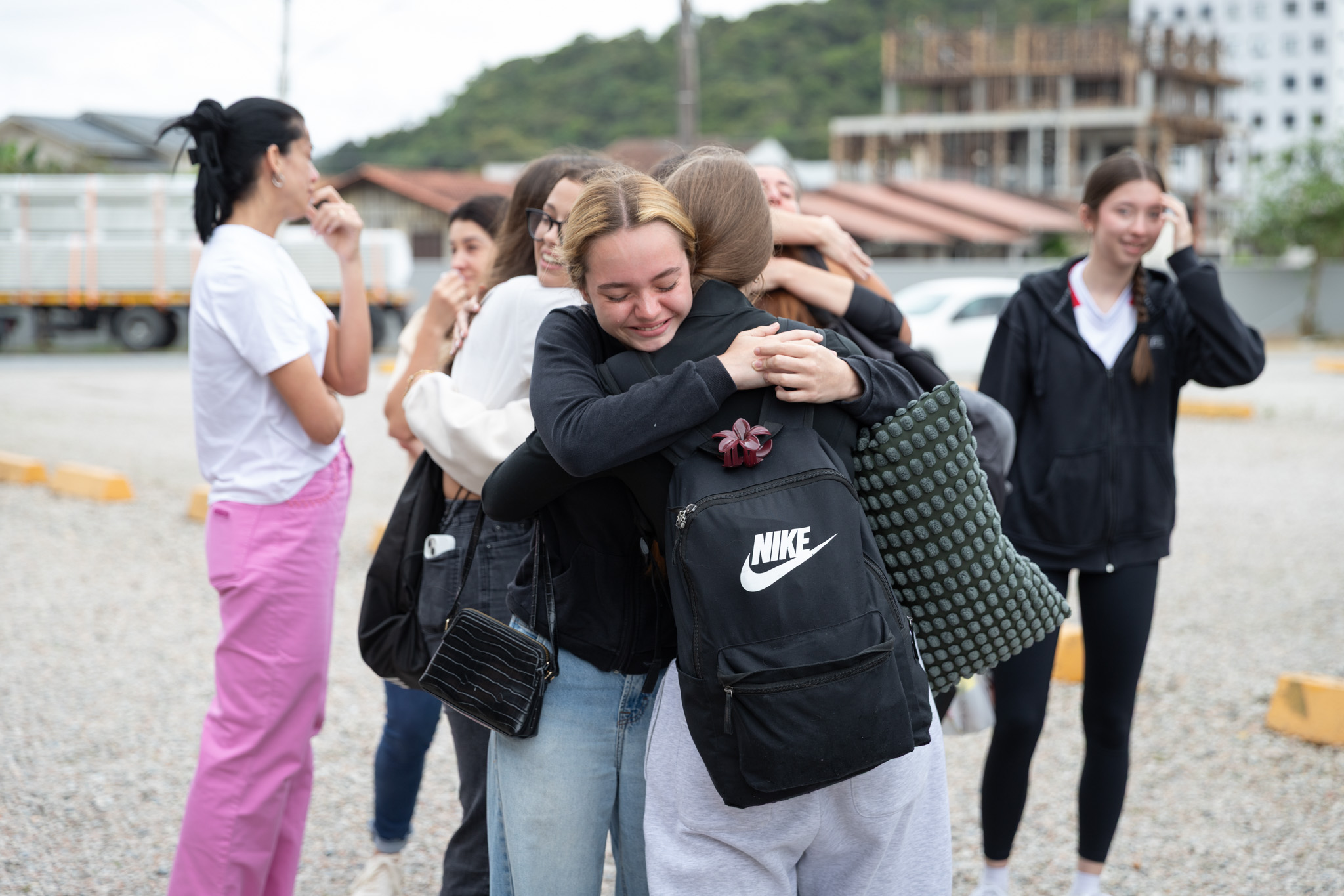 A comunidade escolar do Colégio UNIFEBE se despediu da comitiva alemã participante da segunda etapa do intercâmbio cultural Brasil-Alemanha, realizado entre estudantes brusquenses e da região do distrito alemão de Karlsruhe. Nesta edição, a parceria que envolve a Prefeitura de Brusque e o Distrito de Karlsruhe envolveu 12 estudantes de cada um dos países e incluiu no programa jovens e professores de escolas públicas e privadas.