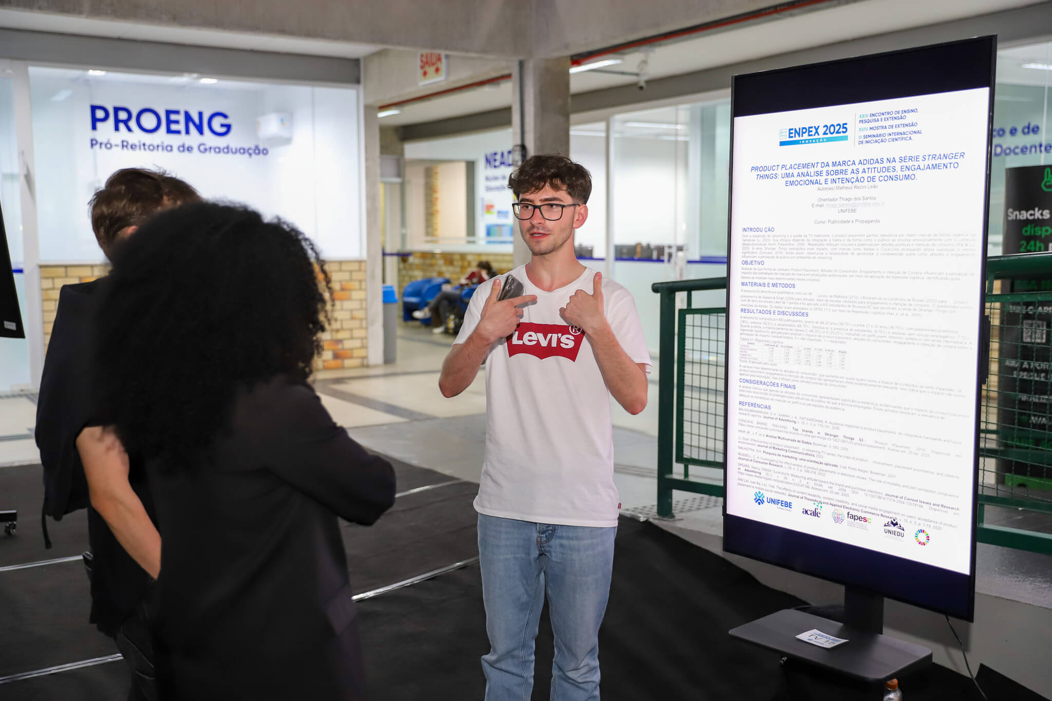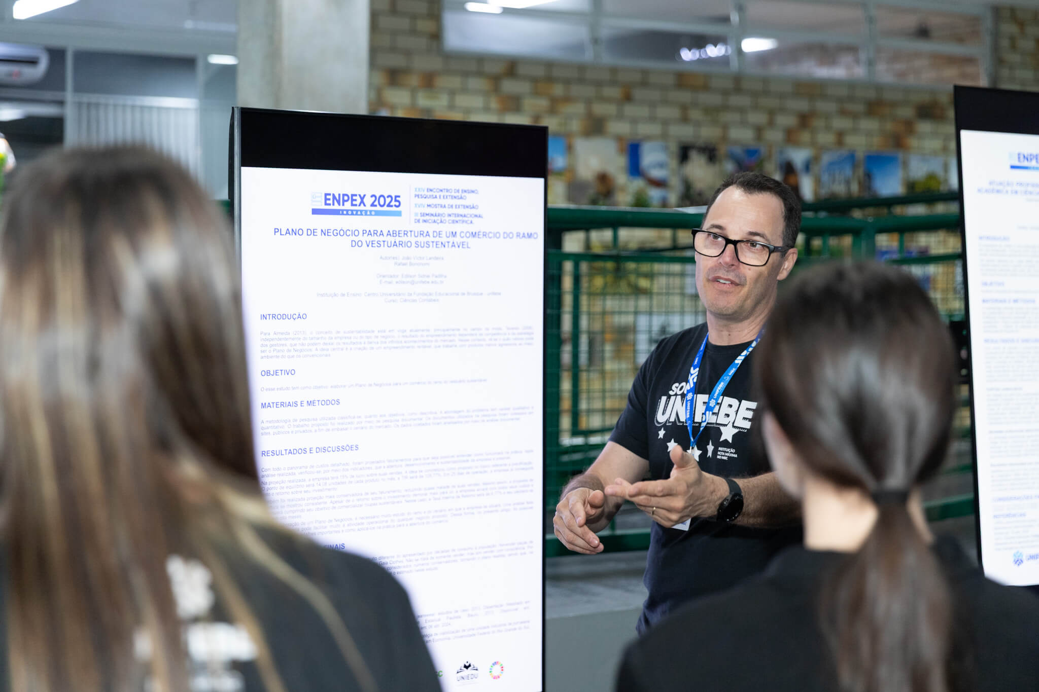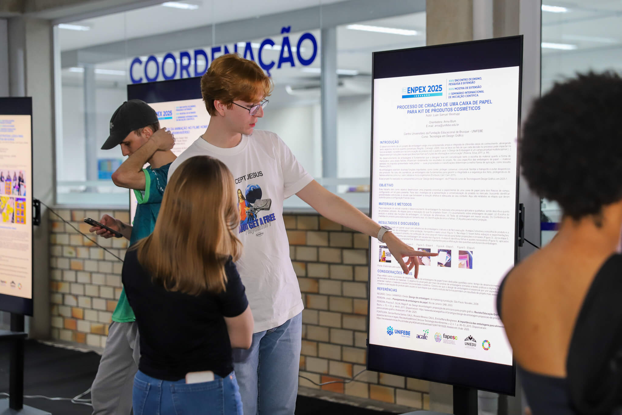 “Um dos diferenciais desse ano foram as exposições e apresentações dos pôsteres nas telas digitais. Além de estar conectado ao tema central do evento, tornamos o Enpex ainda mais tecnológico, sustentável e interativo. Quem passou pelo átrio, durante todos os dias do evento, pôde conferir algumas das produções científicas dos nossos acadêmicos dos cursos de Graduação”, enfatiza o supervisor de Pesquisa da UNIFEBE, Daniel Goulart.