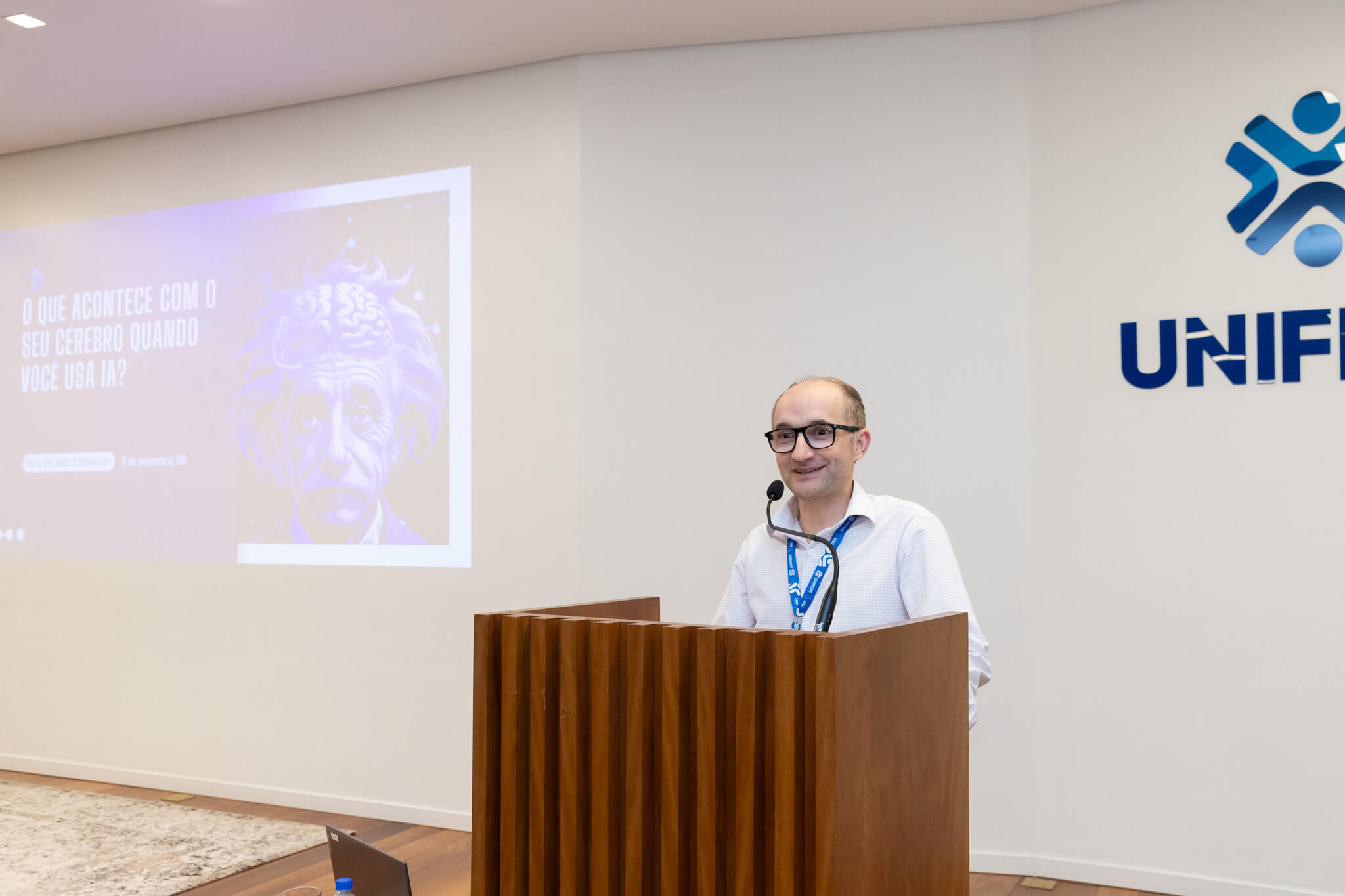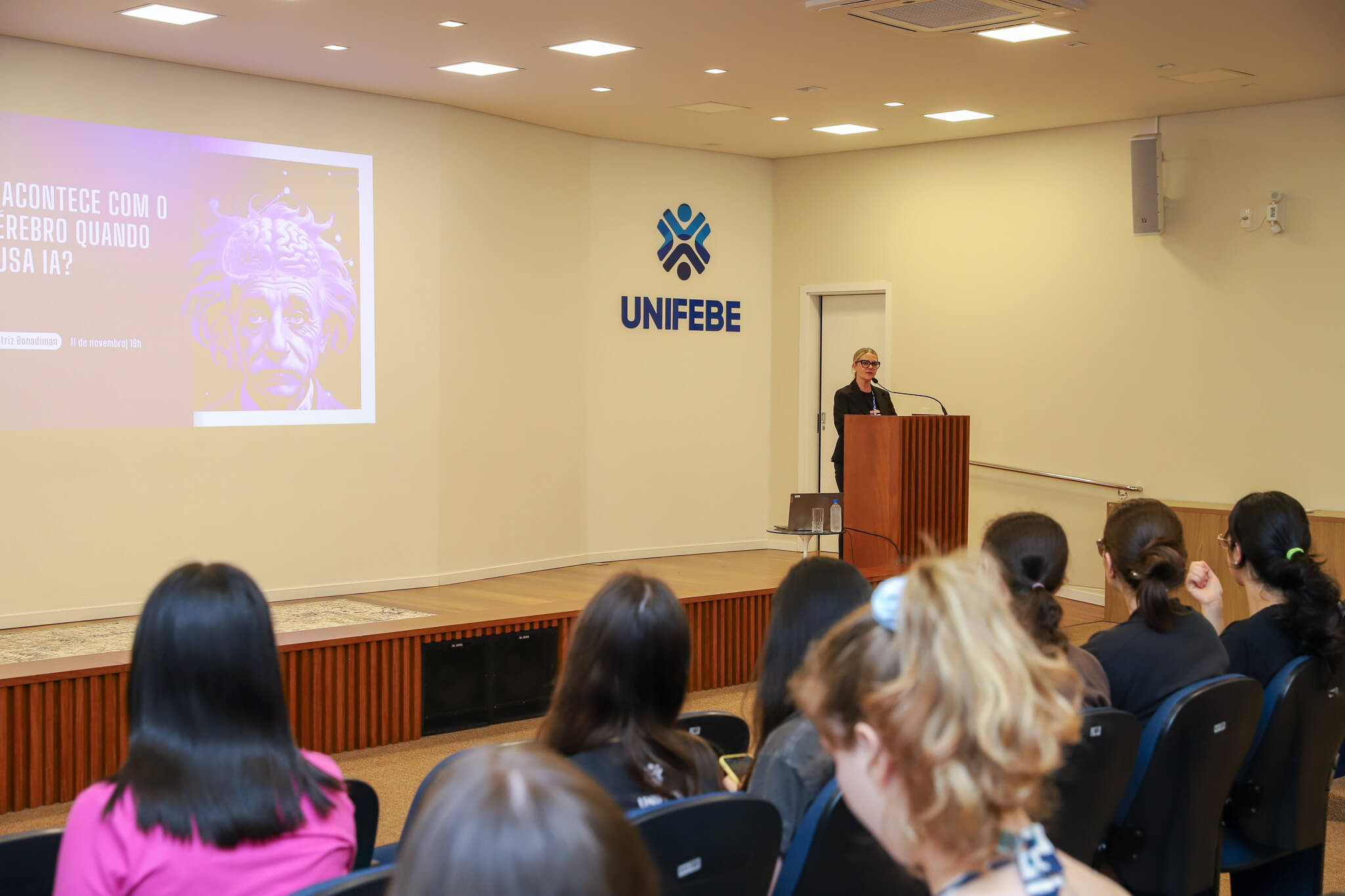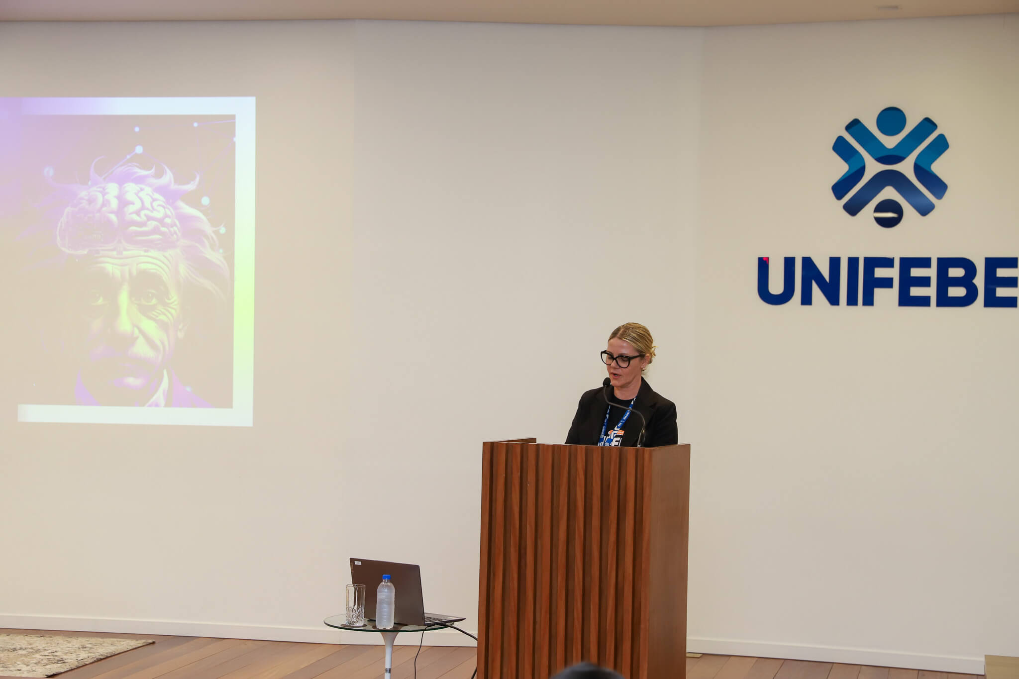 Com “Inovação” como temática central, o evento promoveu discussões sobre o uso da Inteligência Artificial nas produções acadêmicas e sua transformação na sociedade. No dia 11, a professora Beatriz Bonadiman, abriu oficialmente o XXIV Enpex falando sobre “O que acontece com o seu cérebro quando você utiliza IA”. A palestra está disponível no canal da UNIFEBE, no YouTube.