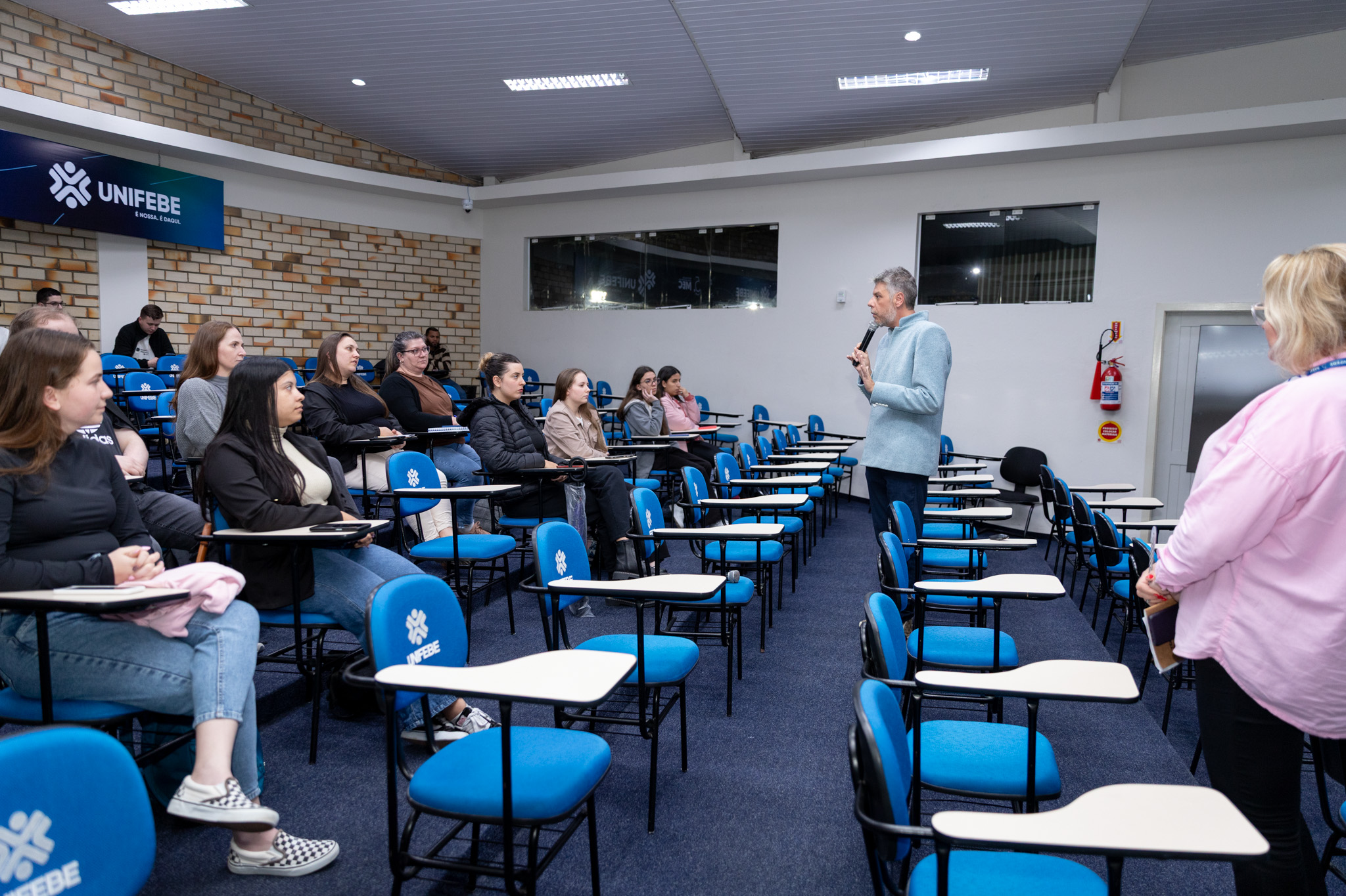 A palestra “A Abordagem de Reggio Emilia” marcou a abertura da programação da Semana Acadêmica do curso de Pedagogia da UNIFEBE. Ela foi apresentada pela professora Gesiele Reis, que compartilhou parte do trabalho de pesquisa desenvolvido ao longo dos anos voltado à filosofia de ensino, centrada no protagonismo infantil no processo educativo. Além dessa atividade, o segundo dia de programação foi reservado para as oficinas. Ao todo, os acadêmicos puderam participar de seis alternativas de atividades desenvolvidas nos blocos A, C e D da instituição.