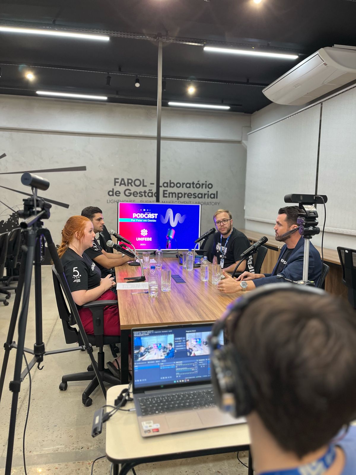 Como desafio extra, os acadêmicos de graduação assumiram o papel de mentores dos estudantes do itinerário de Tecnologias Digitais do Colégio UNIFEBE, que produziram dois episódios especiais do podcast. Essa ação fortaleceu a integração entre o Colégio e a Graduação e ampliou o networking dos participantes com o ecossistema de inovação da região.