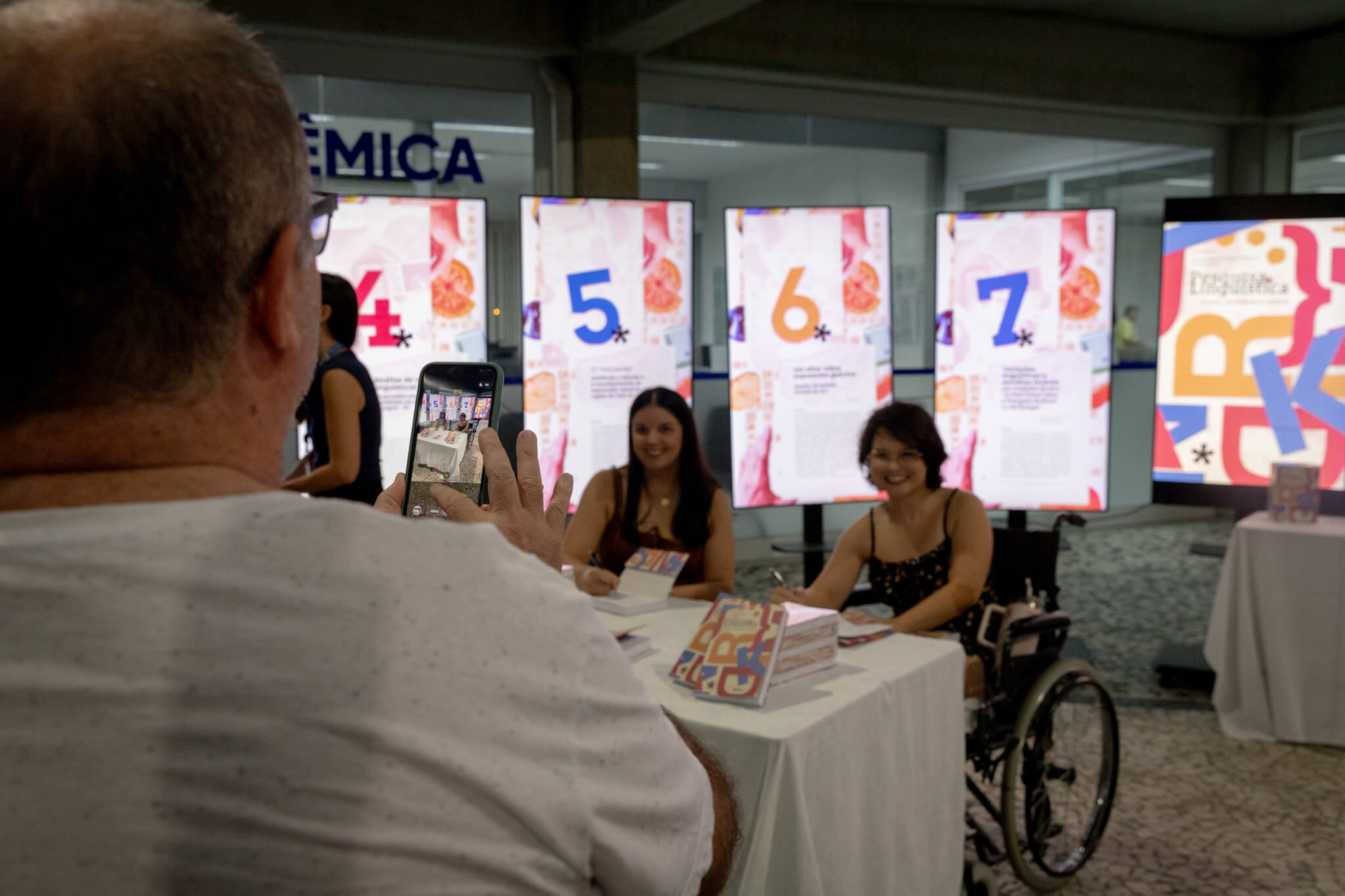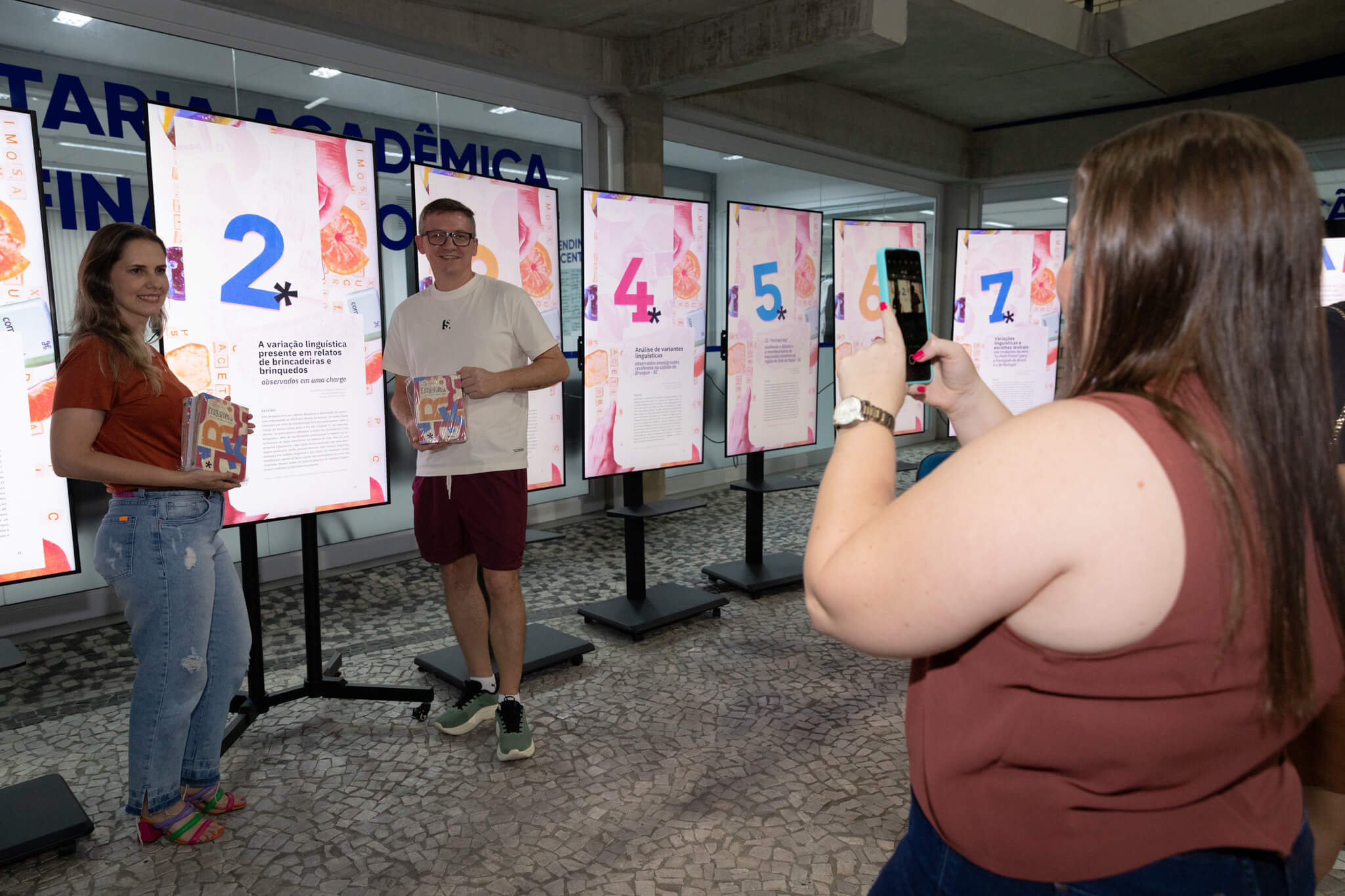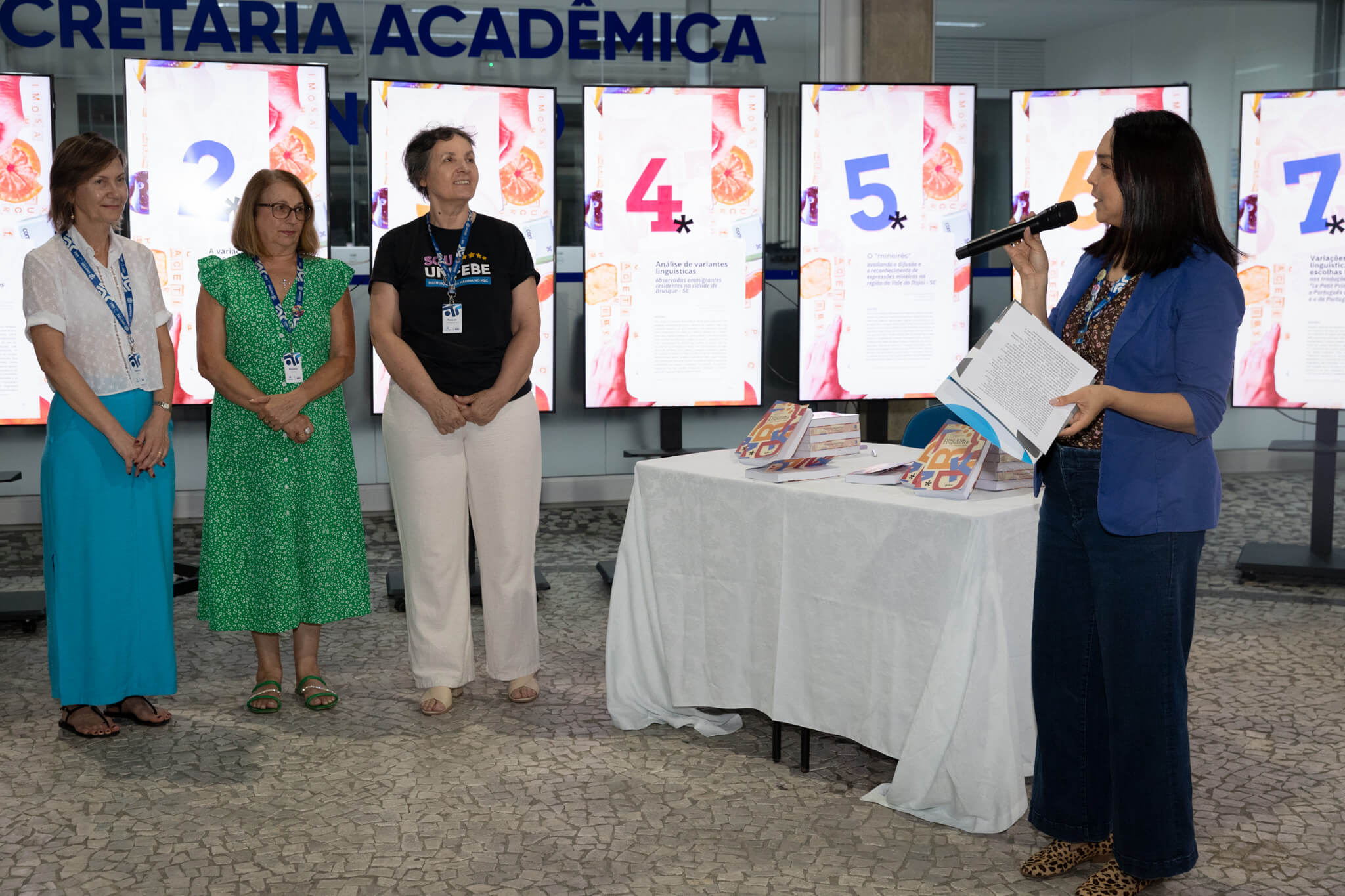 Ao longo da obra, são analisados temas como a variação linguística, a tradução, empréstimos linguísticos, fonética, análise discursiva, a linguagem corporal e o uso de jogos digitais no processo de ensino-aprendizagem envolvendo as temáticas. A egressa da UNIFEBE, Joici Natalia Rosa Molinari, foi uma das autoras que prestigiaram o lançamento. Ela colaborou com o capítulo 13 da publicação, no qual ela analisou a comunicação, a expressão e a linguagem corporal na produção de humoristas americanos e britânicos.