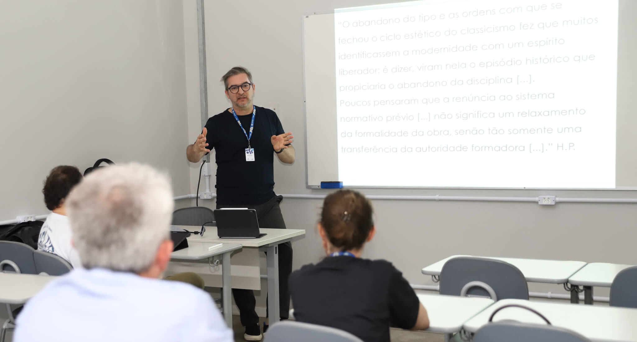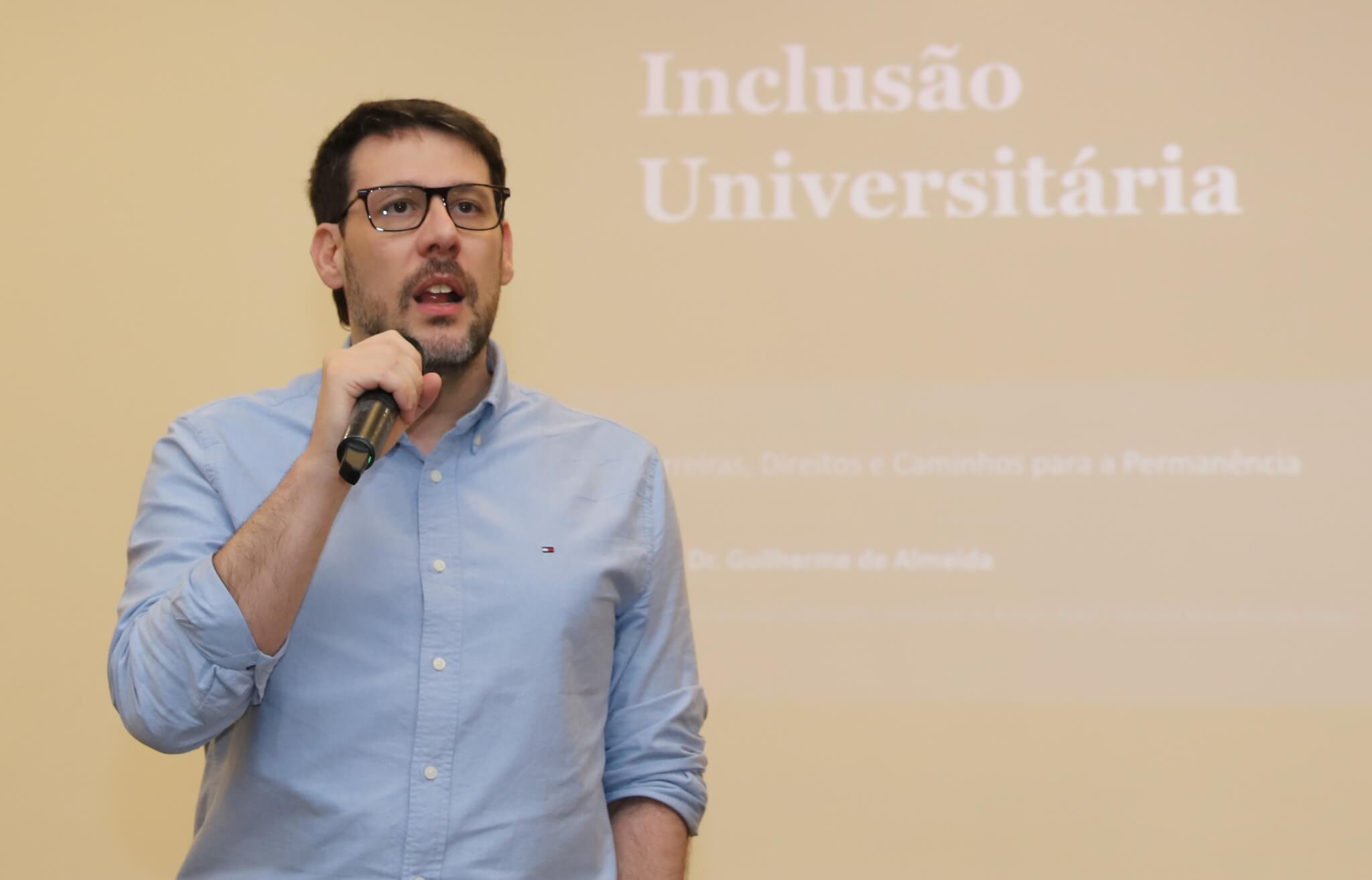 A terça-feira, 27, teve a palestra “Educação Inclusiva na UNIFEBE”, ministrada pelo professor Guilherme de Almeida, doutor e mestre pela Faculdade de Educação da Unicamp. O evento tratou especialmente a questão do acesso à educação por pessoas com Transtorno do Espectro Autista (TEA), contando com a ampla participação dos docentes, tanto em presença quanto nas interações e perguntas.
