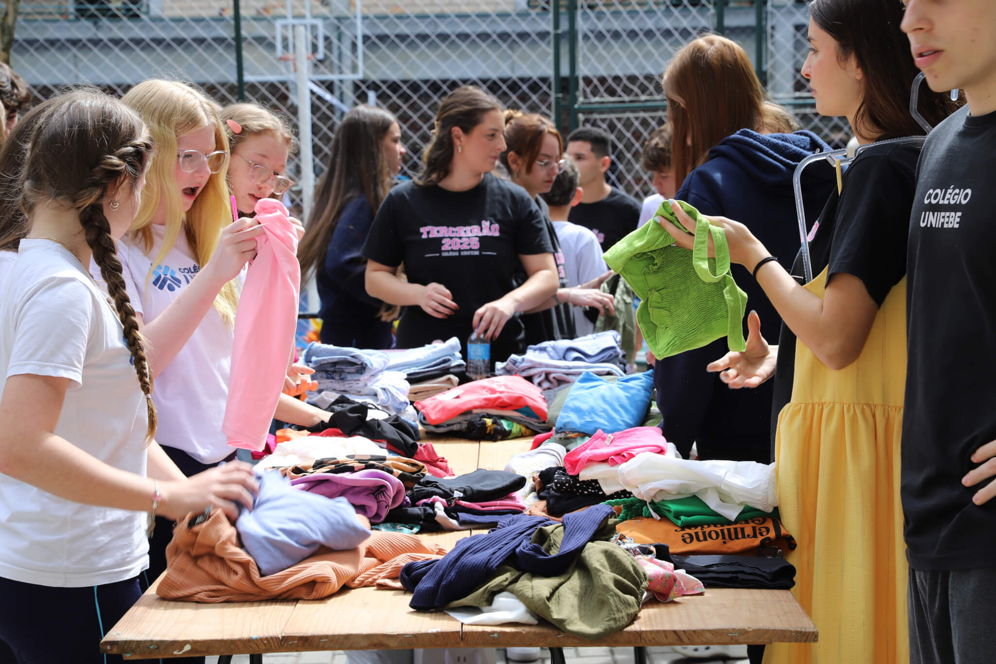 Um projeto interdisciplinar, desenvolvido por estudantes da 3.ª série do Ensino Médio do Colégio UNIFEBE, aliou disciplinas como Espanhol, Inglês, Arte e Projeto de Vida com à customização e à troca de peças de roupa. A 1.ª Feira de Intercâmbio de Roupas foi desenvolvida como forma de estimular a reflexão sobre o consumo à produção de peças considerando o Objetivo de Desenvolvimento Sustentável (ODS) 12, relacionado aos padrões sustentáveis de produção e consumo.