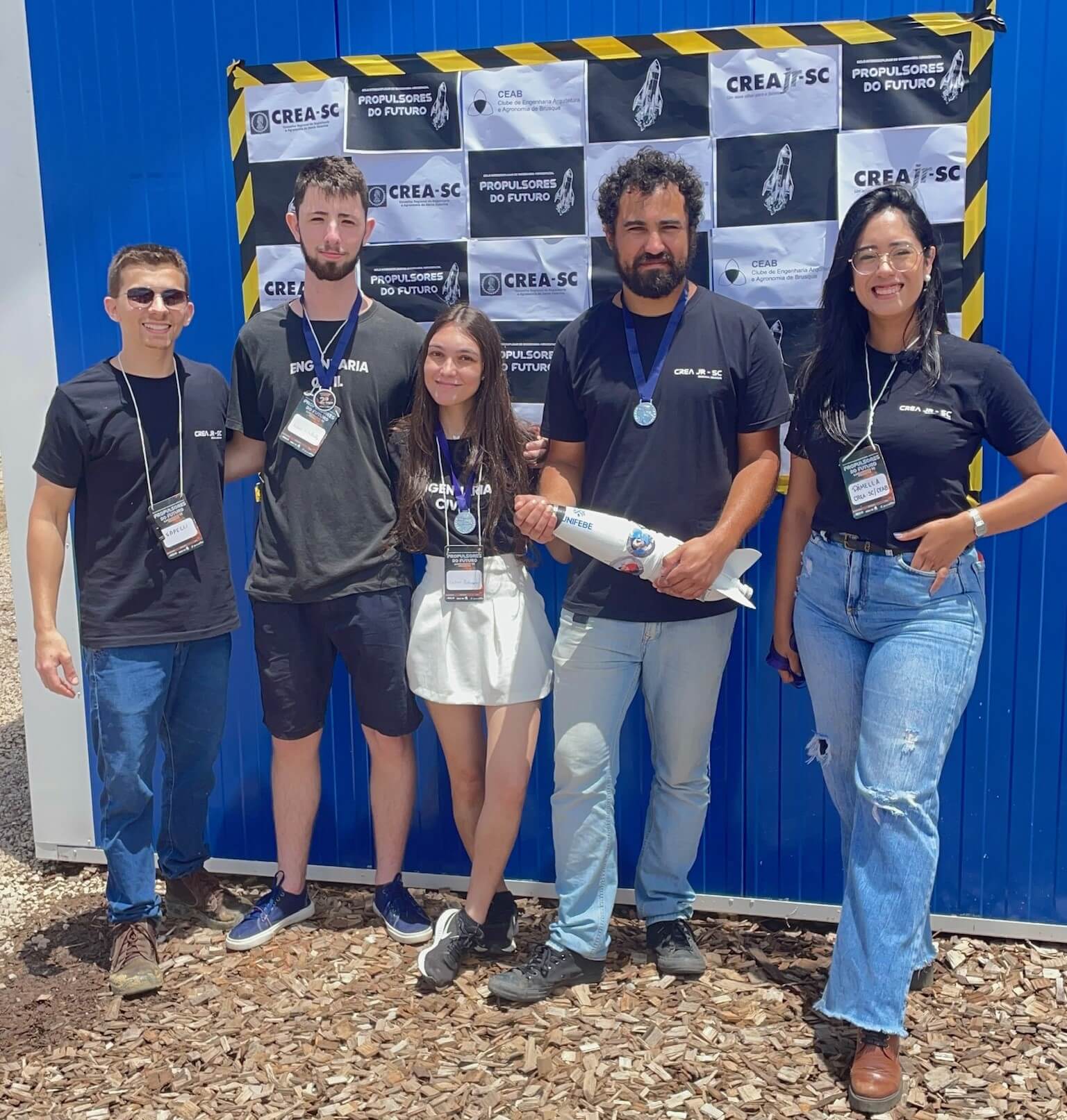 Grupos formados por acadêmicos dos cursos de Engenharia Mecânica, Engenharia Civil e Engenharia Química da UNIFEBE compuseram o pódio de melhores desempenhos registrados na edição 2025 do Desafio Propulsores do Futuro. Eles se destacaram após os lançamentos dos foguetes em Brusque, que alcançaram até 204 metros registrados.