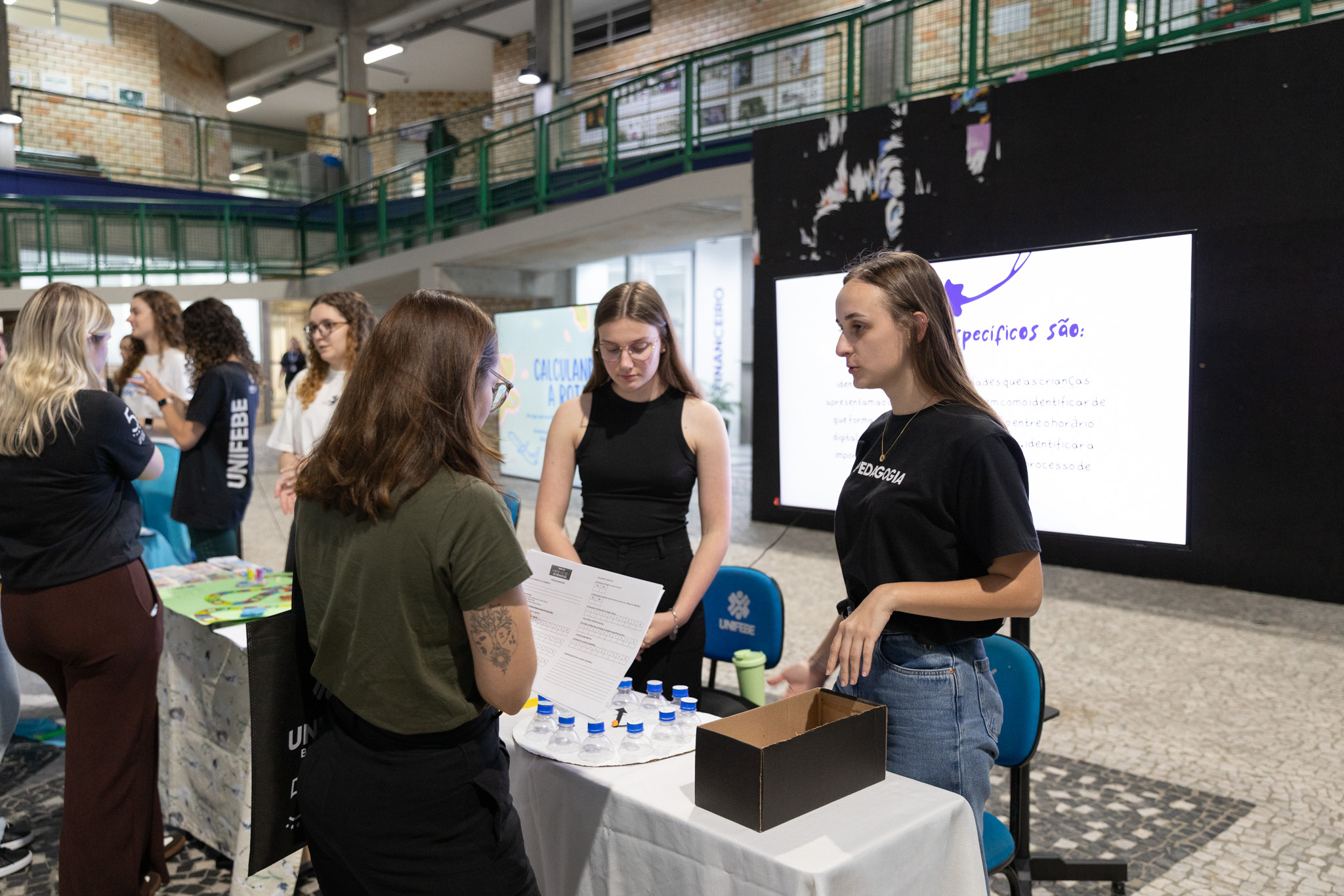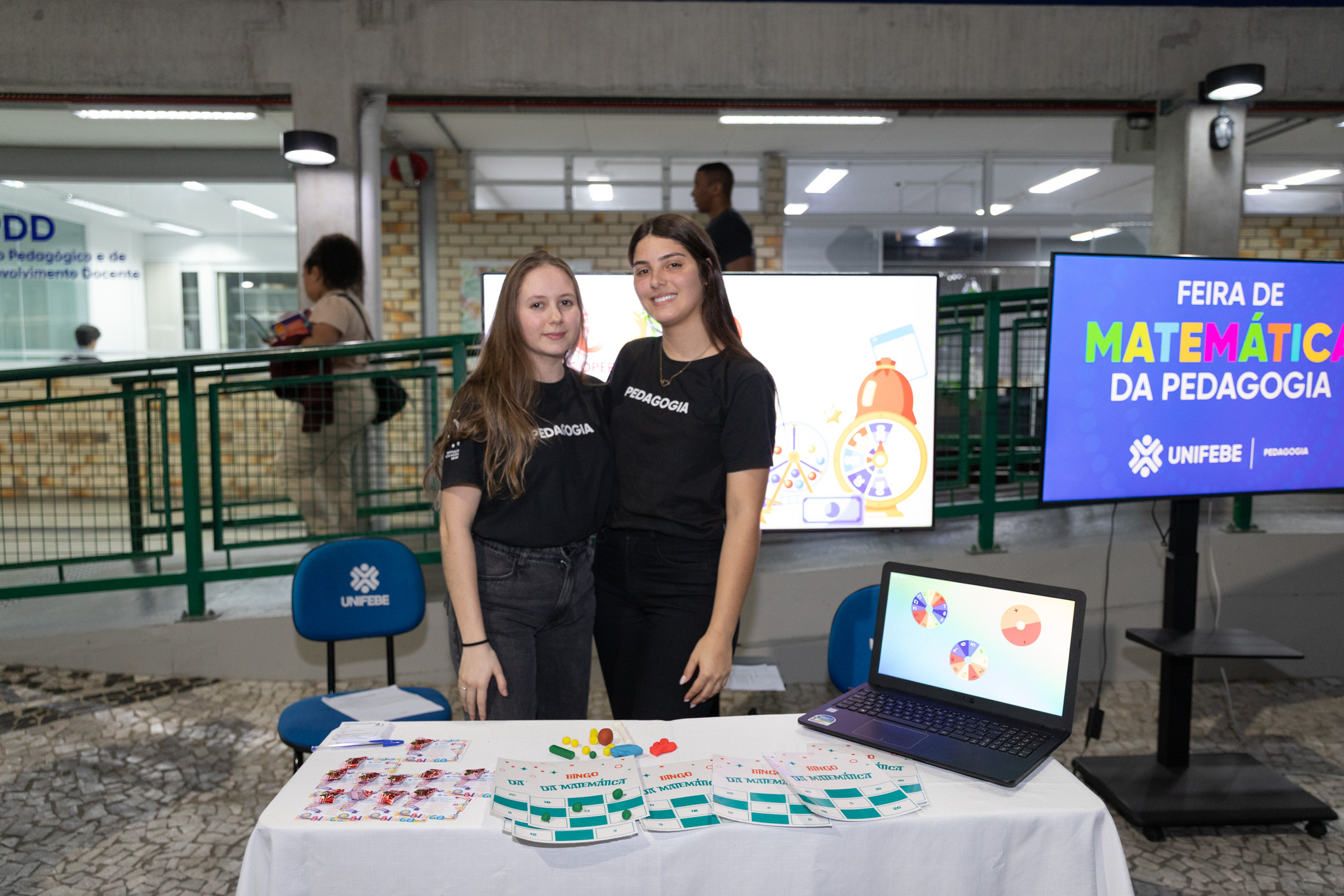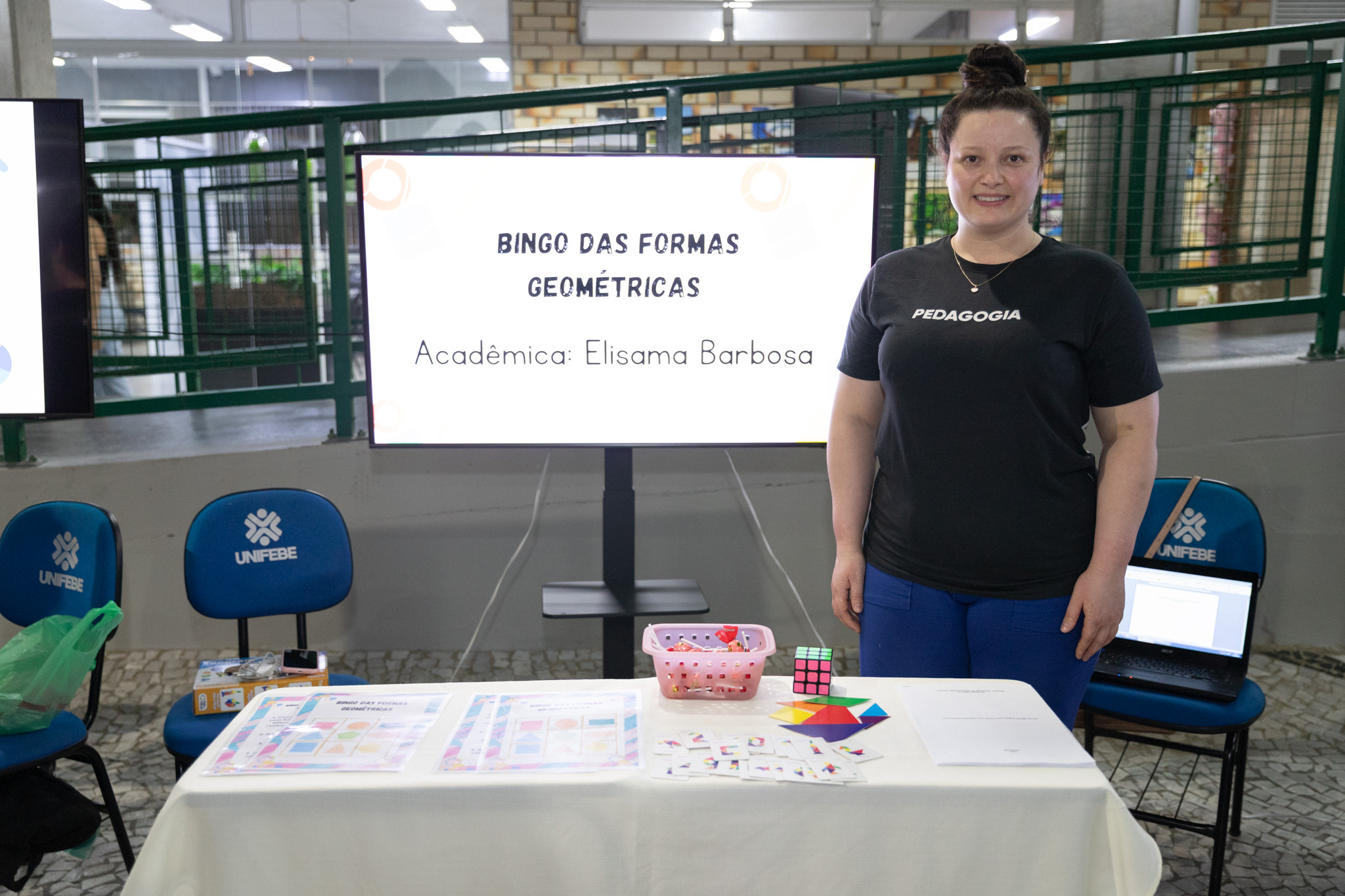 O átrio do Bloco A da UNIFEBE recebeu a 2.ª edição da Feira de Matemática do curso de Pedagogia. Quem percorreu o espaço durante a iniciativa pôde participar e conhecer diferentes atividades interativas, jogos e exposições que abordaram a área do conhecimento na educação básica.