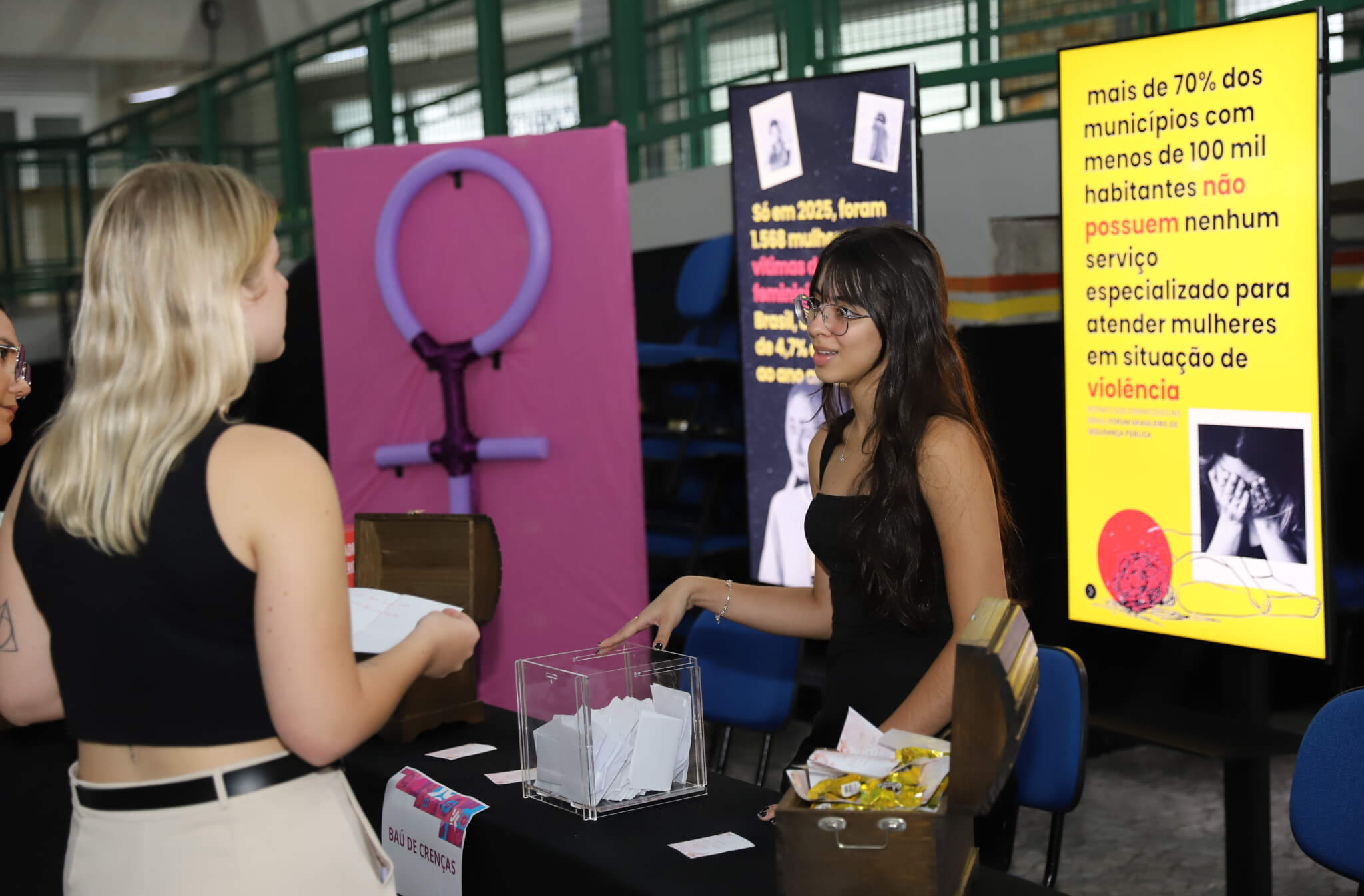 A professora Giselly aprovou o desempenho do Baú de Crenças em 2026 e percebeu um maior engajamento. “Essa é a quarta vez que participo da Semana da Mulher na UNIFEBE. Percebo o quanto, a cada ano, cresce a participação e o interesse dos estudantes em entender as diferentes dimensões que alcançam e afetam a vida da mulher na sociedade.”