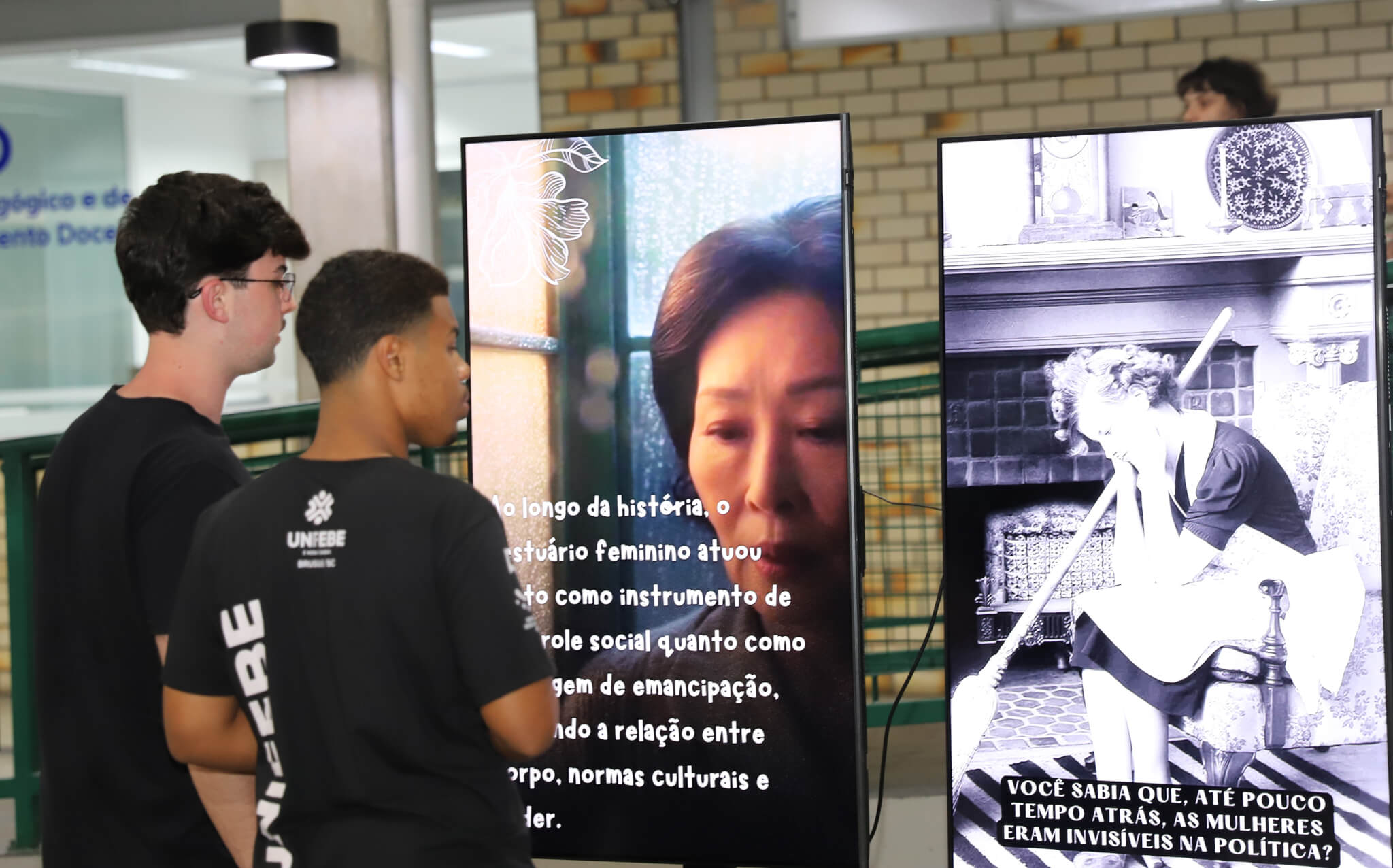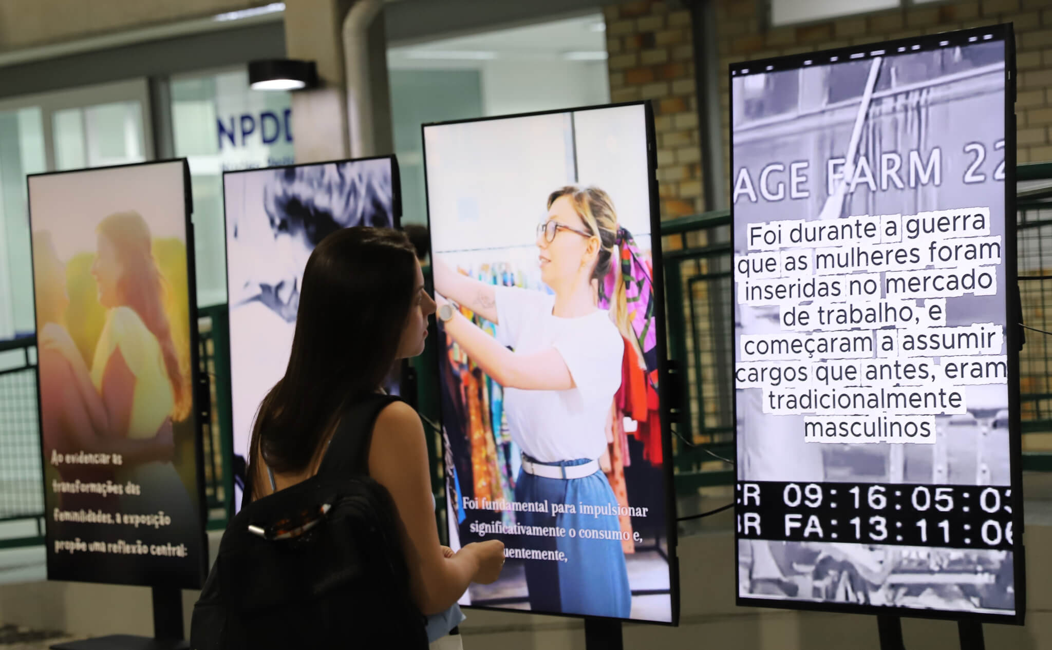 A exposição Exposição Moda, Pele e Poder: Feminilidades em Transformação foi organizada pelas professoras Jô Rosa e Thaissa Schneider. O público pôde observar como a moda atuou, em diferentes momentos históricos e de forma simultânea, tanto como instrumento de controle social quanto como linguagem de emancipação feminina.