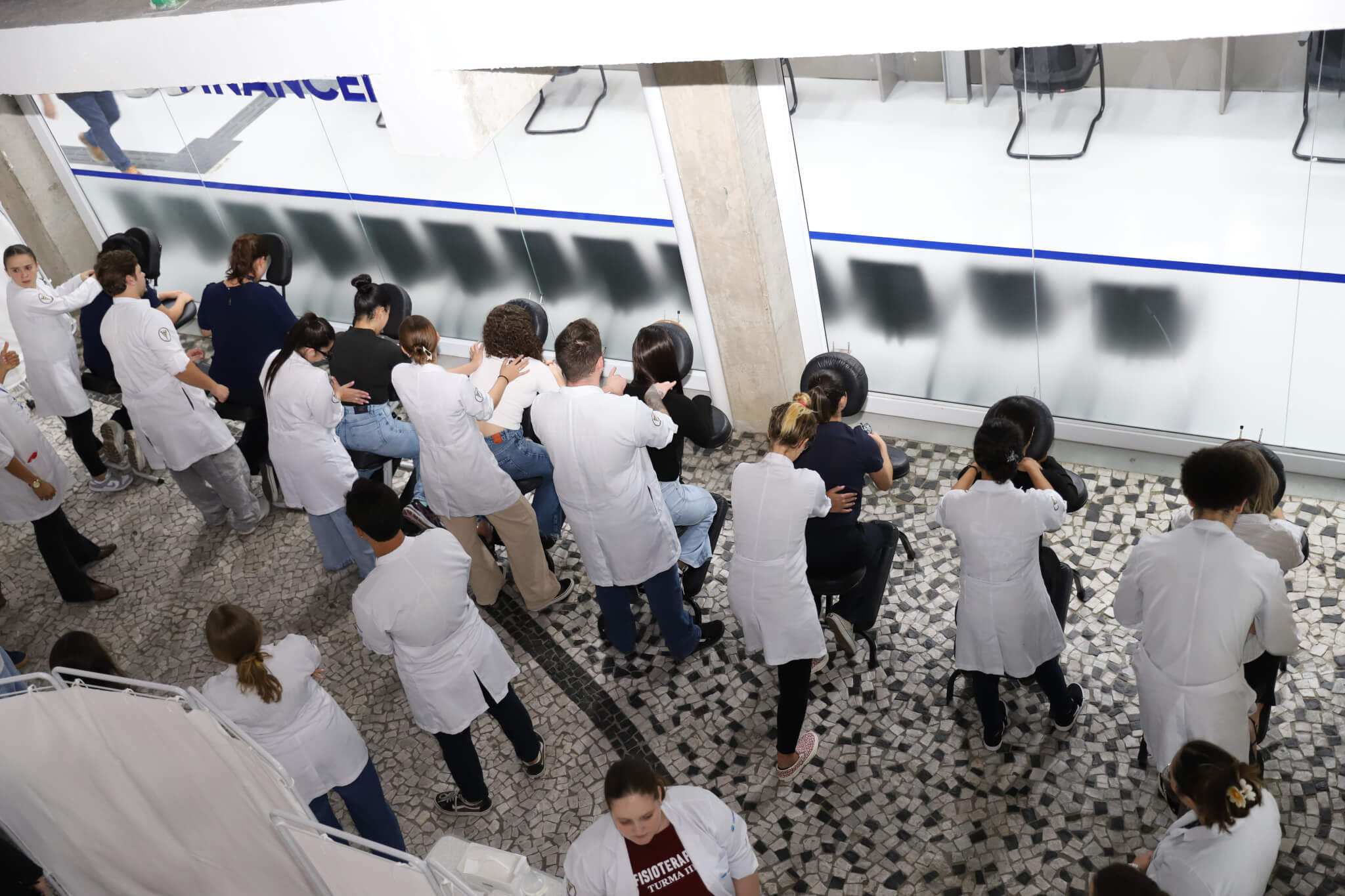 O Curso de Fisioterapia também participou, oferecendo uma oficina de massagem às mulheres. Assim como na ação de Enfermagem, filas de acadêmicas se formaram para aproveitar a oportunidade